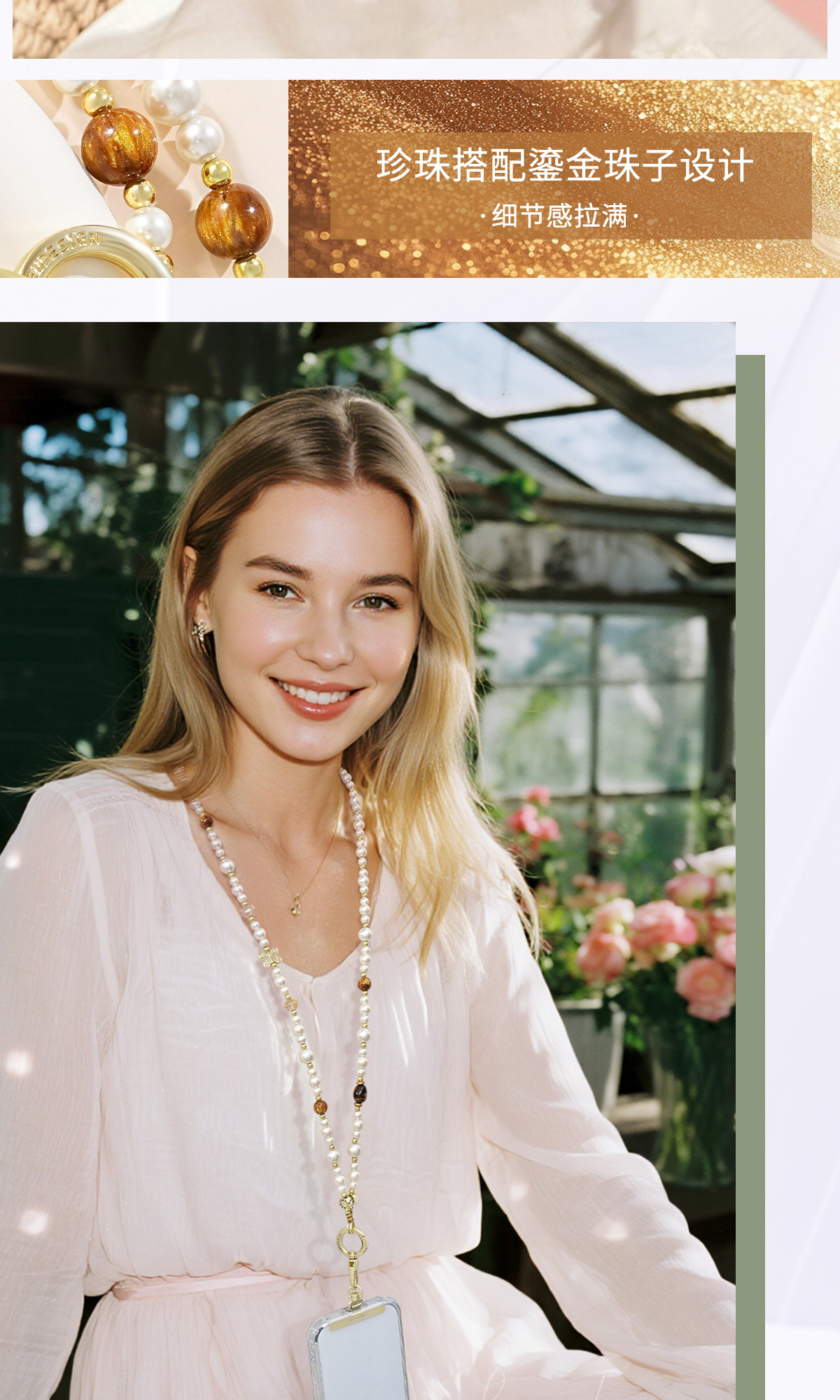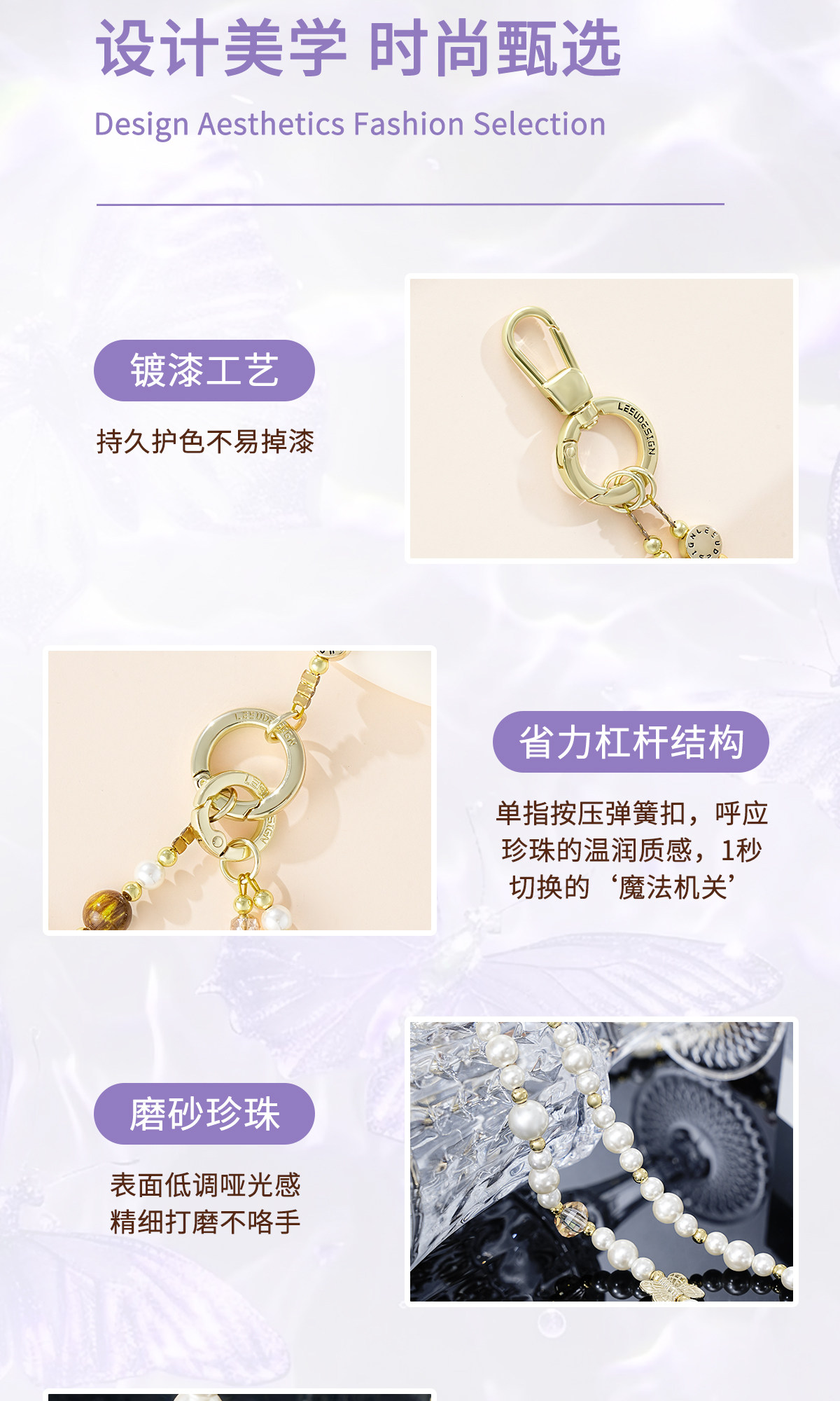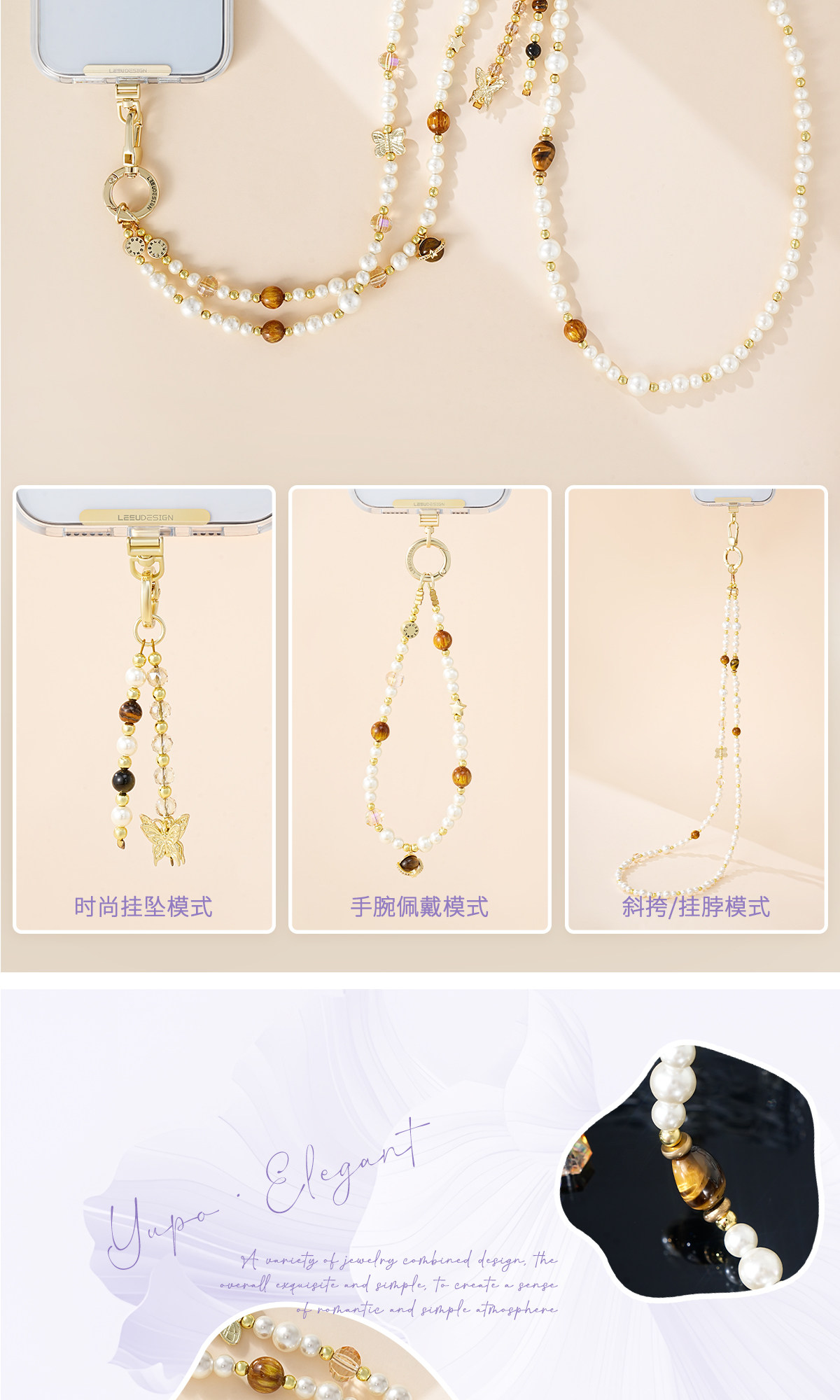 Leeudesign[Linglang Yupo]Four-In-One Design Phone Lanyard, Niche and Exquisite Phone Chain, Unique and Beautiful Phone Strap, Anti-Lost Long Crossbody Pearl Phone Accessory