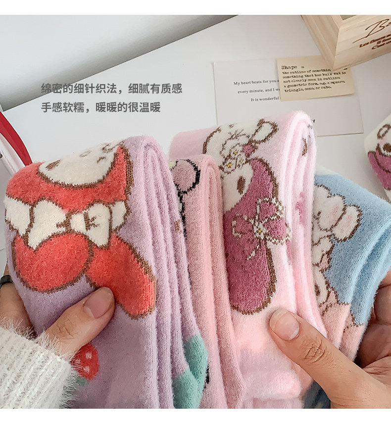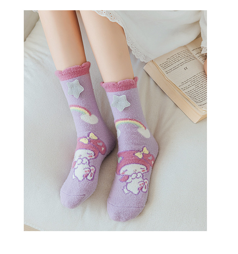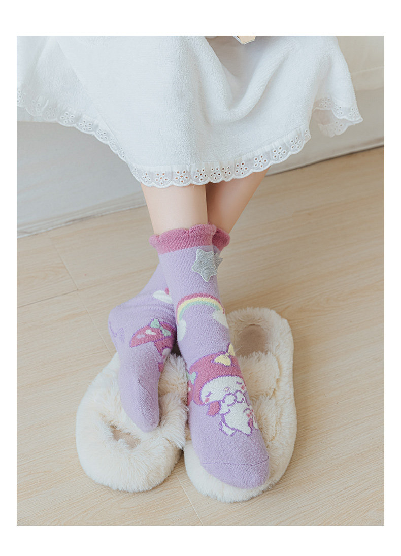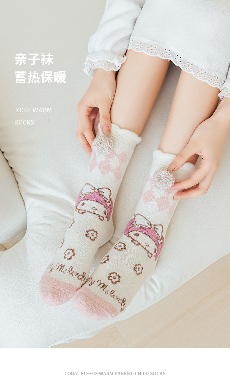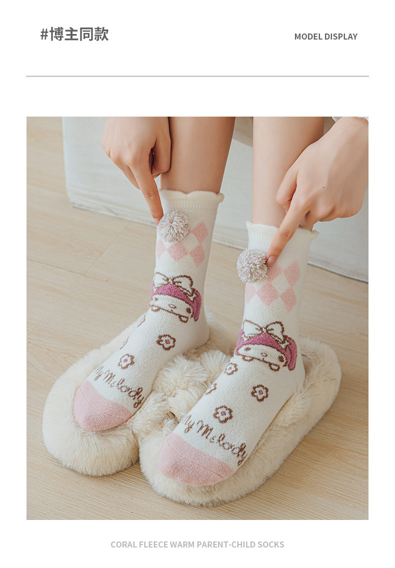 Six-Fingered Mouse Children's Socks for Autumn and Winter, Warm Coral Fleece Socks for Kids and Students, Extra Thick and Long Tube Parent-Child Socks