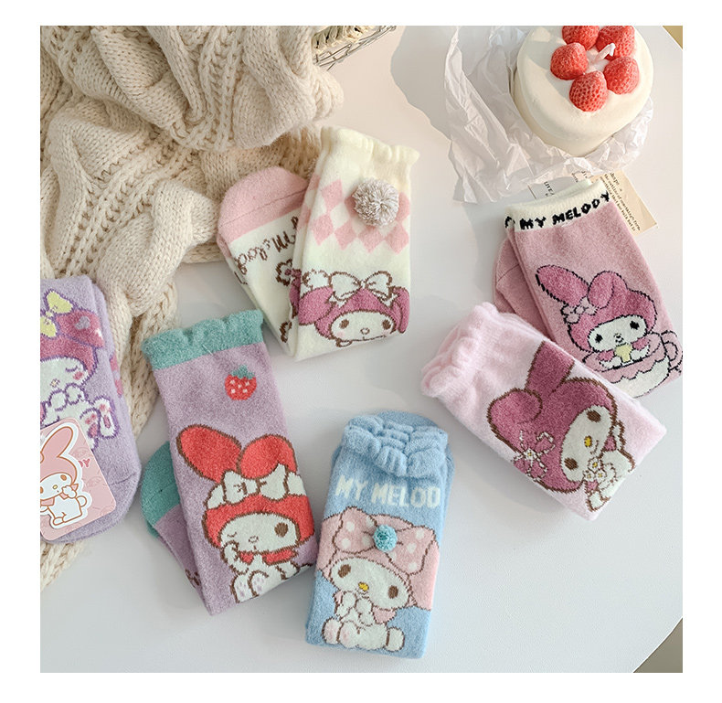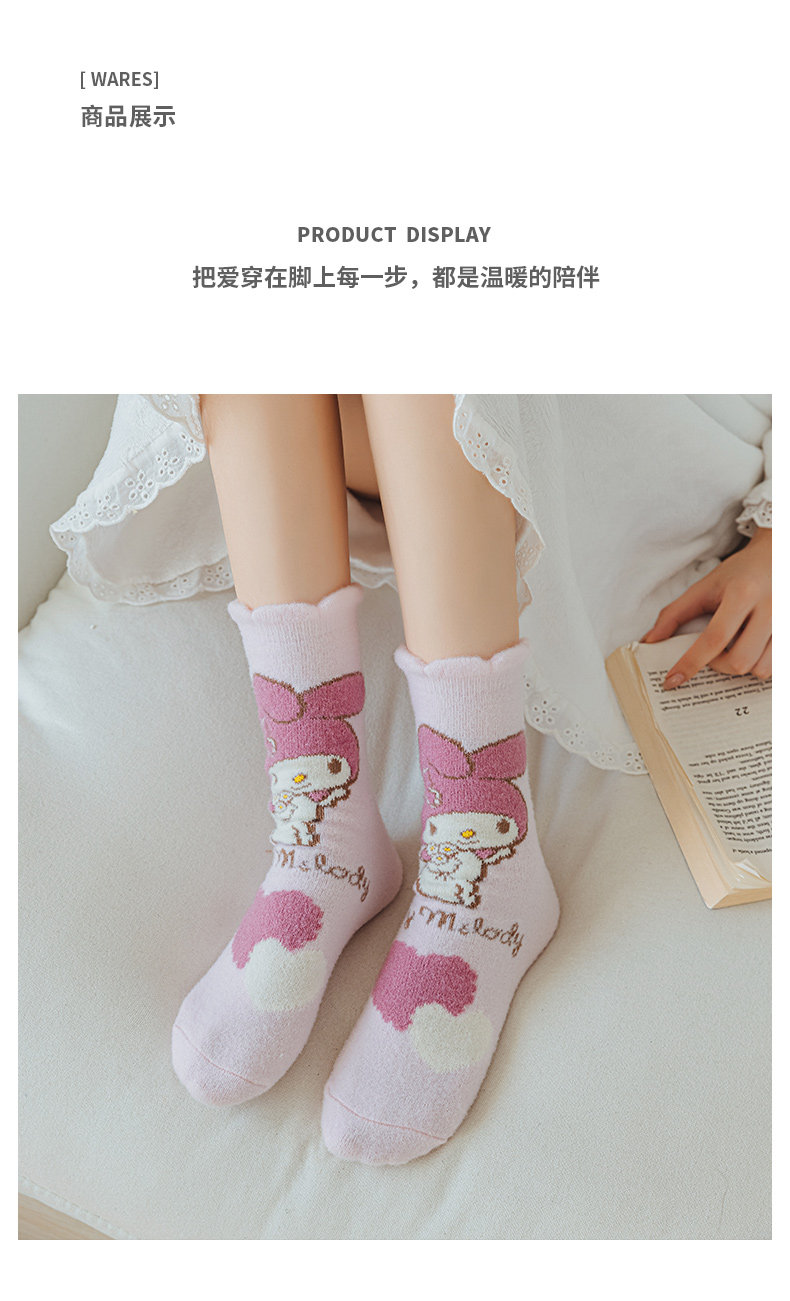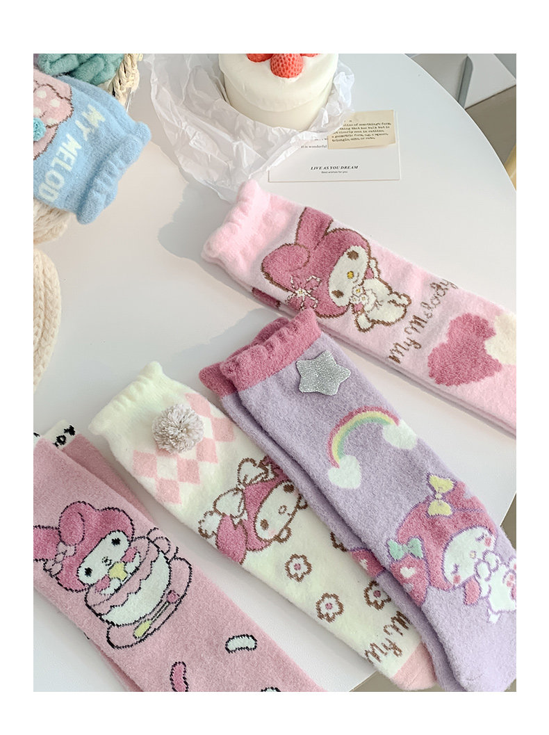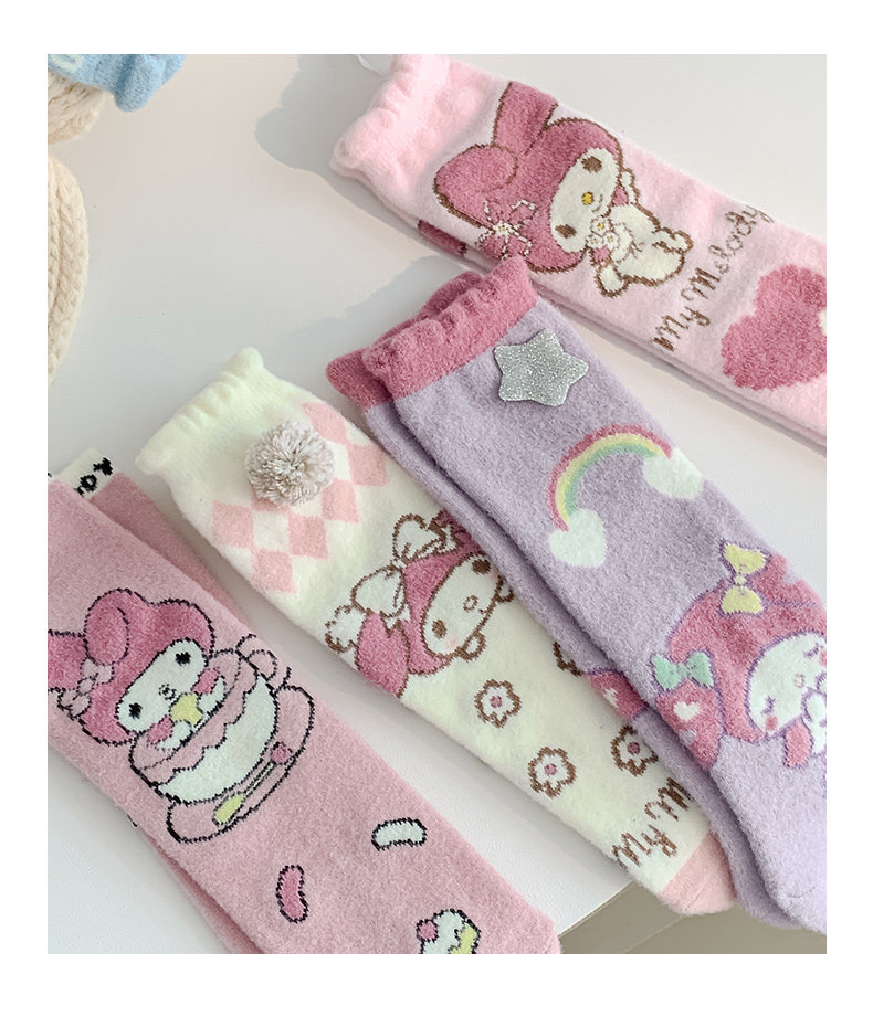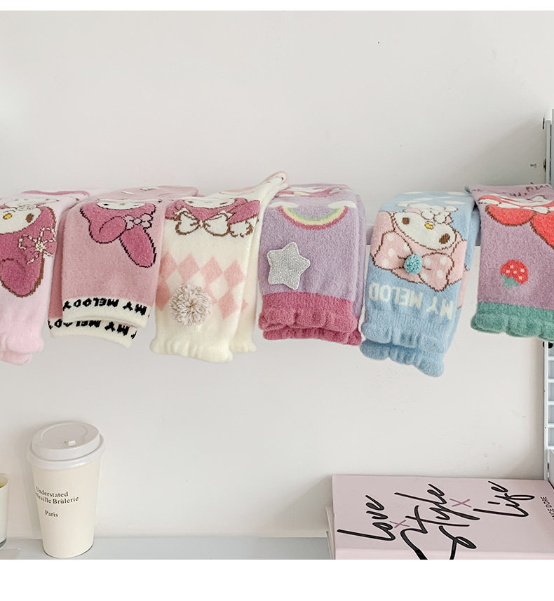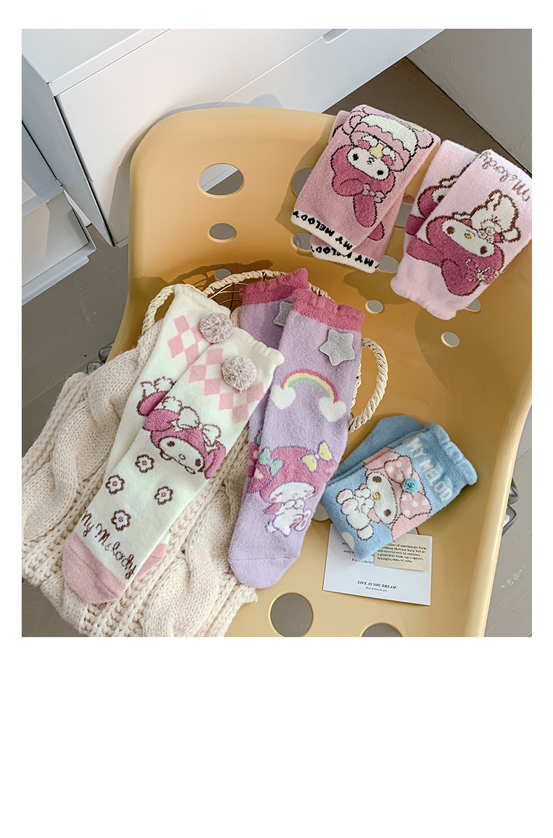 Six-Fingered Mouse Children's Socks for Autumn and Winter, Warm Coral Fleece Socks for Kids and Students, Extra Thick and Long Tube Parent-Child Socks