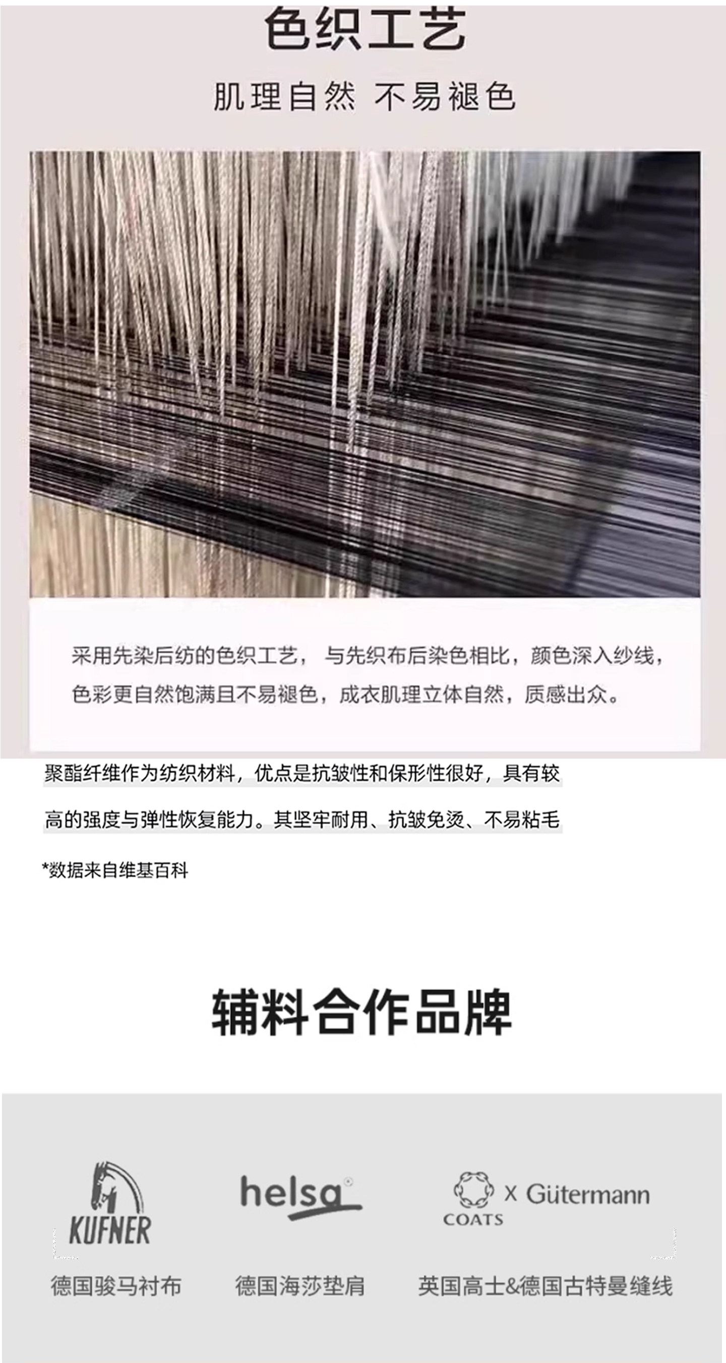 | Material Composition | Polyester Fiber 68.0% Viscose Fiber (Viscose Fiber) 27.0% Polyurethane Elastic Fiber (Spandex) 5.0% |
