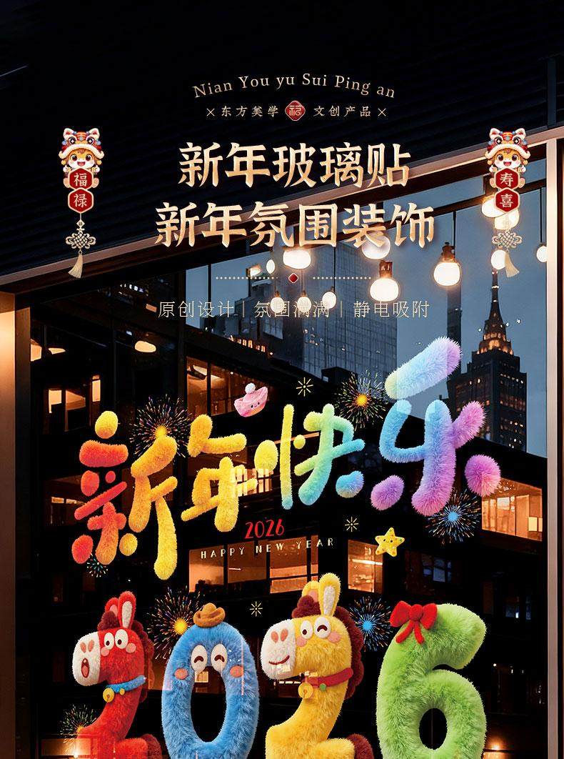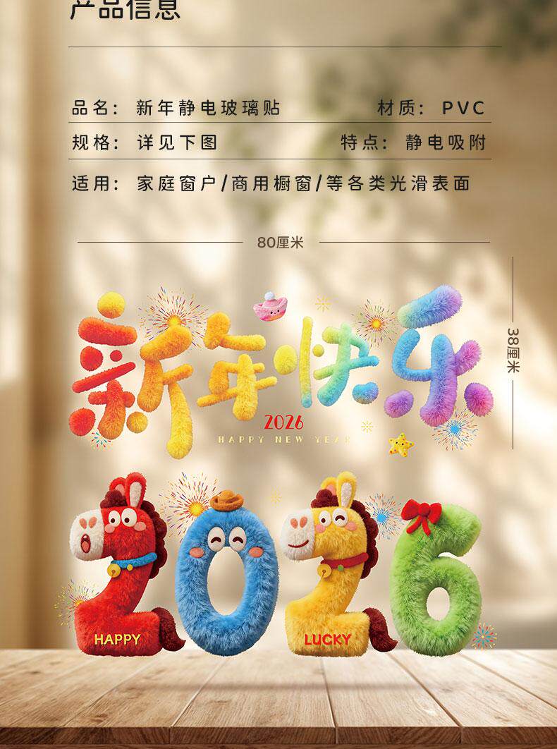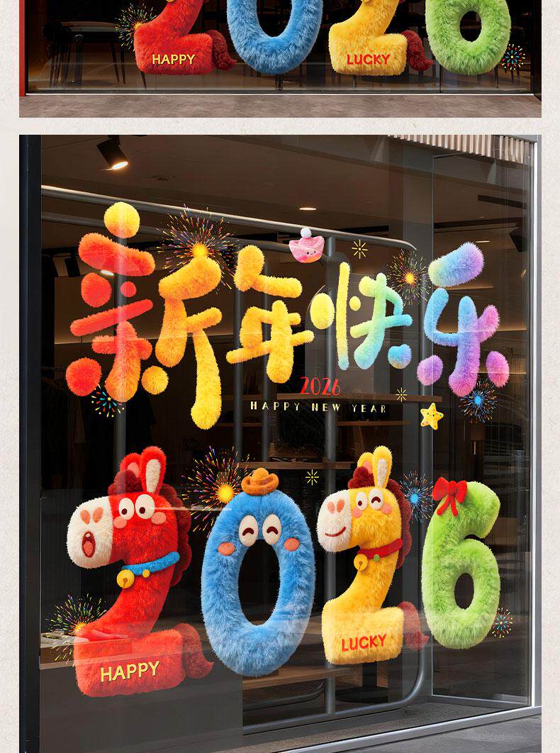 2026 New Year Blessing Window Stickers Static Cling Window Decals Year of the Horse Spring Festival New Year Decoration Glass Door Stickers New Year Decoration