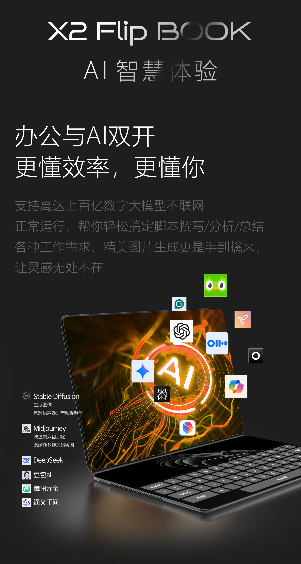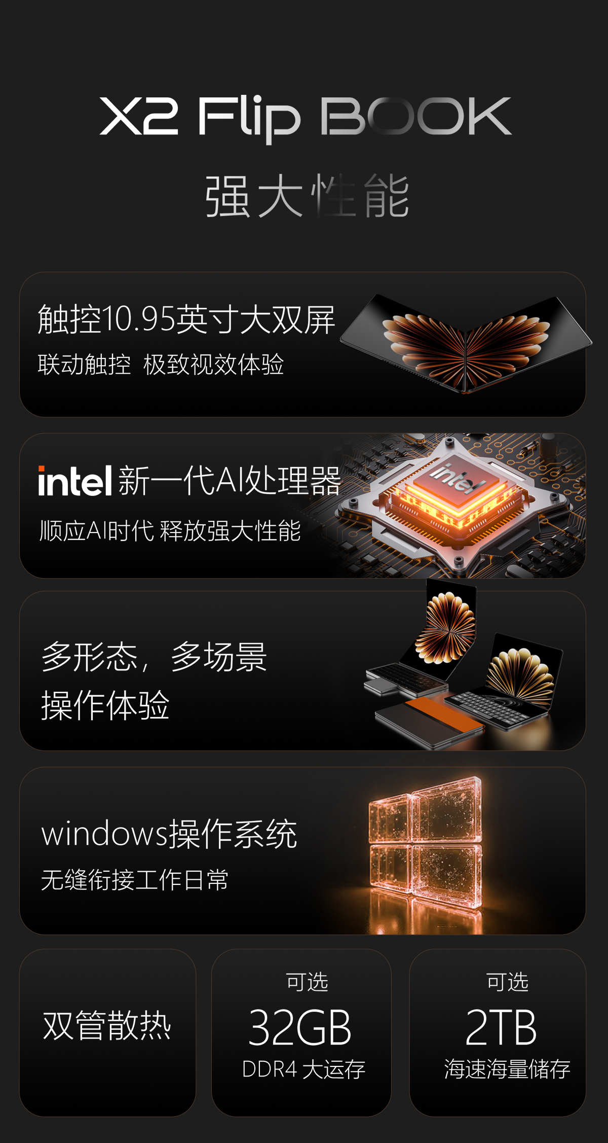 | Color Classification | 【X2Flip Book】 10.95inch Dual Screen/Quad-Core Four-Thread Processor/10-Point Touchscreen Operation/Full-Function Type-C/Metal Body,【X2Flip Book Pro】 10.95inch Dual Screen/6-Core 8-Thread Processor/10-Point Touchscreen Operation/Full-Function Type-C/Metal Body,【X2Flip Book Max】 14inch Dual Screen/Quad-Core Four-Thread Processor/10-Point Touchscreen Operation/Full-Function Type-C/Metal Body |