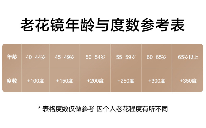 | Lens Refractive Index | 【Presbyopia 100 Degrees】Recommended for 45-49 Years Old,【Presbyopia 150 Degrees】Recommended for 50-54 Years Old,【Presbyopia 200 Degrees】Recommended for 55-59 Years Old,【Presbyopia 250 Degrees】Recommended for 60-64 Years Old,【Presbyopia 300 Degrees】Recommended for 65-69 Years Old,[Presbyopia 350 Degrees] Recommended for 70-74 Years Old |