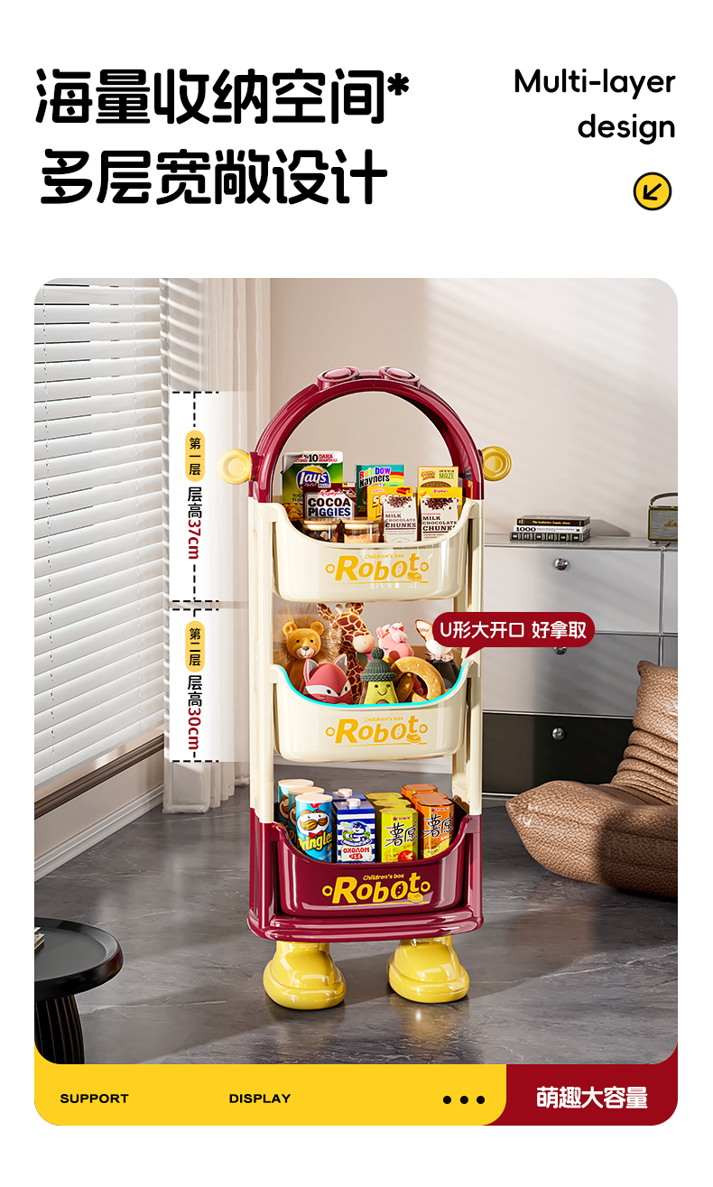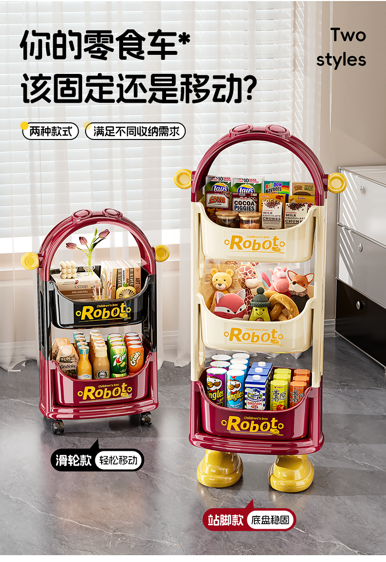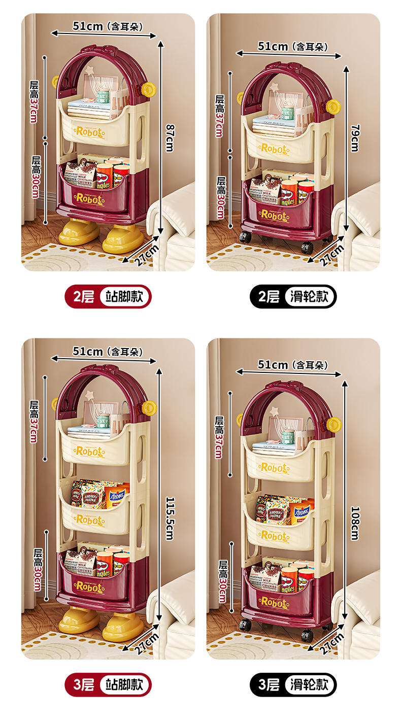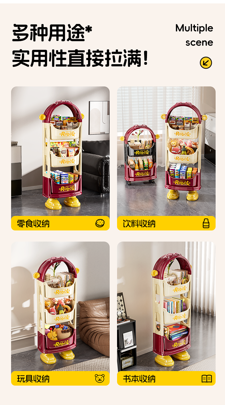 Dopamine-Style Trolley Snack Storage Rack, Floor-Standing Multi-Layer Household Storage Rack for Living Room, Bedroom, Books, Toys, and Miscellaneous Items