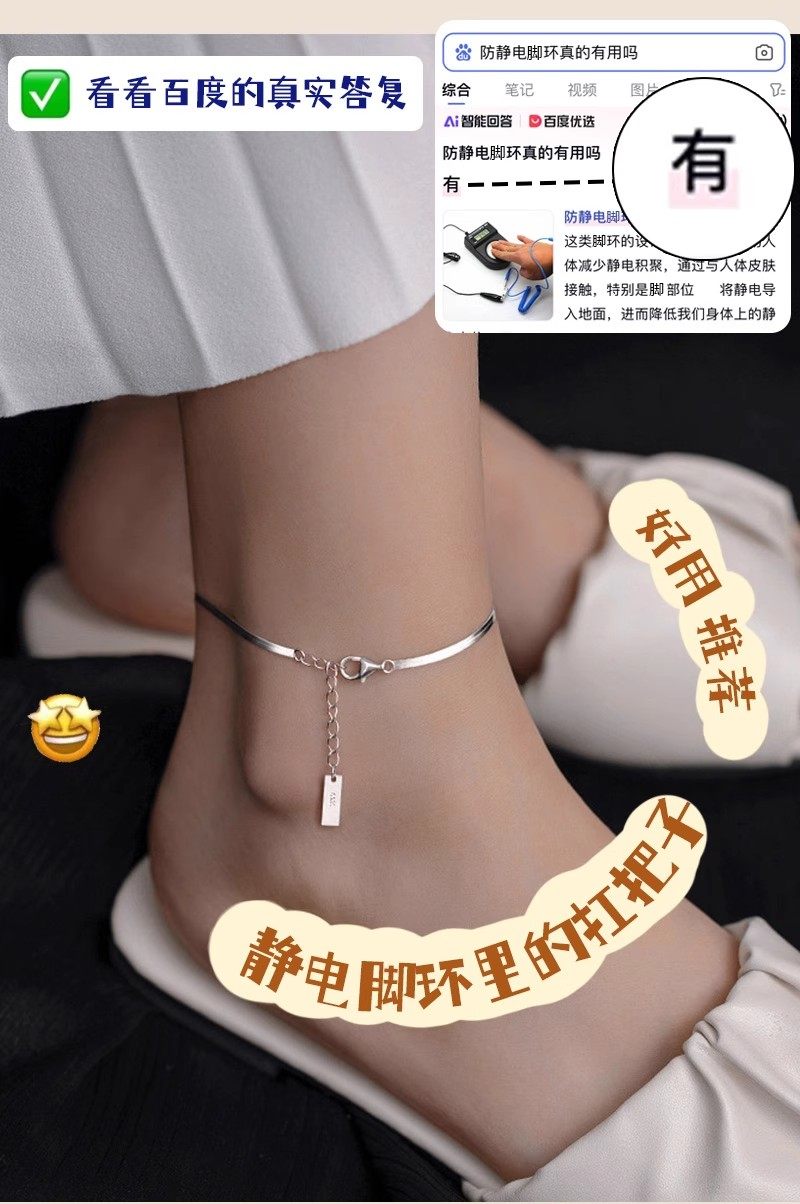 Wireless Anti-Static Anklet for Eliminating Static Electricity from the Body, Suitable for Men and Women, Improves Appearance