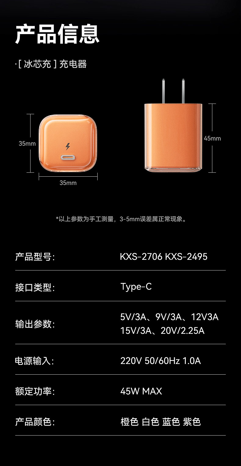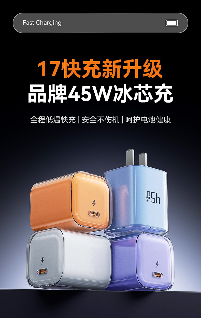 | Color Classification | Iced Orange | 45W Gan [Low-Temperature Fast Charging] Foldable Plug⭐Universal for All Series,Iced Blue | 45W Gan [Low-Temperature Fast Charging] Foldable Plug⭐Universal for All Series,[6-14 Set] 45W Ice Orange + 1.0m Pd Fast Charging Cable,[6-14 Set] 45W Ice Orange + 1.5m Pd Fast Charging Cable,[6-14 Set] 45W Ice Orange + 2.0m Pd Fast Charging Cable,[6-14 Set] 45W Ice Blue + 1.0m Pd Fast Charging Cable,[6-14 Set] 45W Ice Blue + 1.5m Pd Fast Charging Cable,[6-14 Set] 45W Ice Blue + 2.0m Pd Fast Charging Cable,[15-17 Set] 45W Ice Orange + 1.0m Double C Fast Charging Cable,[15-17 Set] 45W Ice Orange + 1.5m Double C Fast Charging Cable,[15-17 Set] 45W Ice Orange + 2.0m Double C Fast Charging Cable,[15-17 Set] 45W Ice Blue + 1.0m Double C Fast Charging Cable,[15-17 Set] 45W Ice Blue + 1.5m Double C Fast Charging Cable,[15-17 Set] 45W Ice Blue + 2.0m Double C Fast Charging Cable |