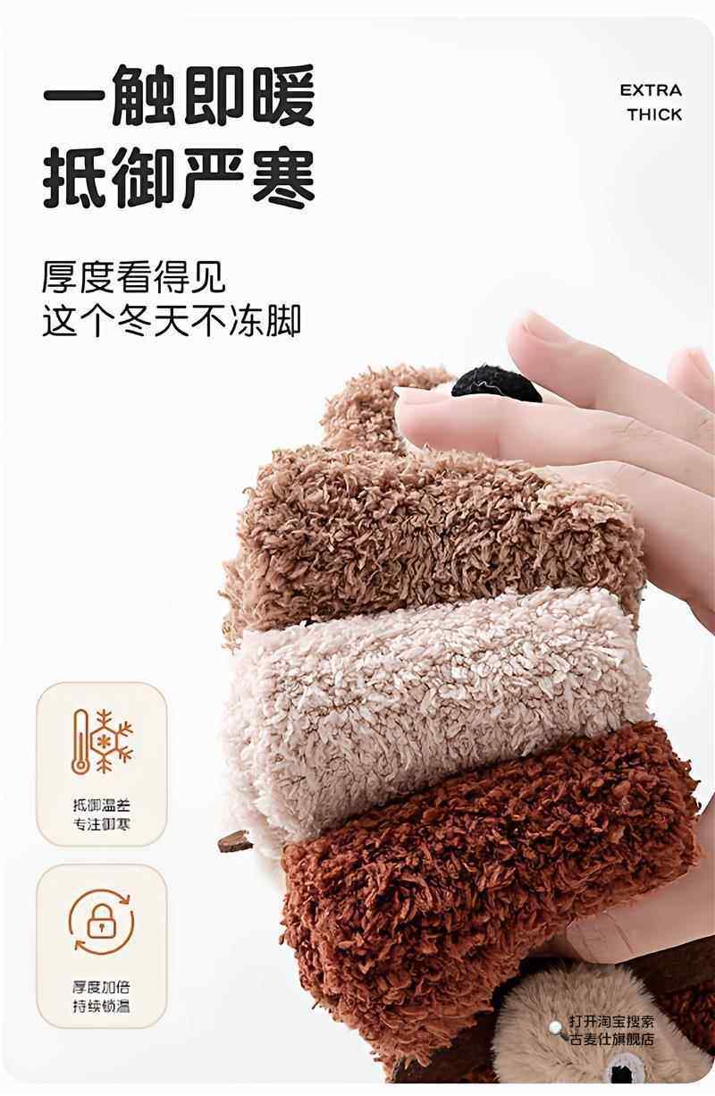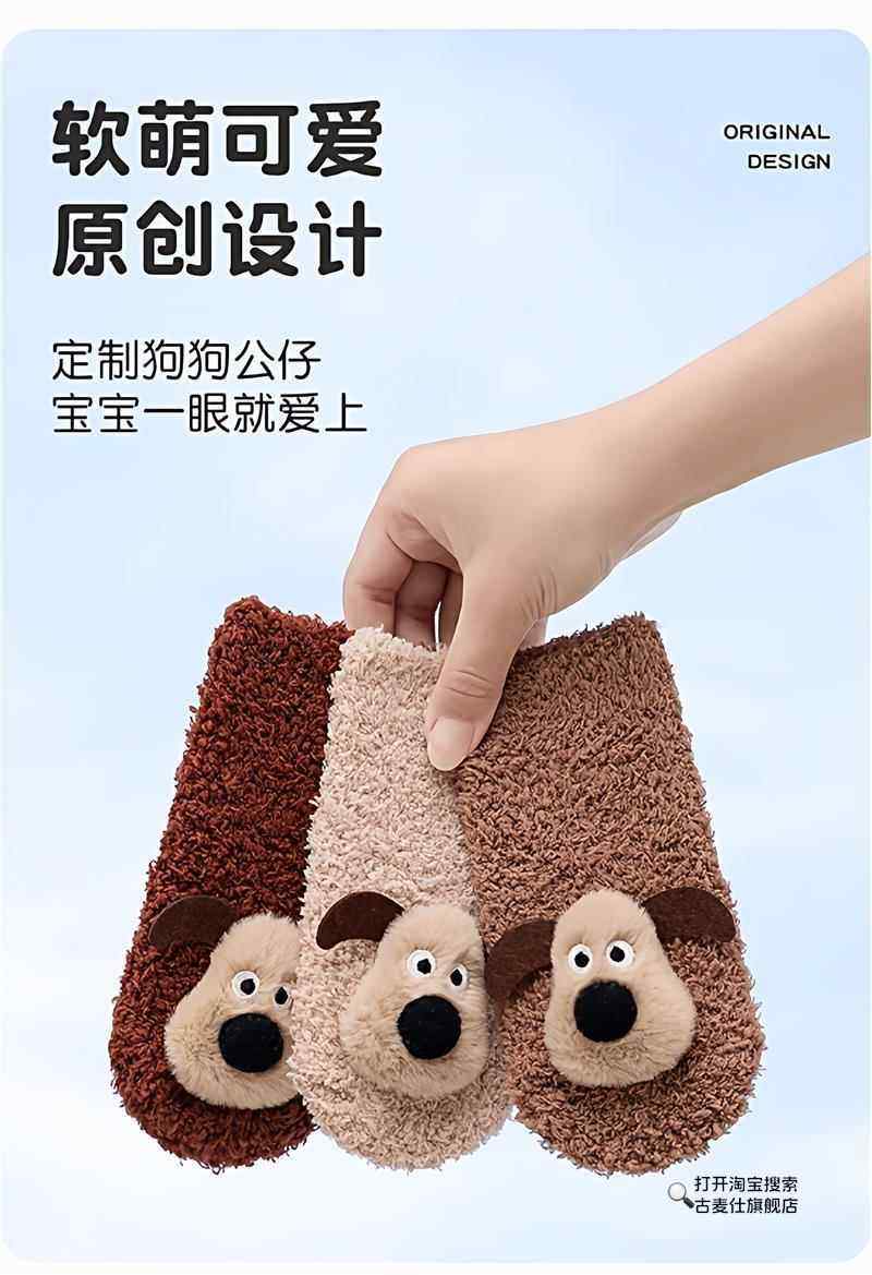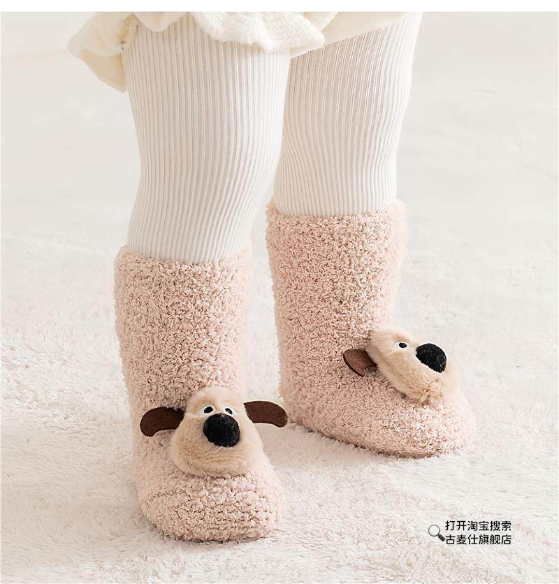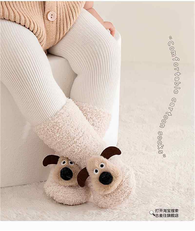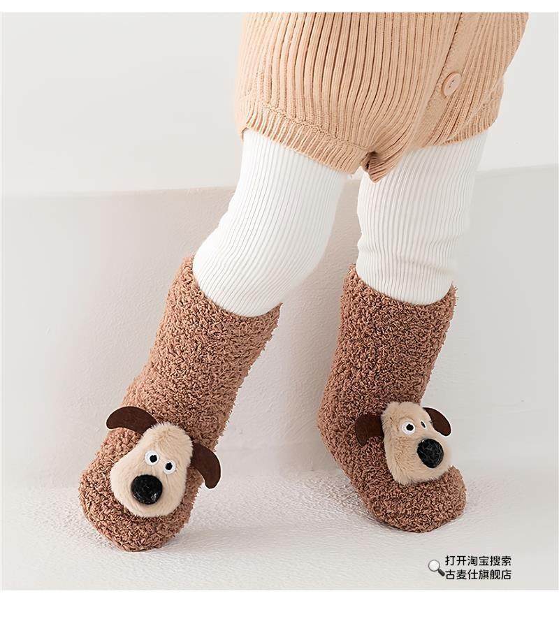 Autumn and Winter Medium-Thick Fleece-Lined Baby Socks Mid-Calf Newborn Infant Cute Puppy Half-Fleece Floor Socks