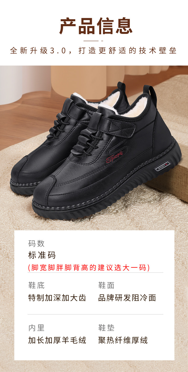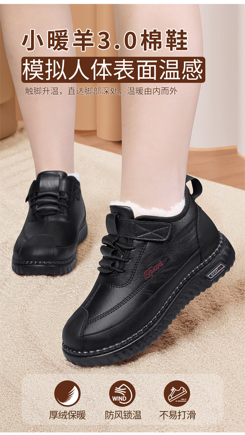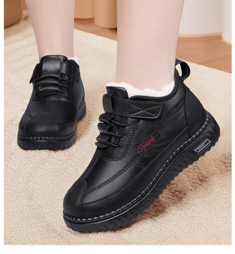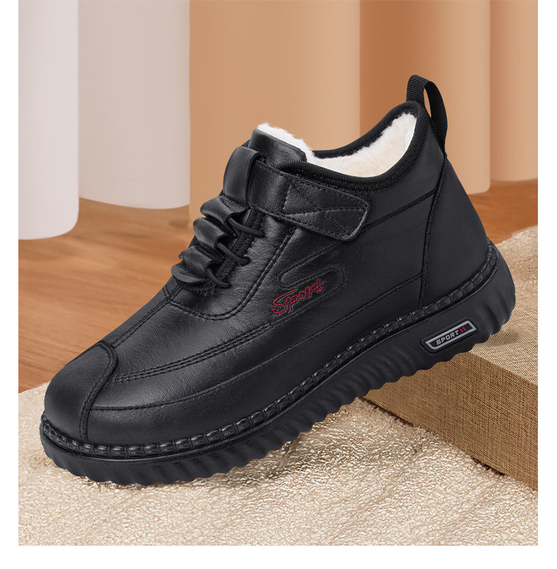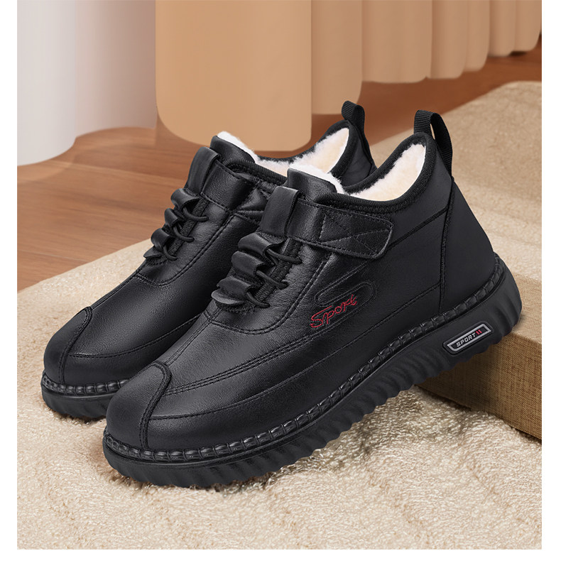 Old Beijing Cloth Shoes for Women, Winter Fleece-Lined, Thickened Leather Surface, Waterproof, Mom's Snow Boots, Elderly Warm Non-Slip Cotton Shoes