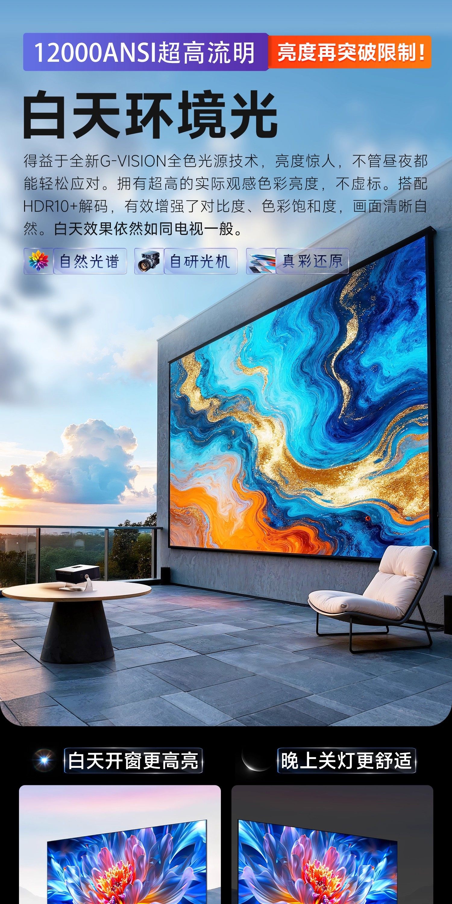 | Projector Brightness | 12000Ansi Lumens |