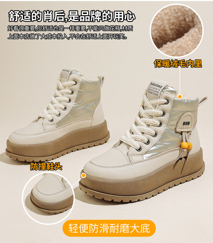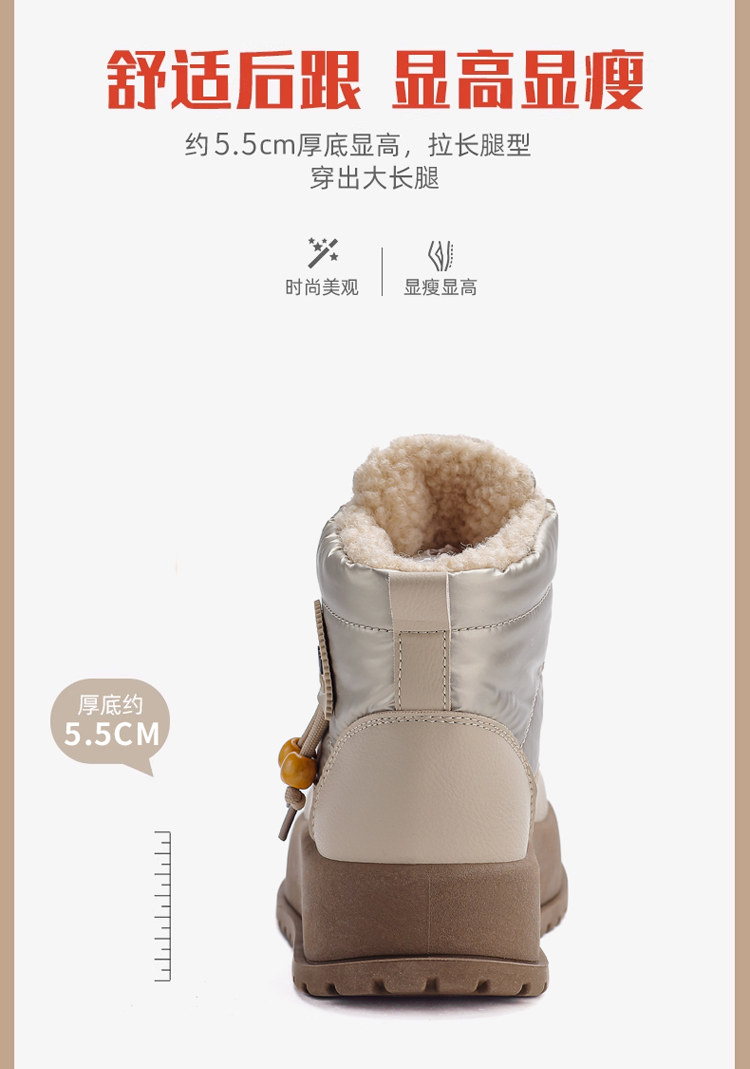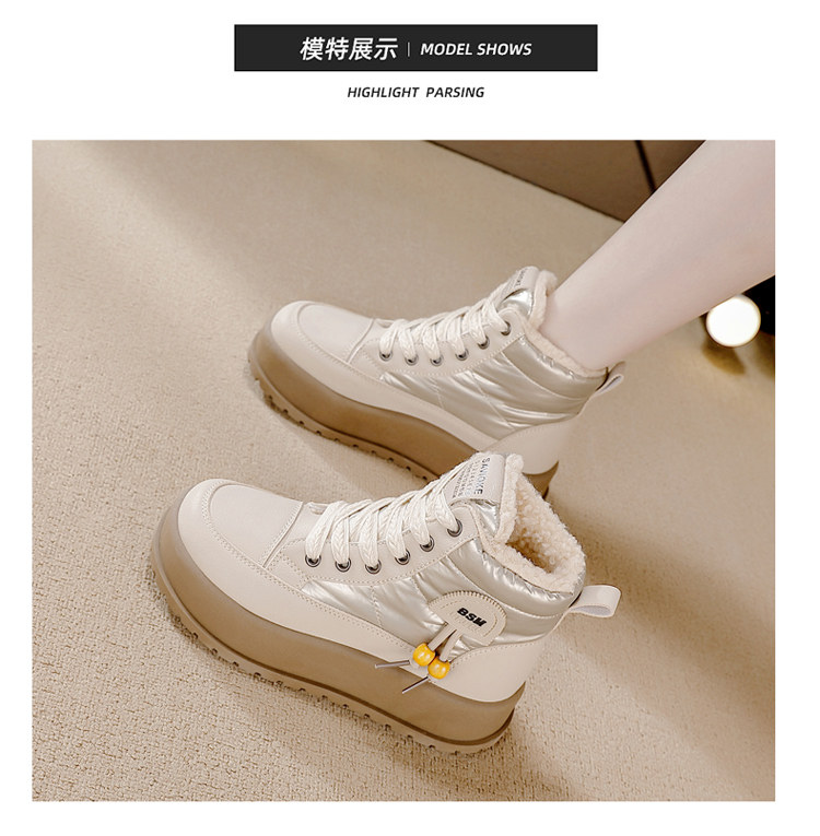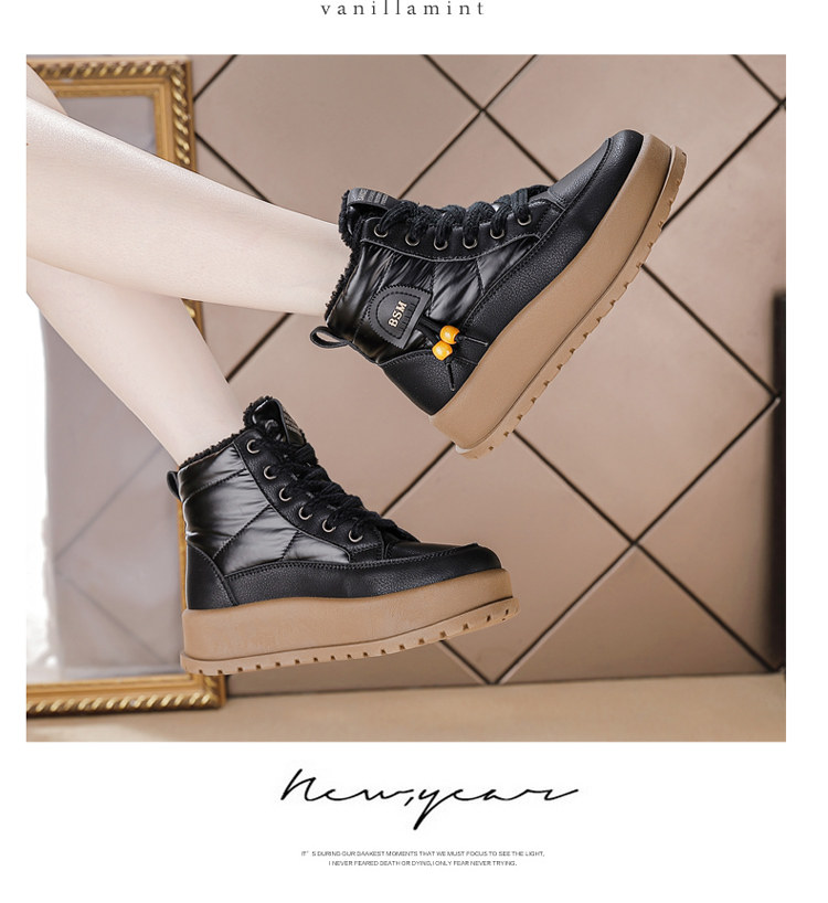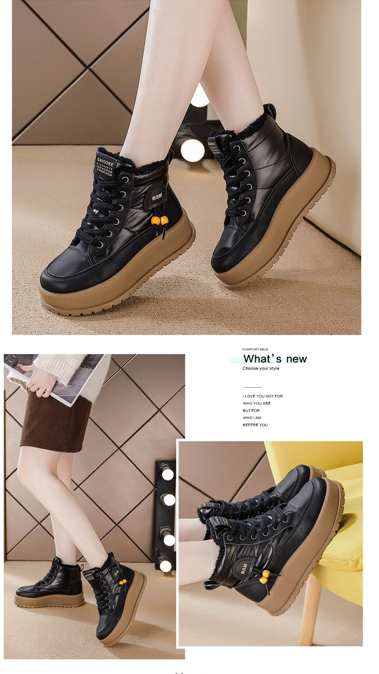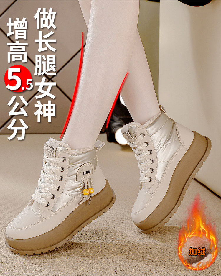 Thick-Soled Height-Increasing Lamb Wool Cotton Shoes for Women, 2025 Winter New Style, Non-Slip, Fleece-Lined, Warm Short Boots, Fashionable Snow Boots