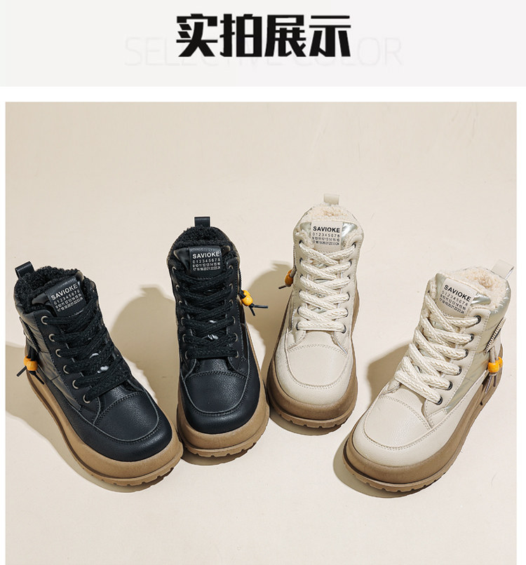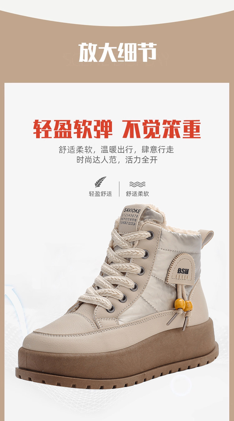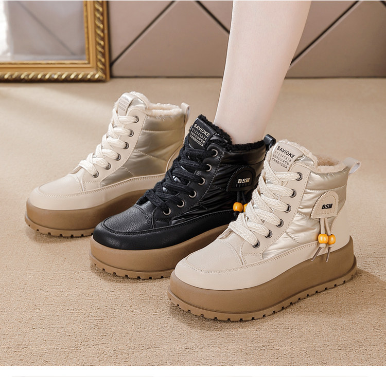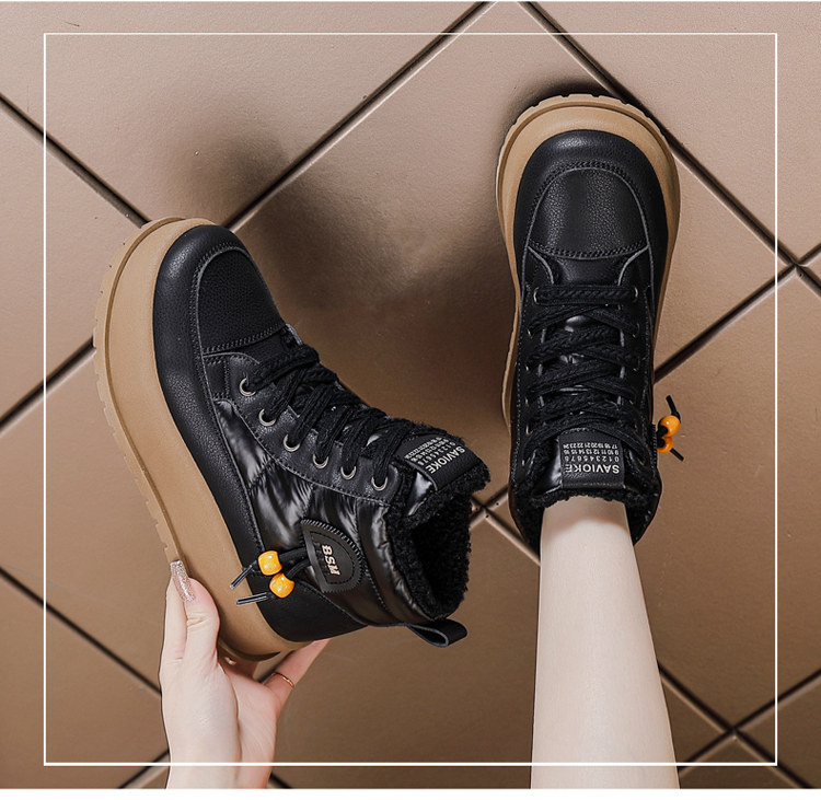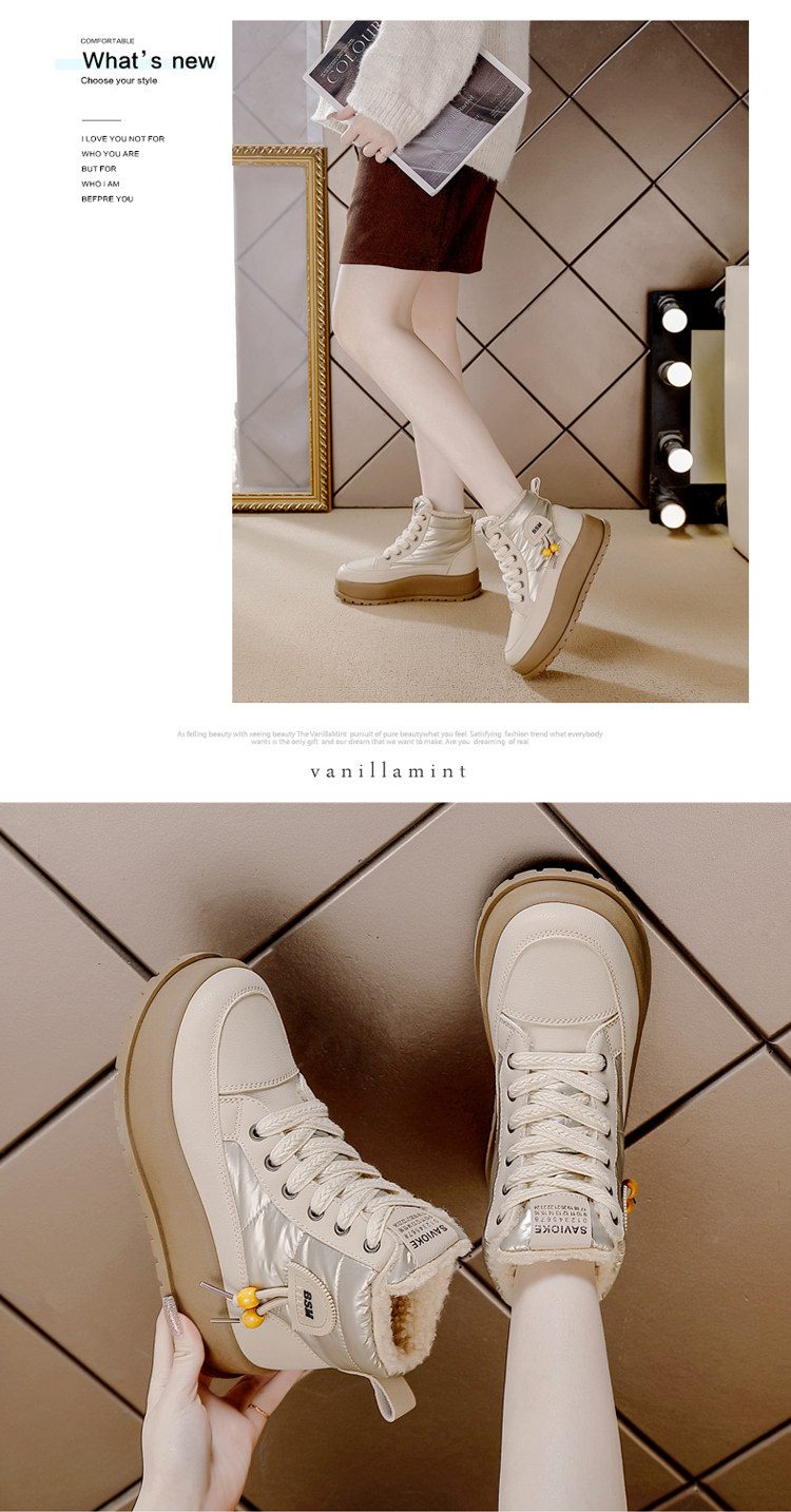 Thick-Soled Height-Increasing Lamb Wool Cotton Shoes for Women, 2025 Winter New Style, Non-Slip, Fleece-Lined, Warm Short Boots, Fashionable Snow Boots