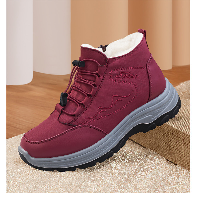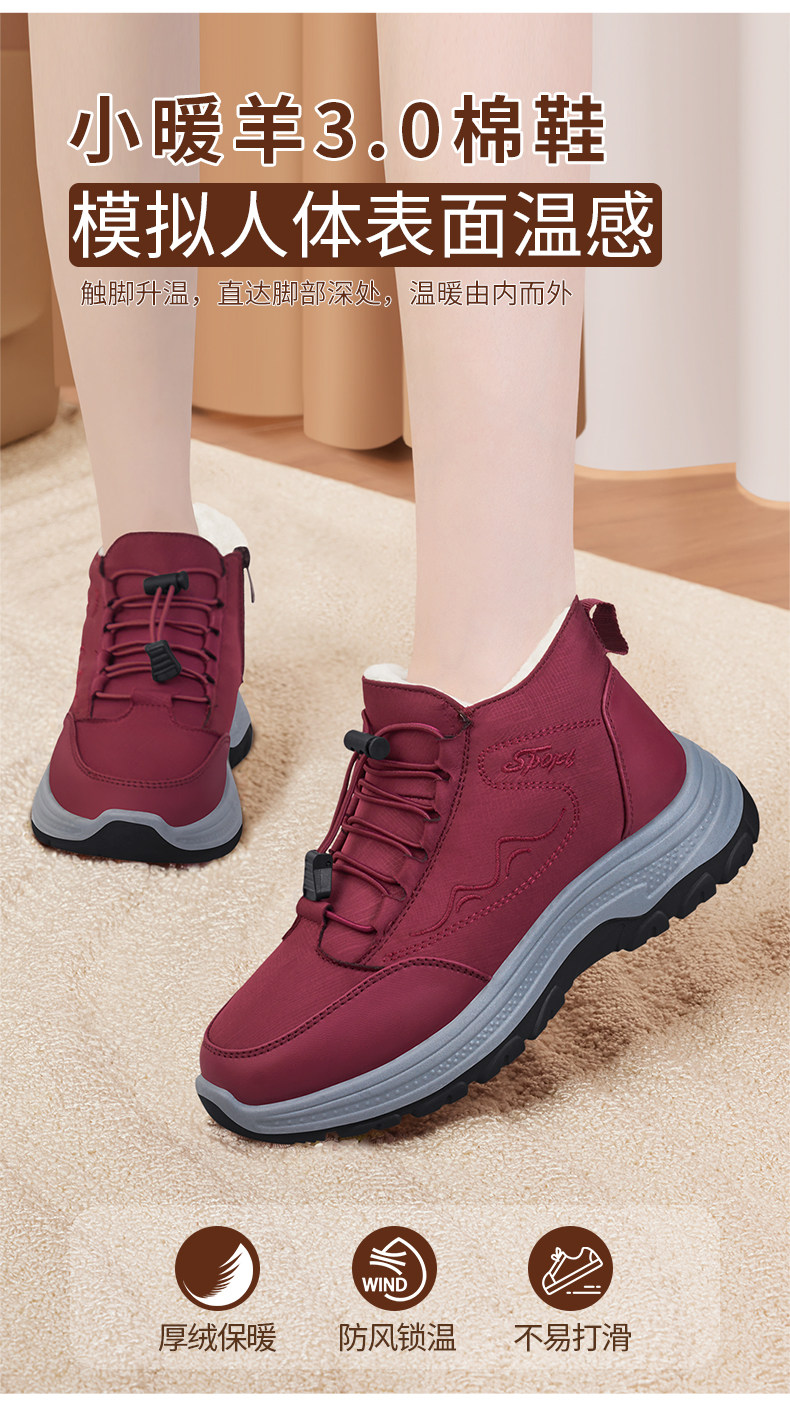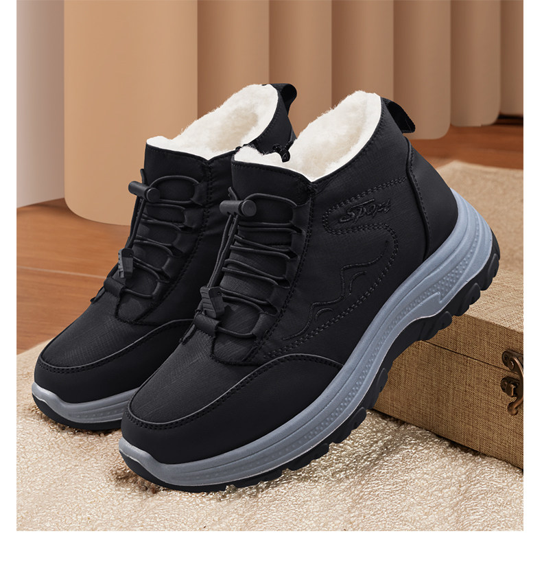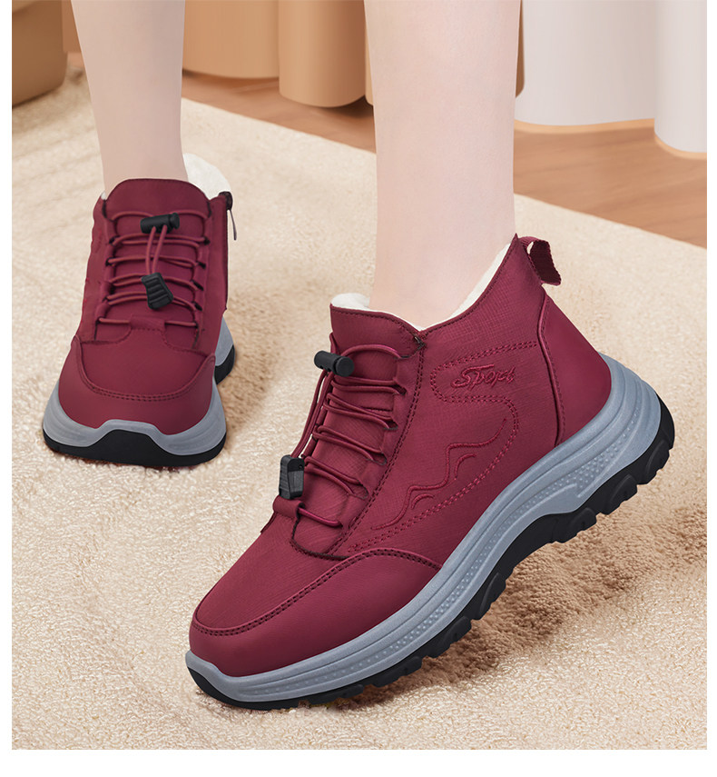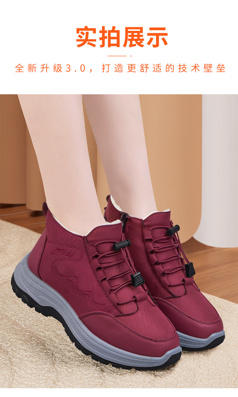 Old Beijing Cotton Shoes for Women, Winter Fleece-Lined, Thickened, Warm, Non-Slip, Mother's Cotton Boots, Elderly Waterproof Wool Snow Boots
