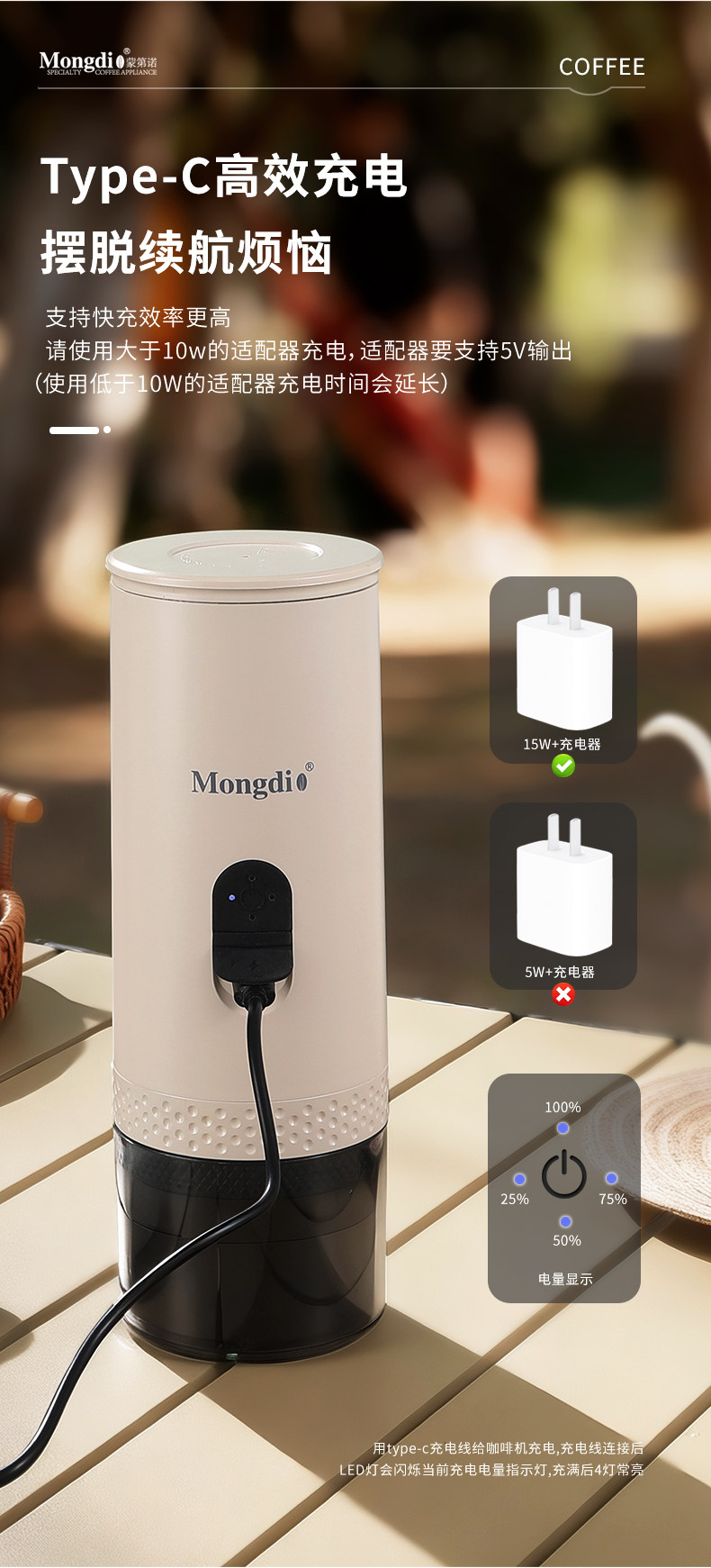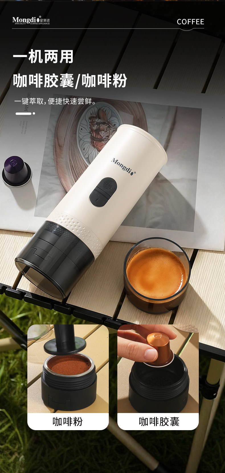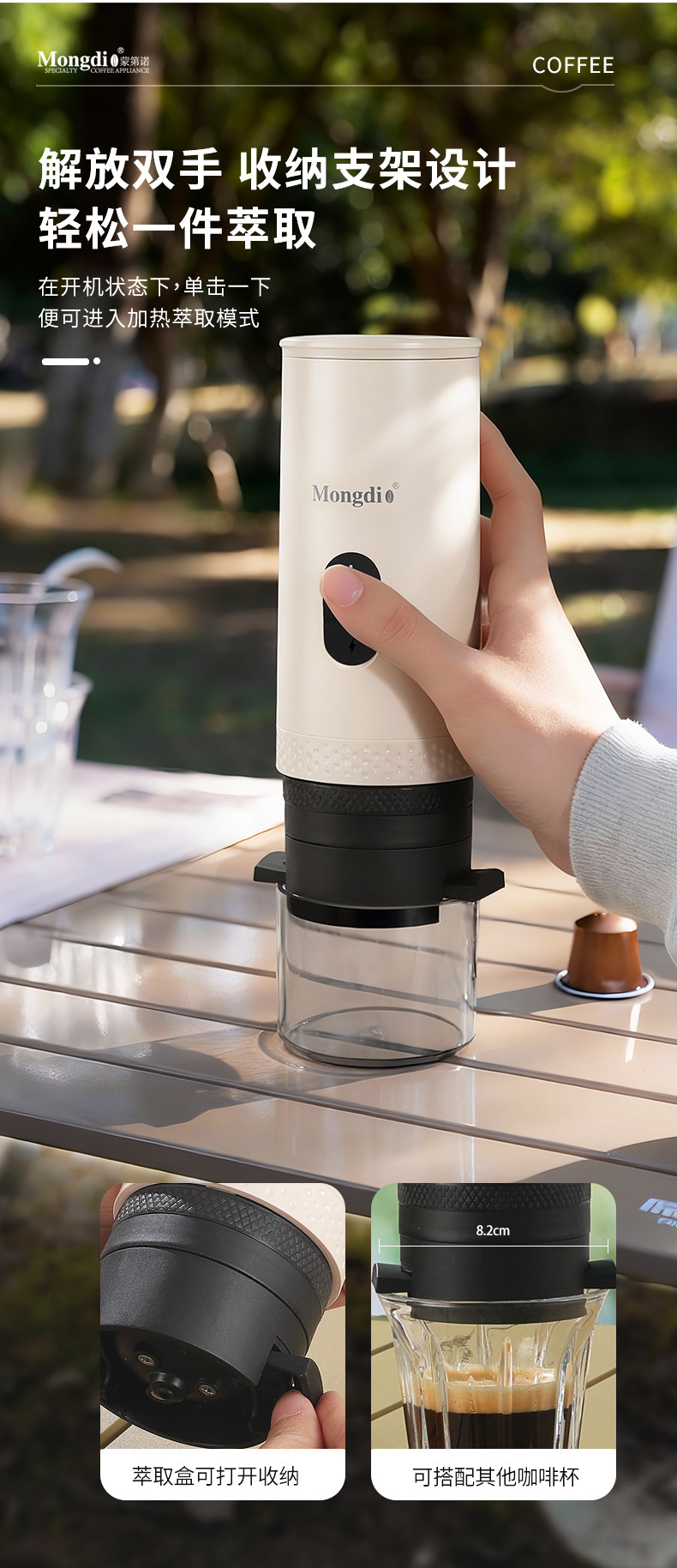 Mongdio Portable Coffee Machine Capsule Machine Electric Espresso Machine Home Outdoor Coffee Powder Extraction Machine