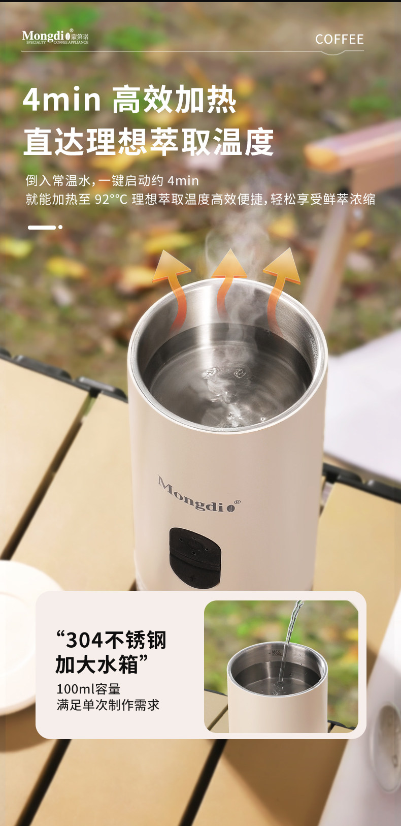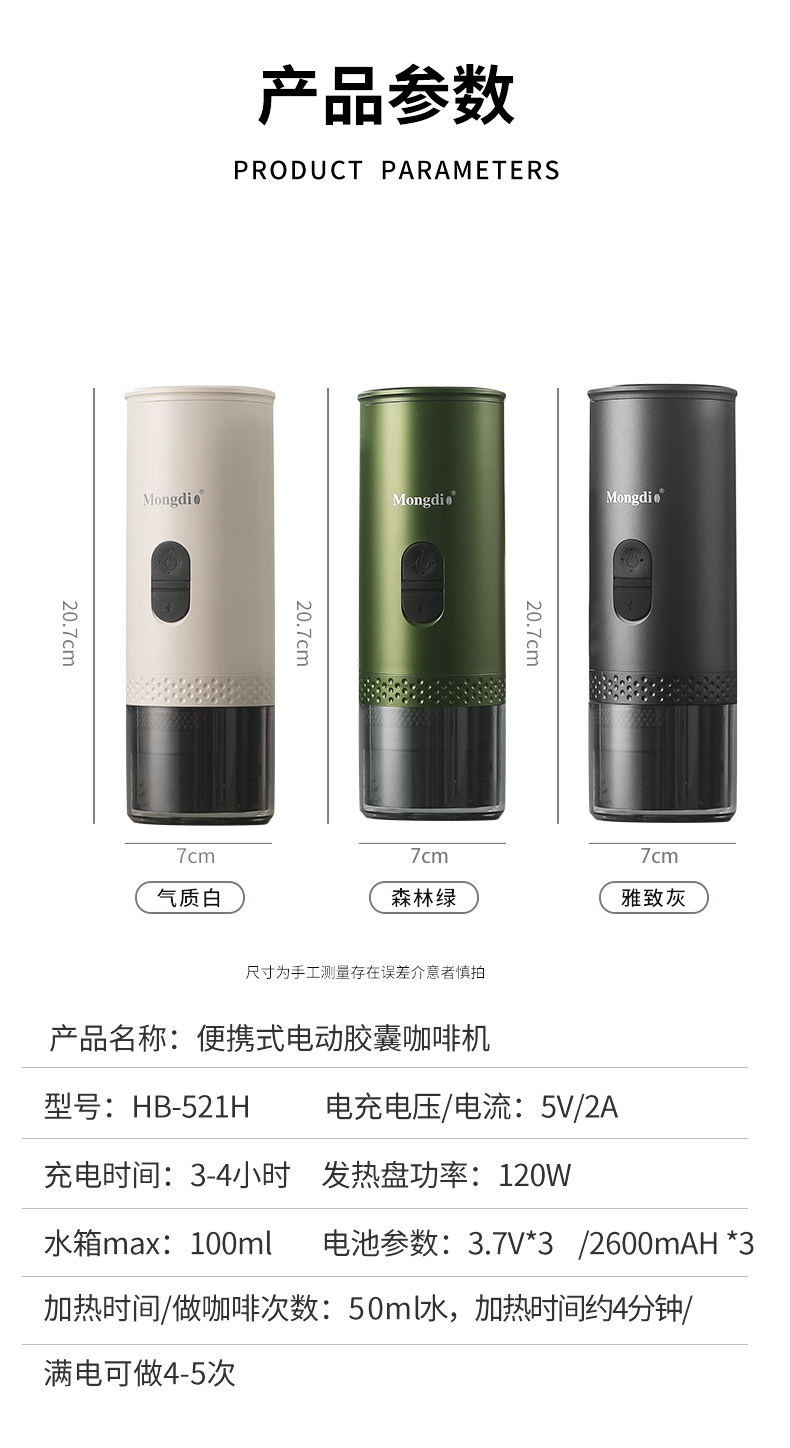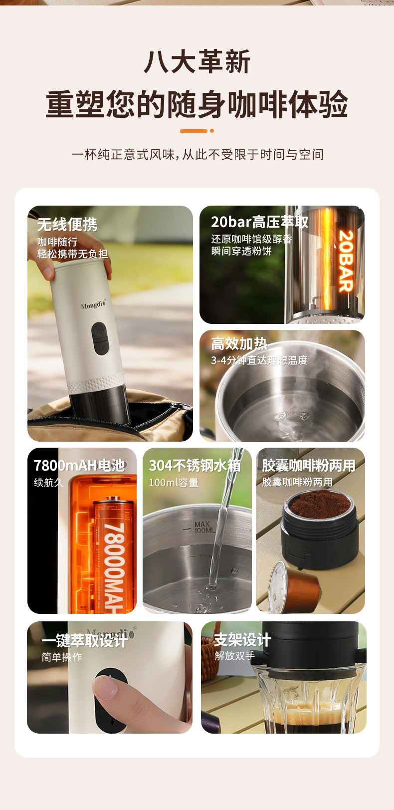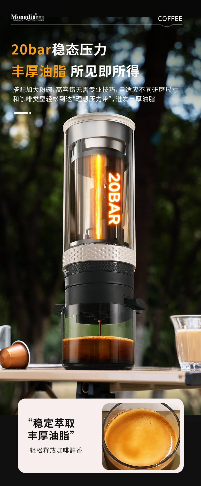 Mongdio Portable Coffee Machine Capsule Machine Electric Espresso Machine Home Outdoor Coffee Powder Extraction Machine