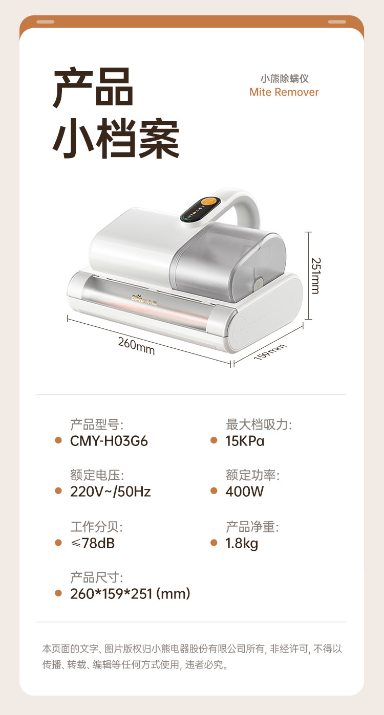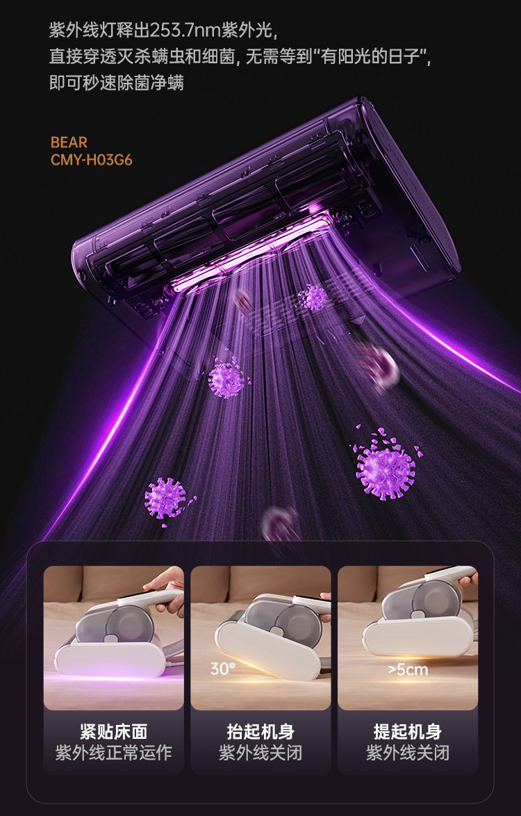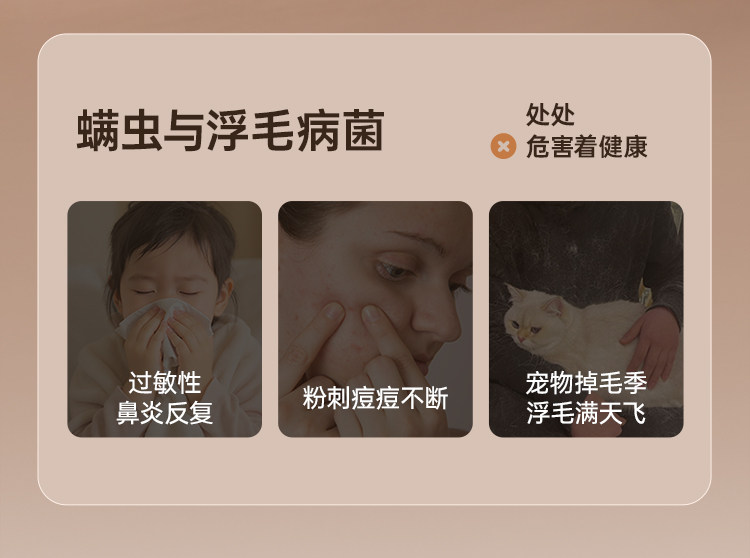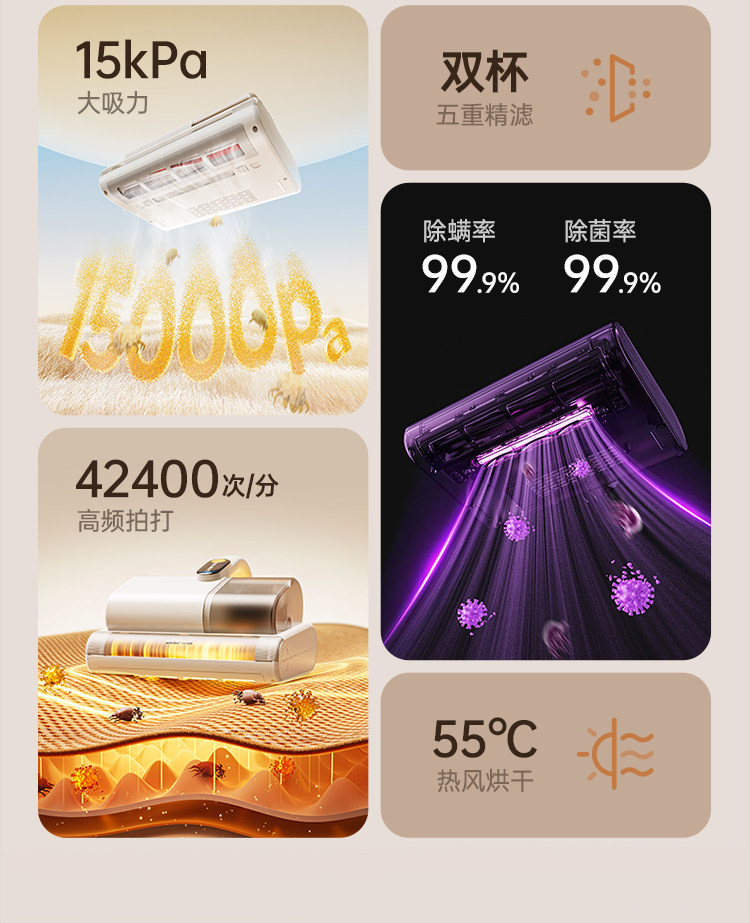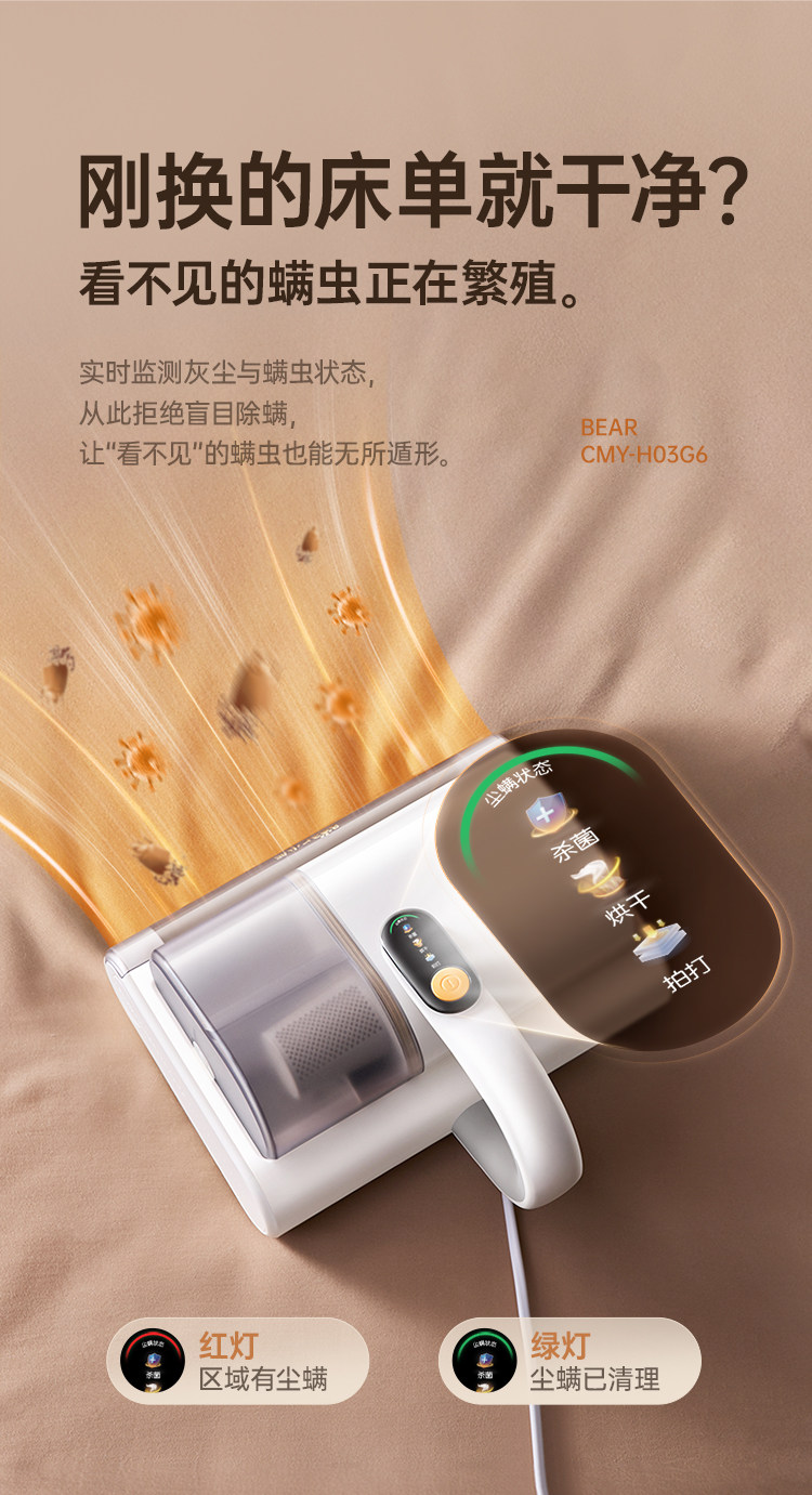 | Mite Removal Method | Hotwind,High Frequency Beating,Ultraviolet Rays,Dust Mite Sensor,Suction Power |