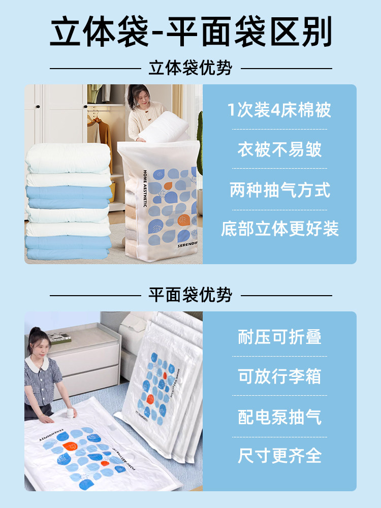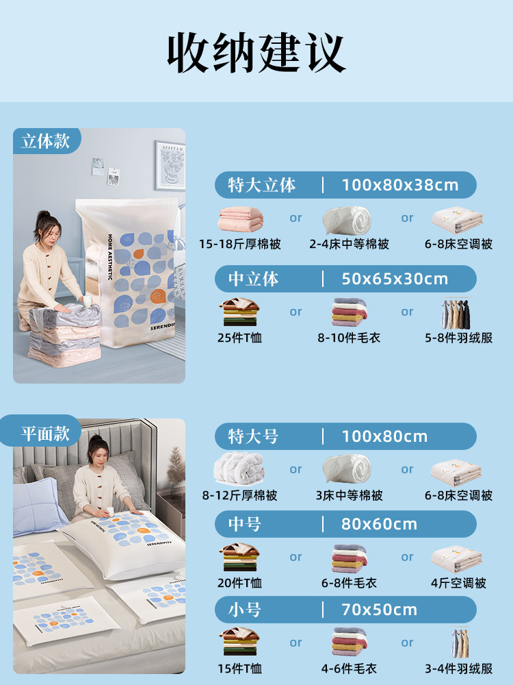 | Color Classification | 【Size Recommendation Chart】(Do Not Purchase),The Difference between Three-Dimensional Bags and Flat Bags (Do Not Take Pictures),Popular and Hot-Selling 9-Piece Set [2 Extra Large Three-Dimensional + 6 Medium Three-Dimensional] Comes with a Smart Electric Pump,All-Purpose Storage 11-Piece Set [2 Extra Large Three-Dimensional + 2 Medium Three-Dimensional + 2 Extra Large + 2 Medium + 2 Small] Comes with Smart Electric Pump,5-Piece Quilt Storage Set [4 Extra Large Three-Dimensional] Comes with Smart Electric Pump,Down Jacket Storage 6-Piece Set [5 Medium Three-Dimensional] Comes with Smart Electric Pump,7-Piece Set for Storing Multiple Types of Clothing [3 Medium Three-Dimensional + 3 Medium] Comes with Smart Electric Pump,Extra Thick 13-Piece Set [3 Extra Large Three-Dimensional + 3 Medium Three-Dimensional + 3 Extra Large + 3 Medium] Comes with Smart Electric Pump,Extra Thick 11-Piece Set [5 Extra Large Three-Dimensional + 5 Extra Large] Comes with Smart Electric Pump,Extra Thick 26-Piece Set [6 Extra Large Three-Dimensional + 6 Medium Three-Dimensional + 6 Medium + 7 Small] Comes with Smart Electric Pump,Extra Thick 11-Piece Set [5 Extra Large Three-Dimensional + 5 Medium Three-Dimensional] Comes with Smart Electric Pump,Extra Thick 6-Piece Set [5 Medium Sizes] Comes with Smart Electric Pump,Extra Thick 6-Piece Set [5 Small Sizes] Comes with Smart Electric Pump,Pumpless Set (Preferred for Repurchase, 1-Year Warranty),Pumpless 6-Piece Set [3 Extra Large Three-Dimensional + 3 Medium Three-Dimensional],Extra Thick Pumpless 10-Piece Set [2 Extra Large Three-Dimensional + 2 Medium Three-Dimensional + 2 Extra Large + 2 Medium + 2 Small],Extra Thick 8-Piece Set Without Pump [2 Extra Large Three-Dimensional + 6 Medium Three-Dimensional],Extra Thick Pump-Free 4-Piece Set [4 Extra Large Three-Dimensional],Extra Thick Pumpless 5-Piece Set [5 Medium Three-Dimensional],Extra Thick Pumpless 6-Piece Set [3 Medium Three-Dimensional + 3 Medium],The Following 5 Are [Radio Pump] Packages, Which Can Be Pumped and Charged, No Need to Plug In, and Come with Batteries That Do Not Need to Be Charged,All-Purpose Storage 11-Piece Set [2 Extra Large Three-Dimensional + 2 Medium Three-Dimensional + 2 Extra Large + 2 Medium + 2 Small] Comes with a Wireless Pump,Popular and Hot-Selling 9-Piece Set [2 Extra Large Three-Dimensional + 6 Medium Three-Dimensional] Comes with a Wireless Pump,5-Piece Quilt Storage Set [4 Extra Large Three-Dimensional] Comes with a Wireless Pump,Down Jacket Storage 6-Piece Set [5 Medium Three-Dimensional] Comes with a Wireless Pump,Extra Thick 5-Piece Set [2 Medium + 2 Small] Comes with a Wireless Pump (Can Be Put in a Suitcase) |