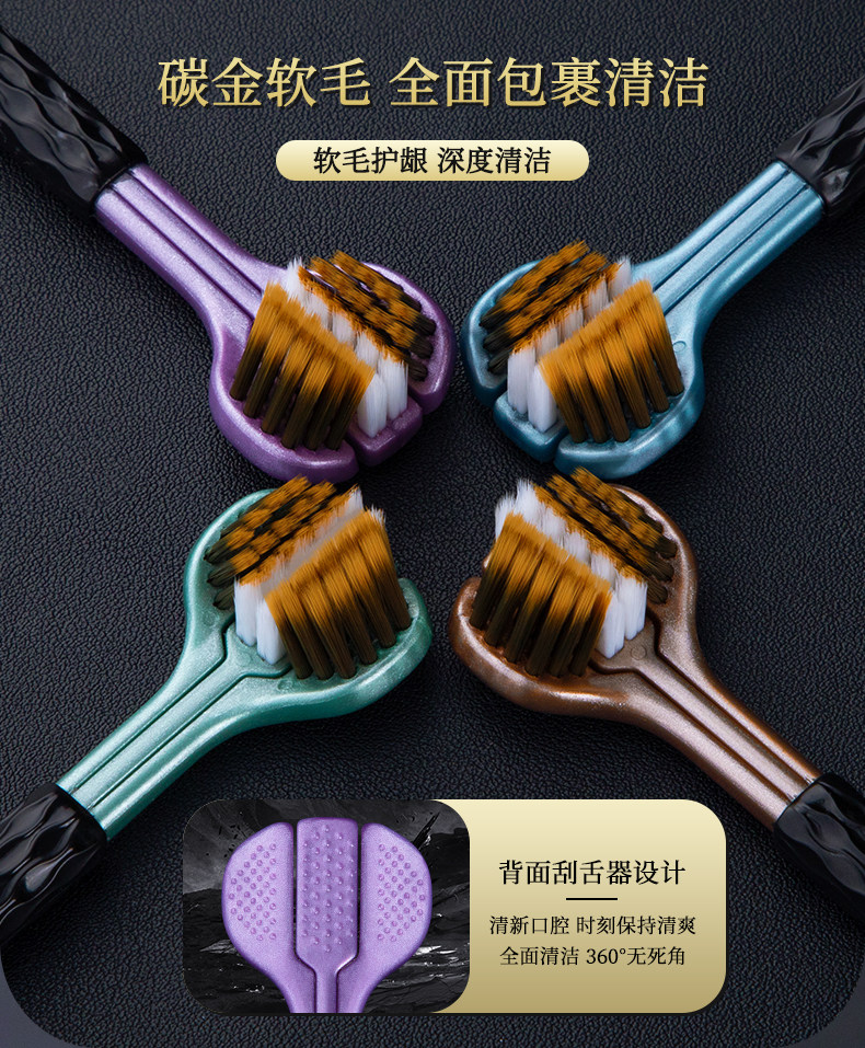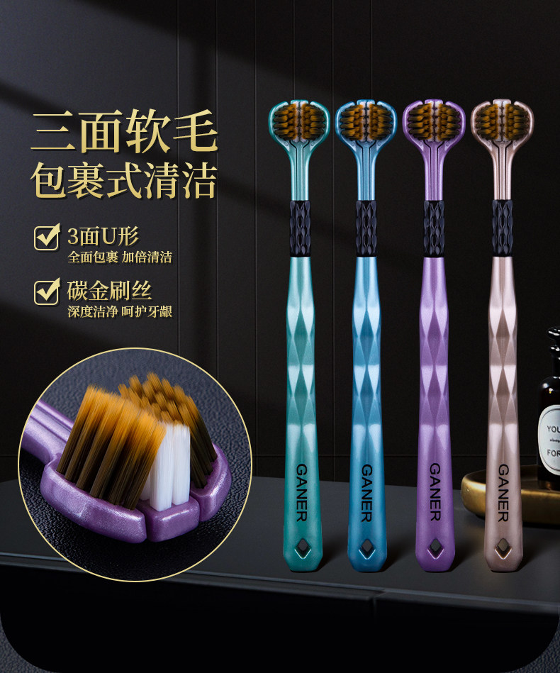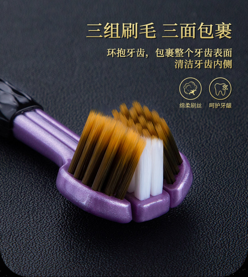 Three-Sided Wrapped Toothbrush with Nano-Soft Bristles for Adult Household Use, Three-Head Cleaning between Teeth, Men's Special, Women's Family Pack