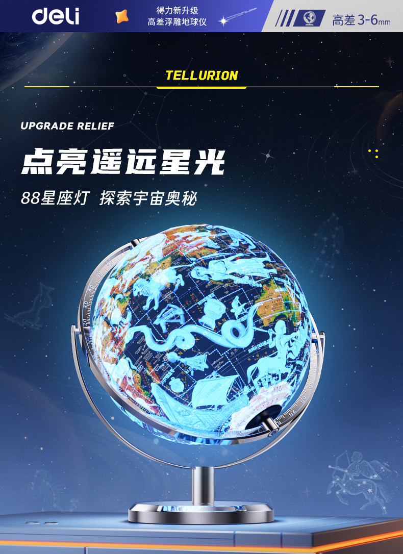 Deli 3D Floating Globe, Authentic, for Students, Junior High School Students, 2026 New Model, Children's Enlightenment 3D Relief Ornament, Light Luxury, High-End, Boys' Birthday Gift