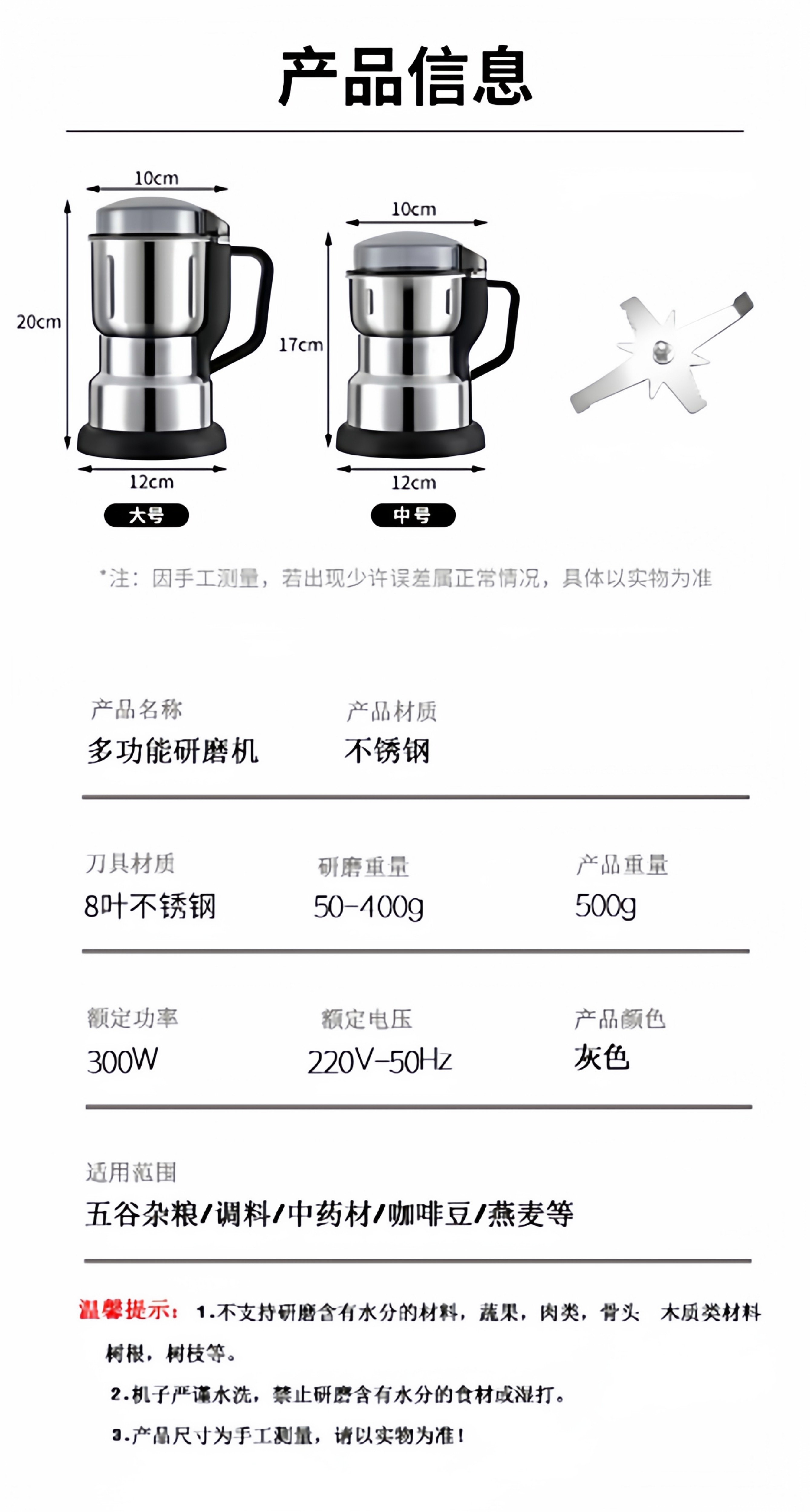 | Capacity | 500g |