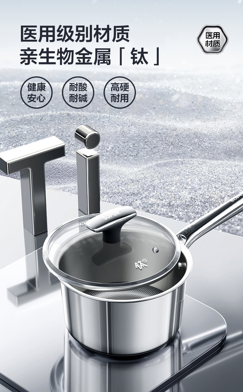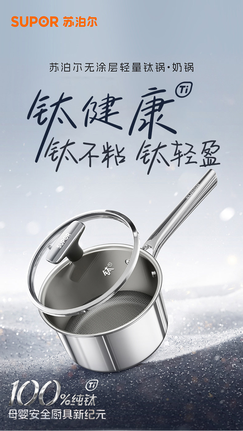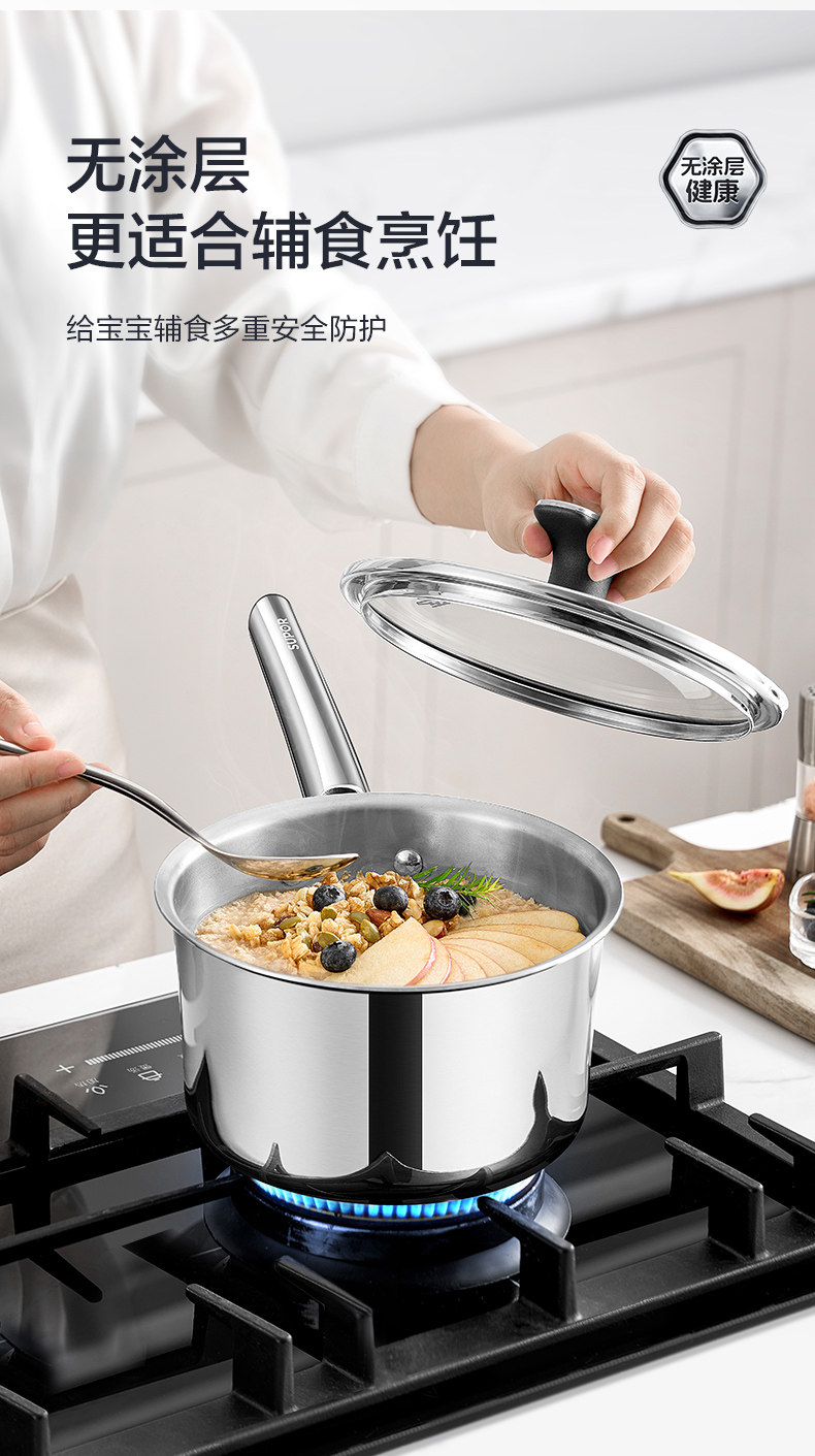 Supor Milk Pot Non-Stick Pure Titanium Baby Food Pot Uncoated Instant Noodle Pot Single-Serving Small Pot Noodle Cooking Pot