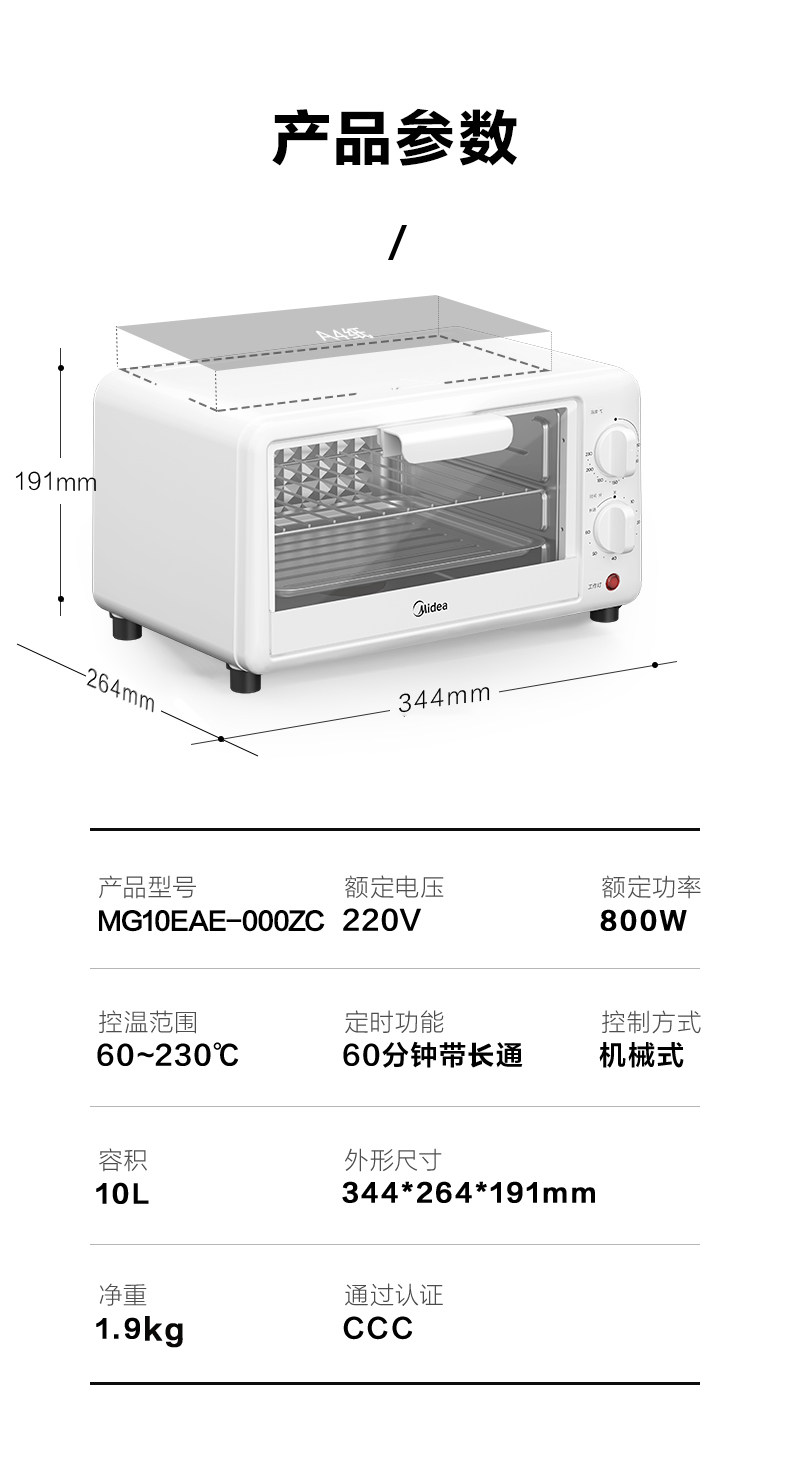 Midea Electric Oven for Home Use Mg10 Mini Small 10L Baking Multifunctional 2025 New Model Portable for Dormitory Rental