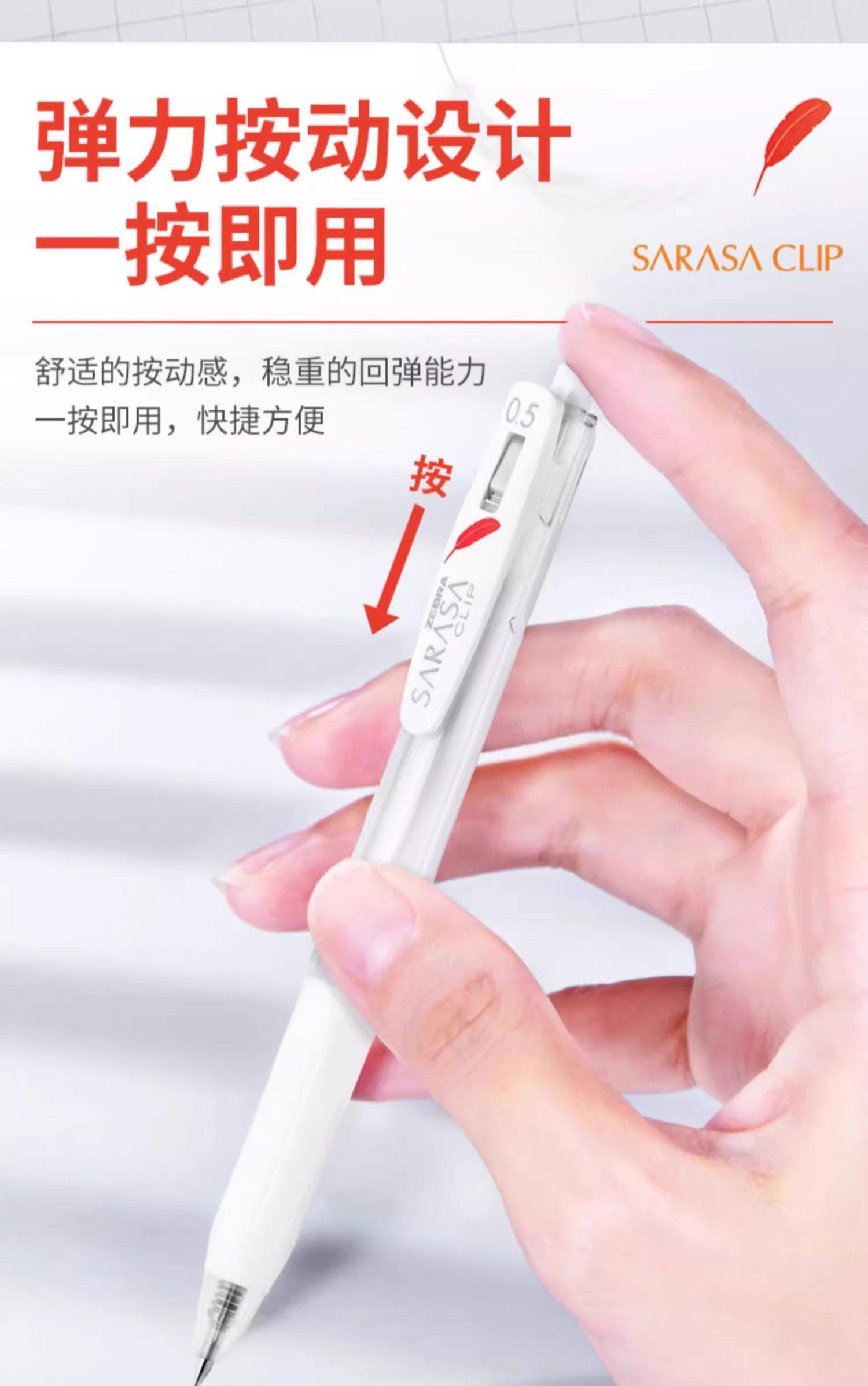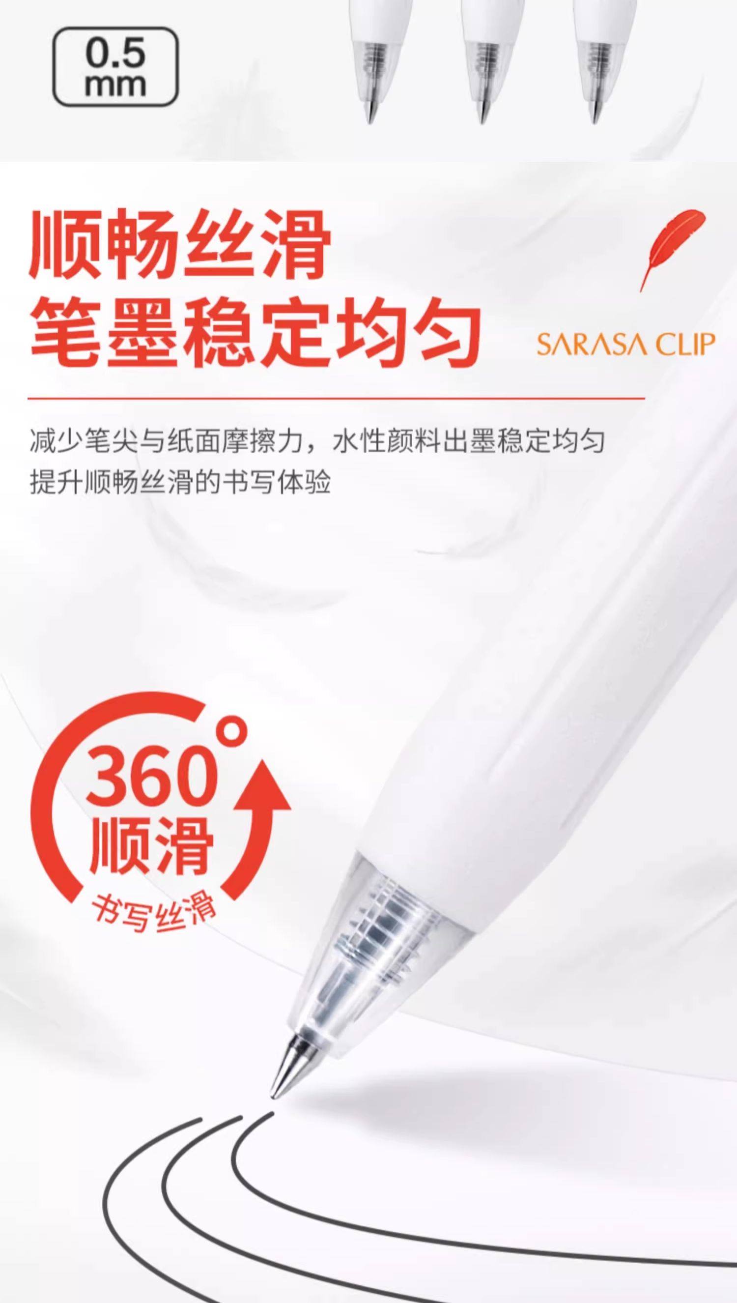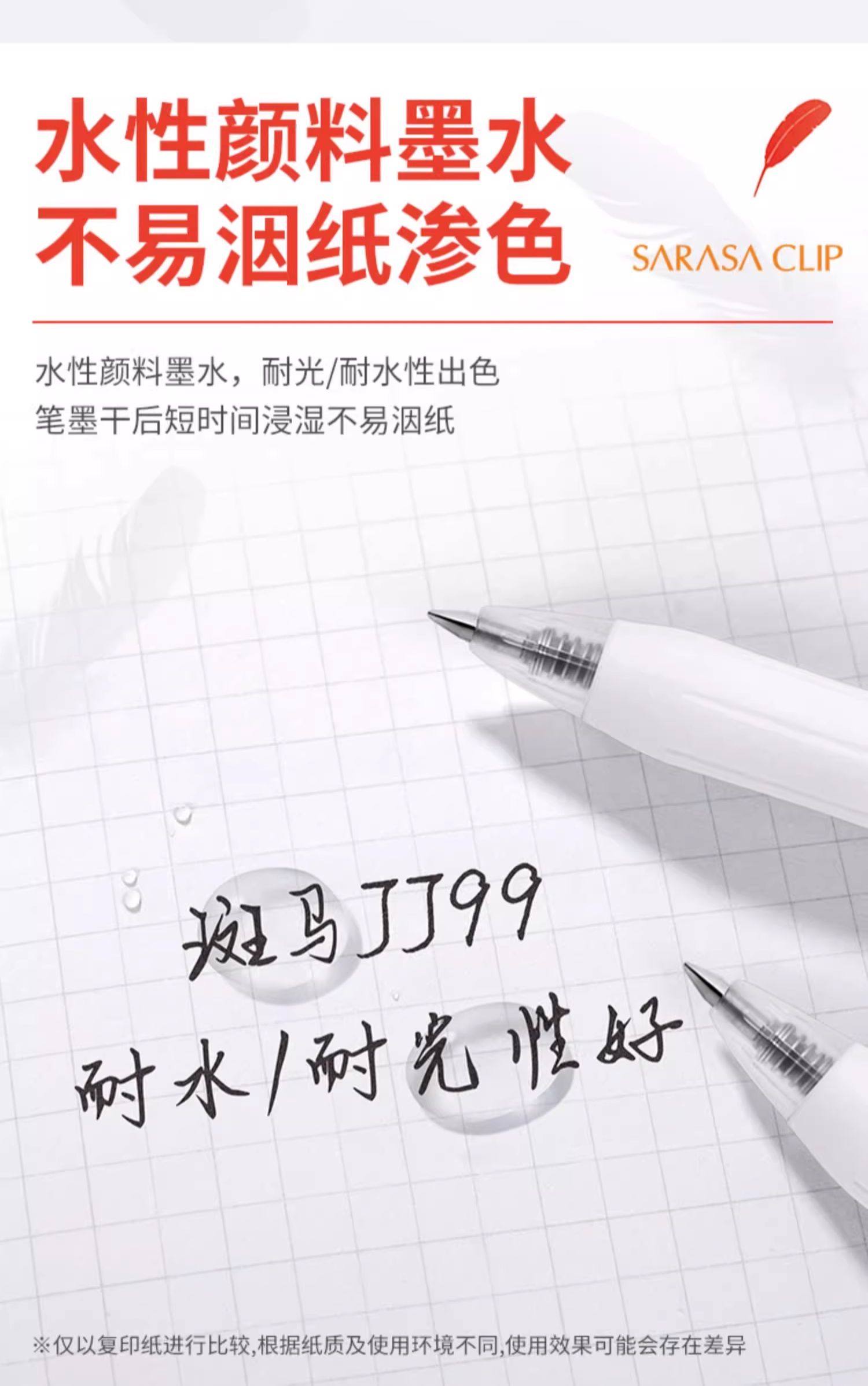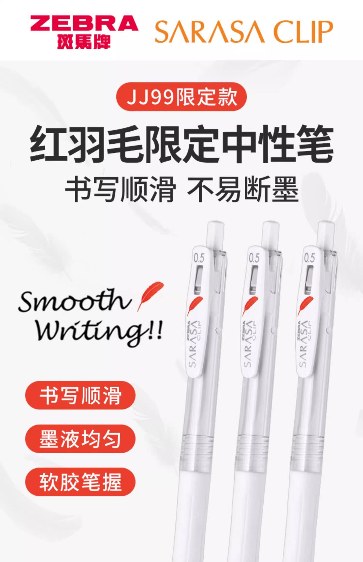 Japanese Zebra Sarasa Jj99 Red Feather Gel Pen, Retractable White Barrel, High Aesthetic Limited Edition Red Feather, Bullet Tip Black Pen, Large Capacity Refill, Suitable for Middle and High School Students, Exam Use, 0.5mm