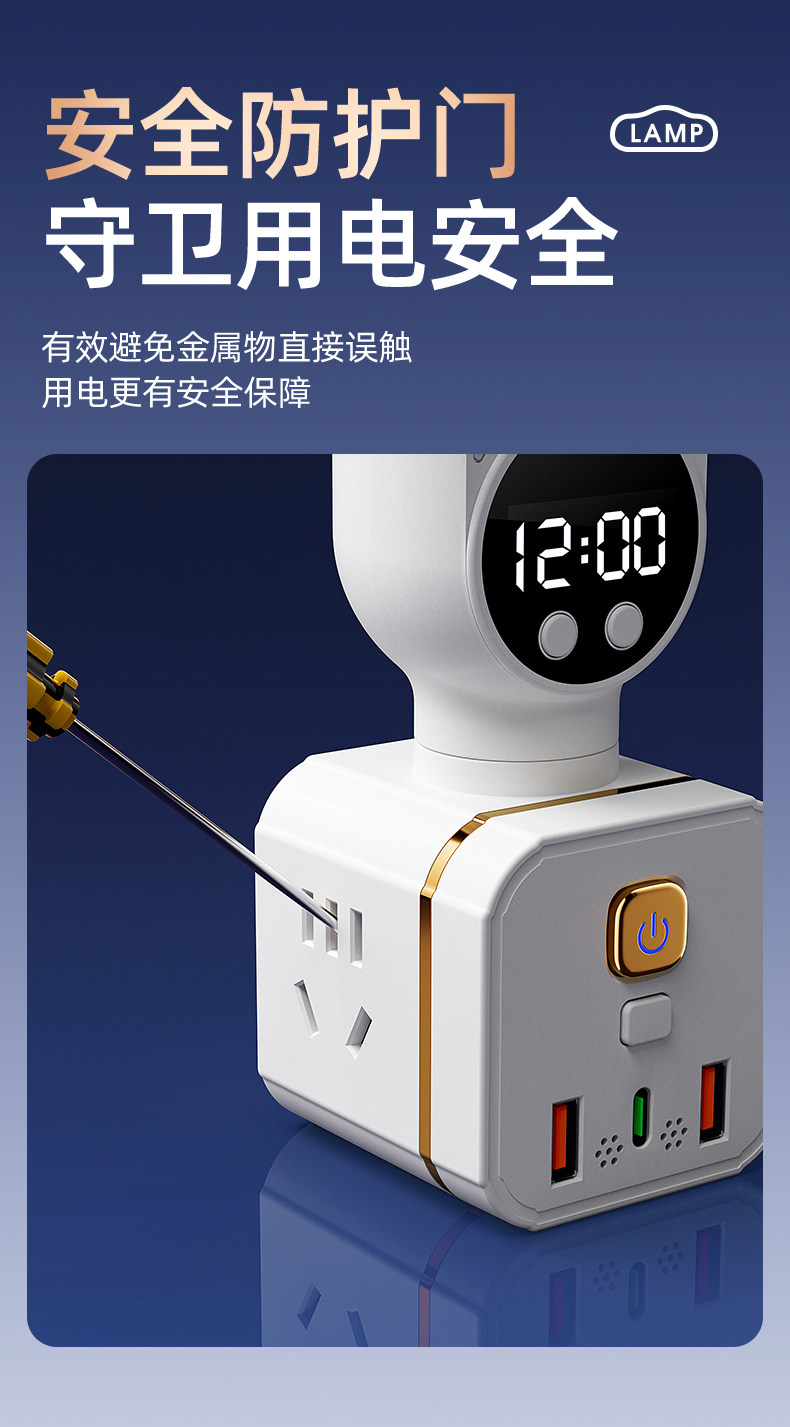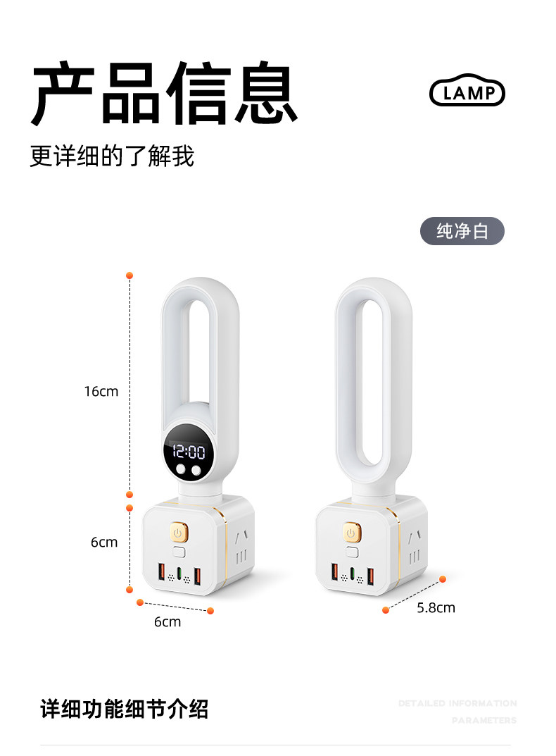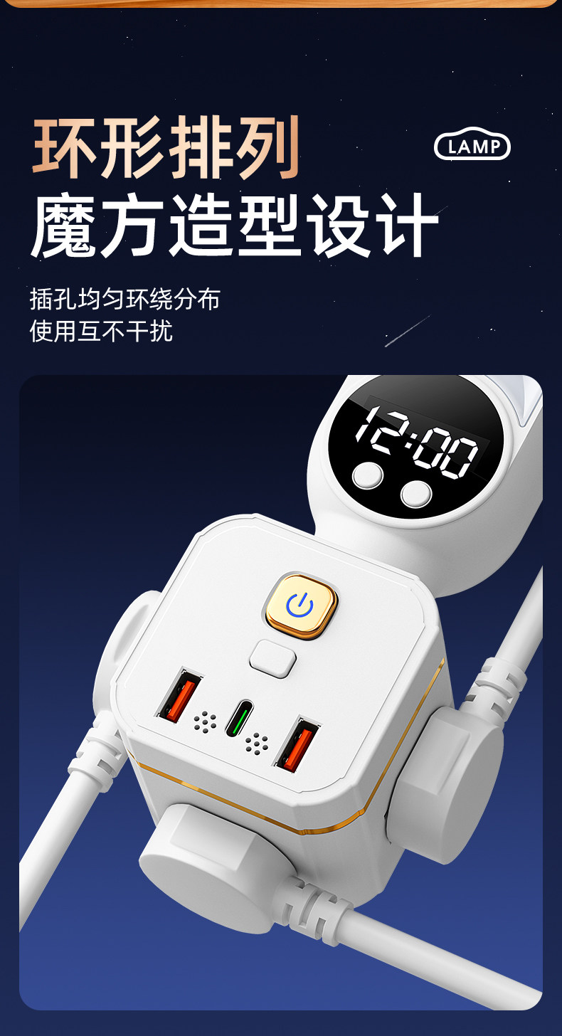 Voice-Controlled Night Light, Intelligent Voice-Controlled Led Light with Time Display, Rotatable USB Socket Converter for Home and Dormitory Use