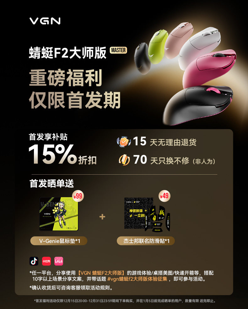 Vgn Dragonfly F2 Master Edition Wireless Lightweight Tri-Mode Long Battery Life Gaming Mouse Fearless Contract Battle