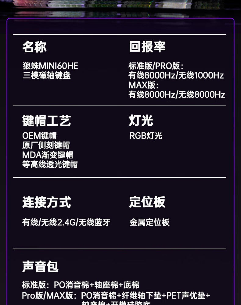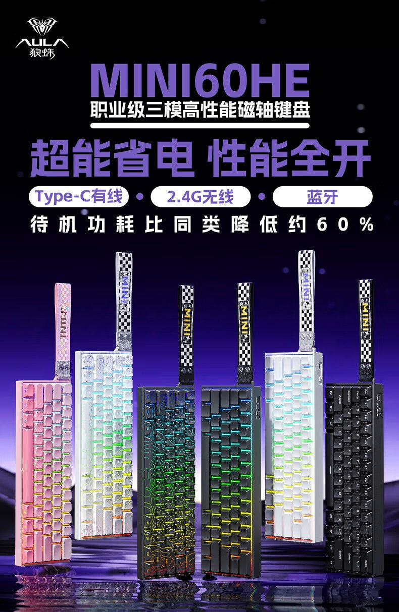 Wolf Spider Mini60 Wireless Three-Mode Magnetic Axis Keyboard Rgb Twilight Butterfly Dark Night Keyboard and Mouse Gaming Set