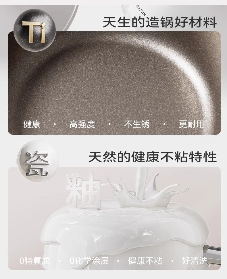 Titanium Ceramic Flat-Bottomed Non-Stick Frying Pan for Home Use, Suitable for Induction Cookers and Gas Stoves, No-Coating Cooking Pan for Frying Steak