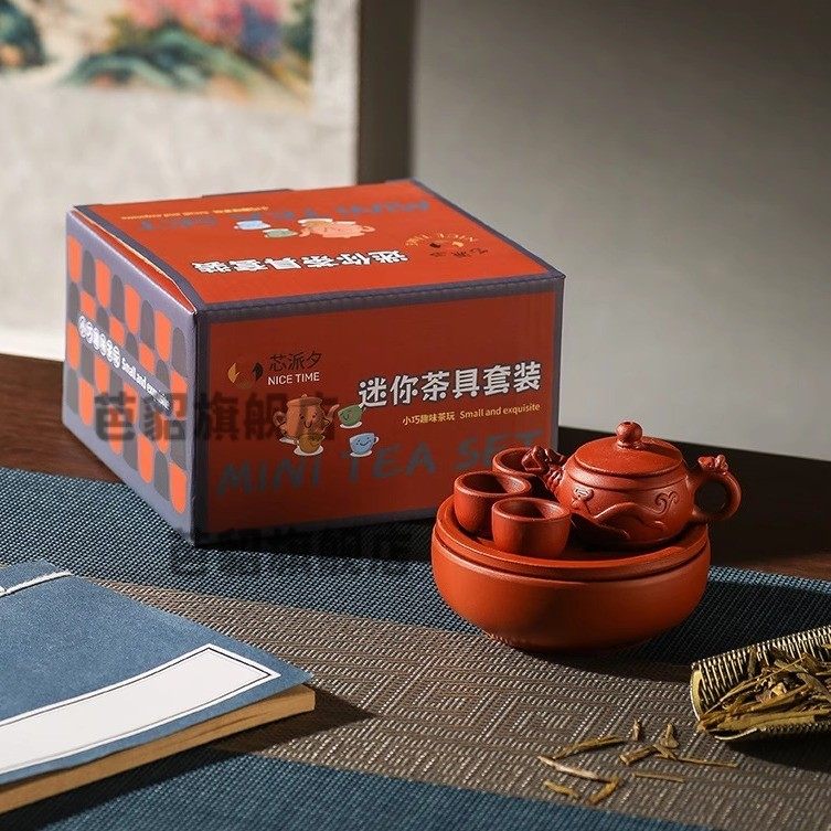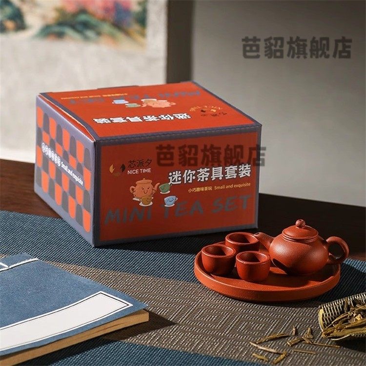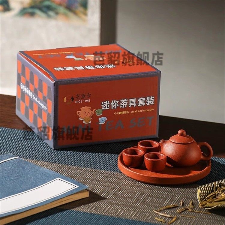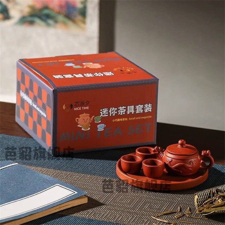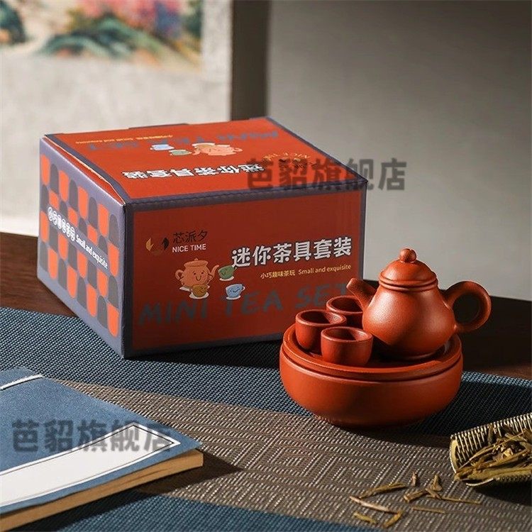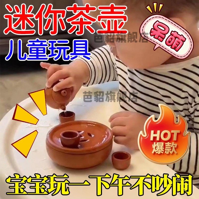 Children's Mini Tea Set Toy Pretend Play Tea Tray Household Small High-Temperature Fired Purple Clay Teapot Decorative Ornament Xz