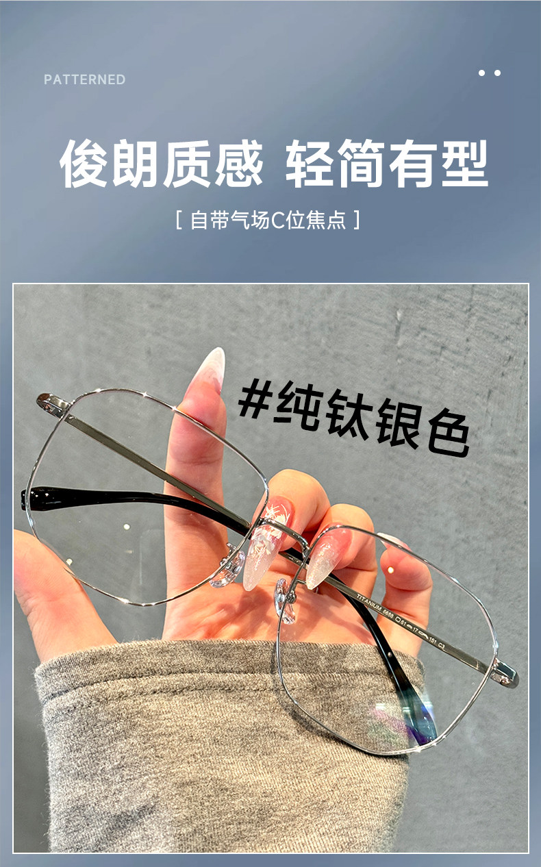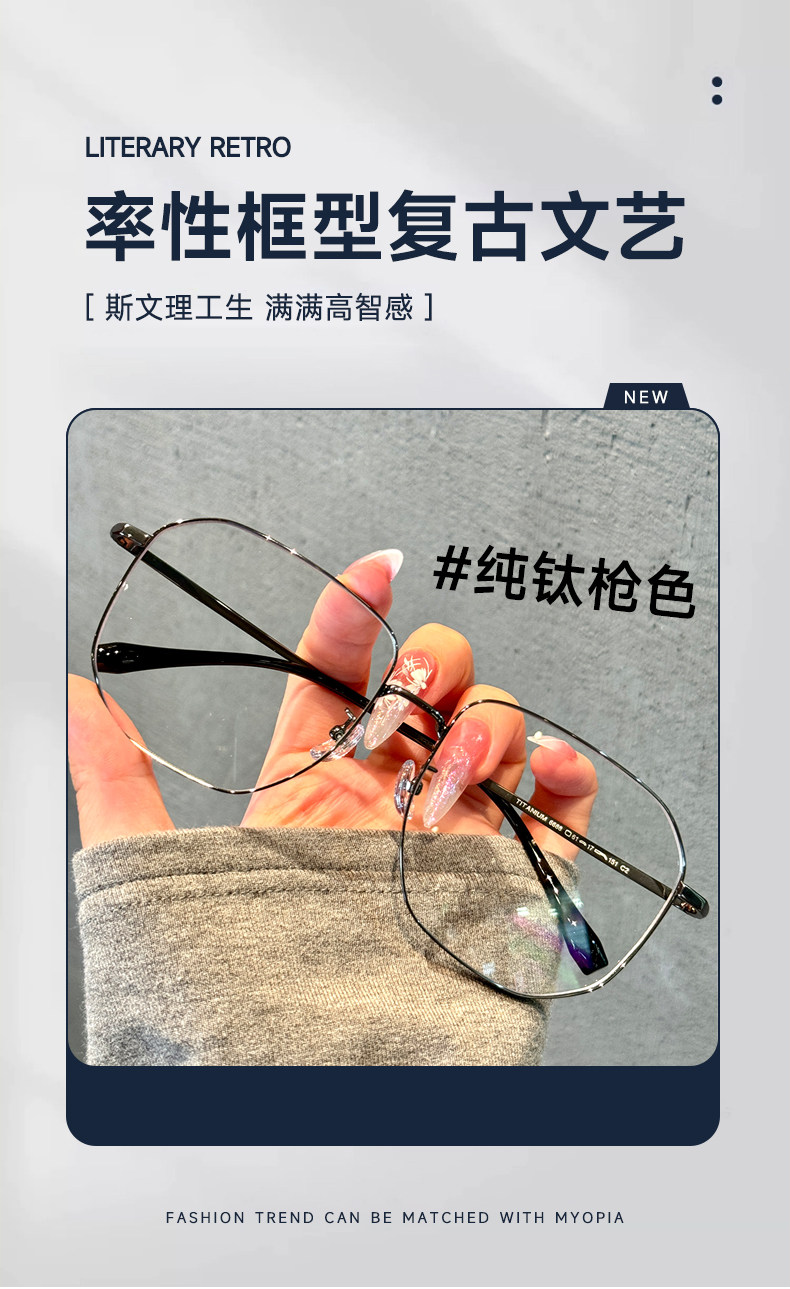 Ultra-Light Pure Titanium Oversized Thin-Frame Glasses for Men with Nearsightedness, Can Be Customized with Prescription, Anti-Blue Light, Photochromic, Non-Prescription Lenses, Specifically for Large Faces