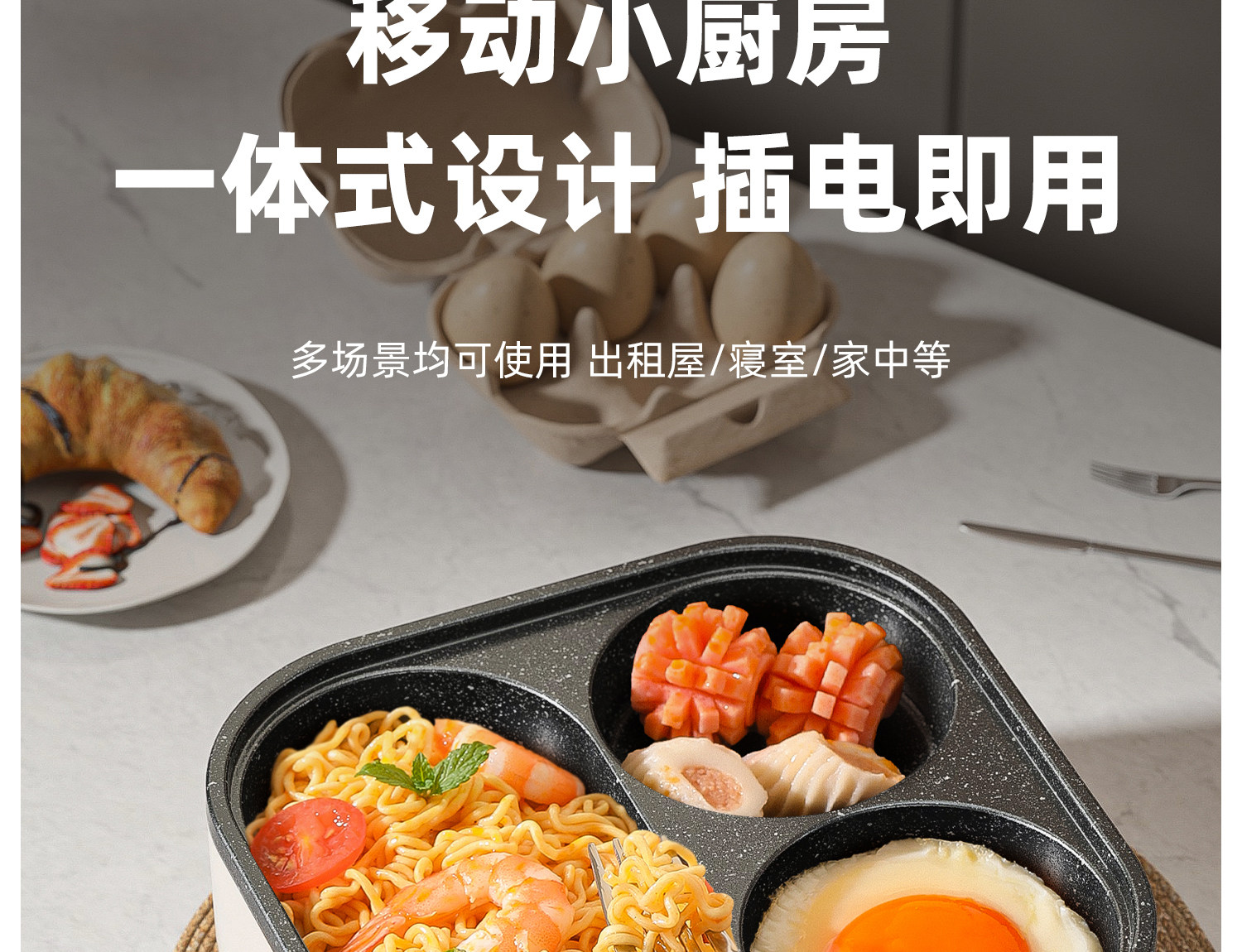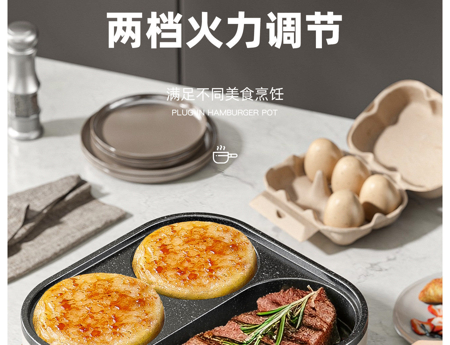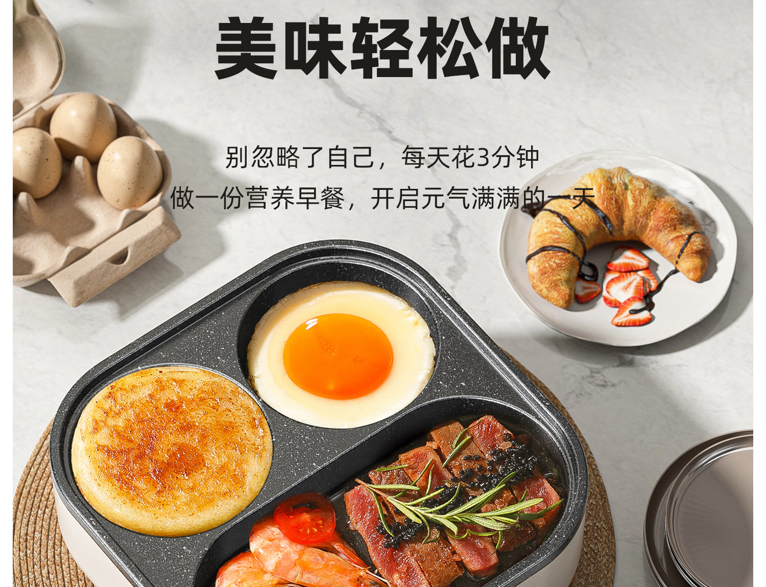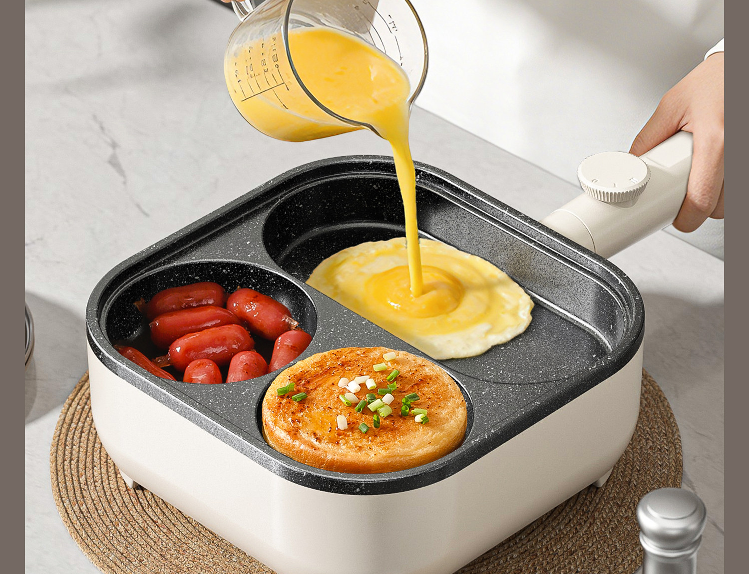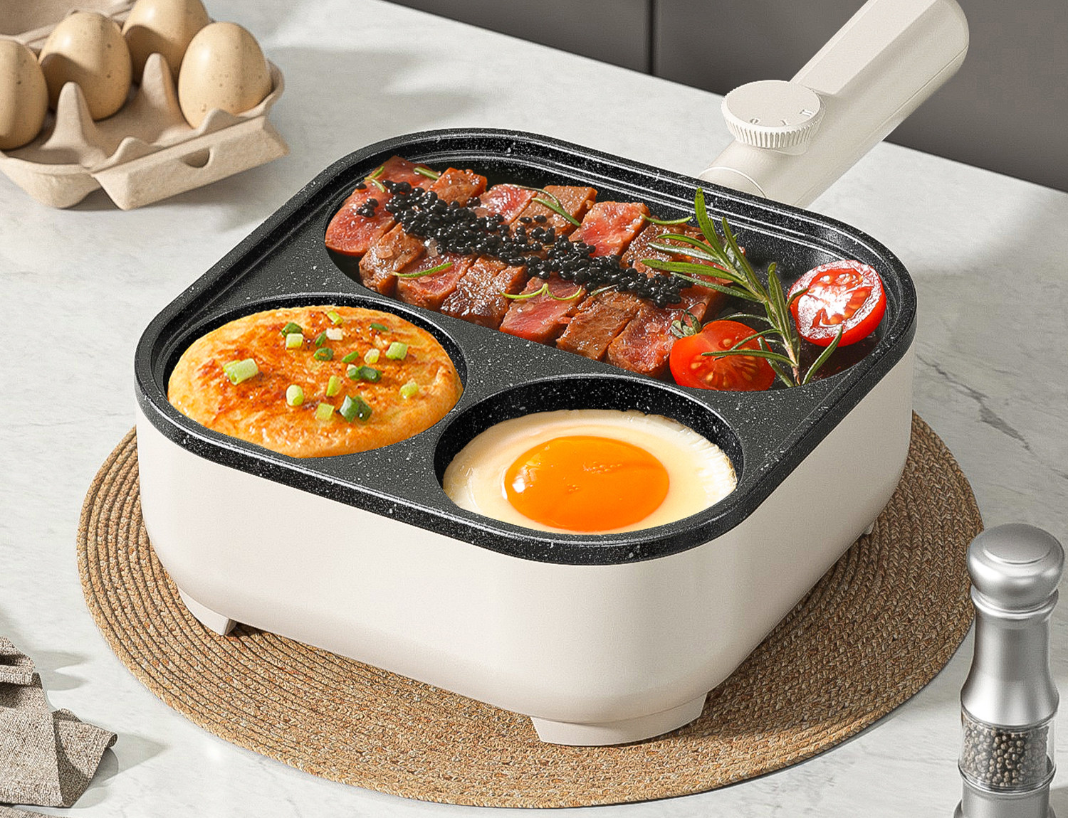 Multifunctional 3-in-1 Breakfast Pan, Egg Frying Tool, Egg Burger Pan, Electric Frying Pan, Non-Stick Flat Pan All-In-One Machine