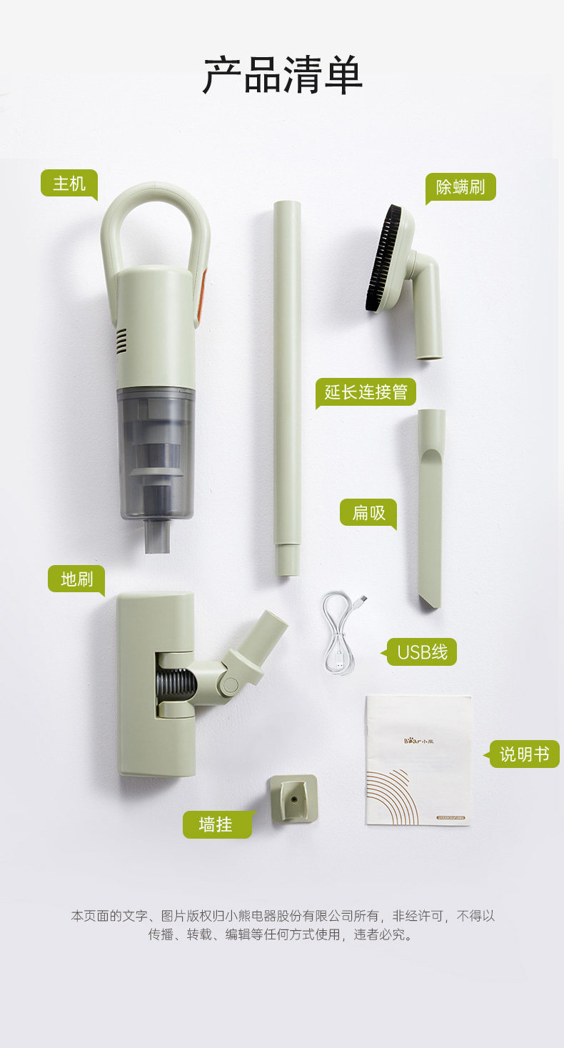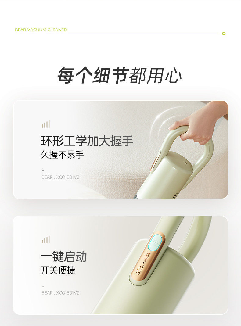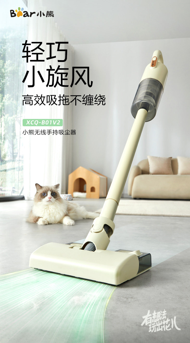 Bear Wireless Vacuum Cleaner for Home Use, High Suction Power, Powerful, Small, Handheld, Lightweight, Mite Removal Device, Multi-Purpose Cat Hair Vacuum Cleaner