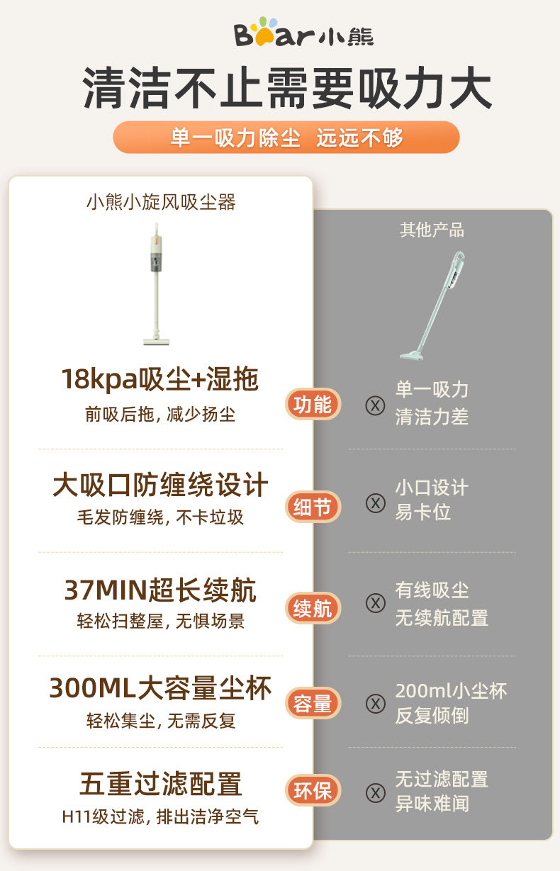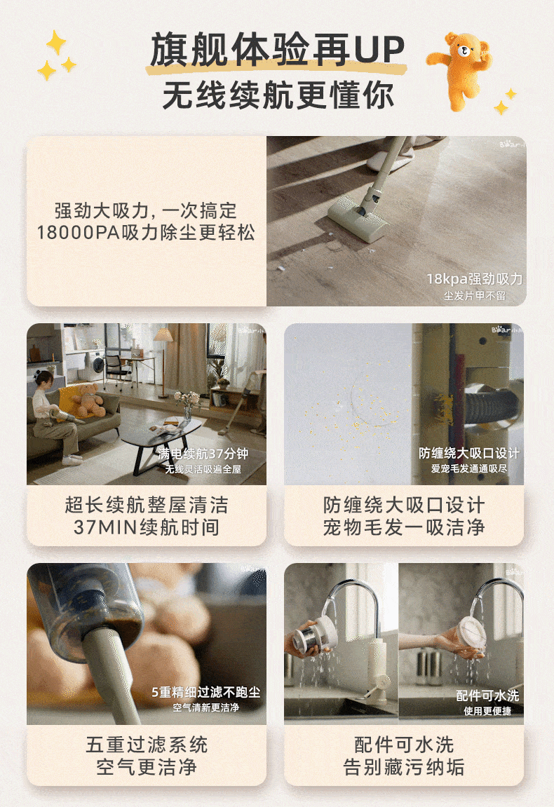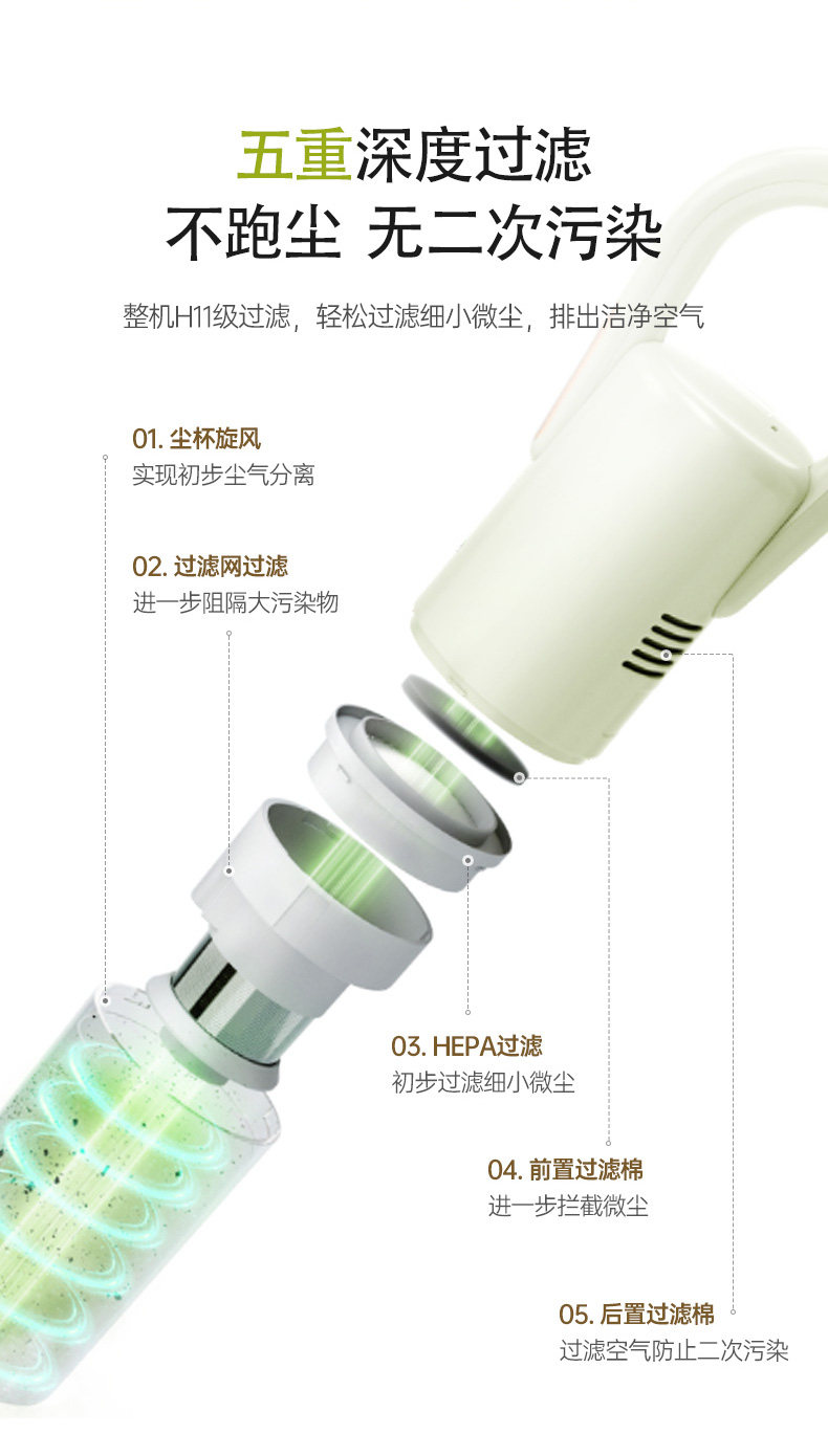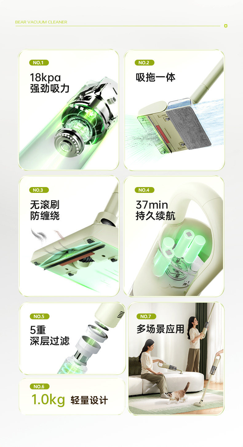 Bear Wireless Vacuum Cleaner for Home Use, High Suction Power, Powerful, Small, Handheld, Lightweight, Mite Removal Device, Multi-Purpose Cat Hair Vacuum Cleaner