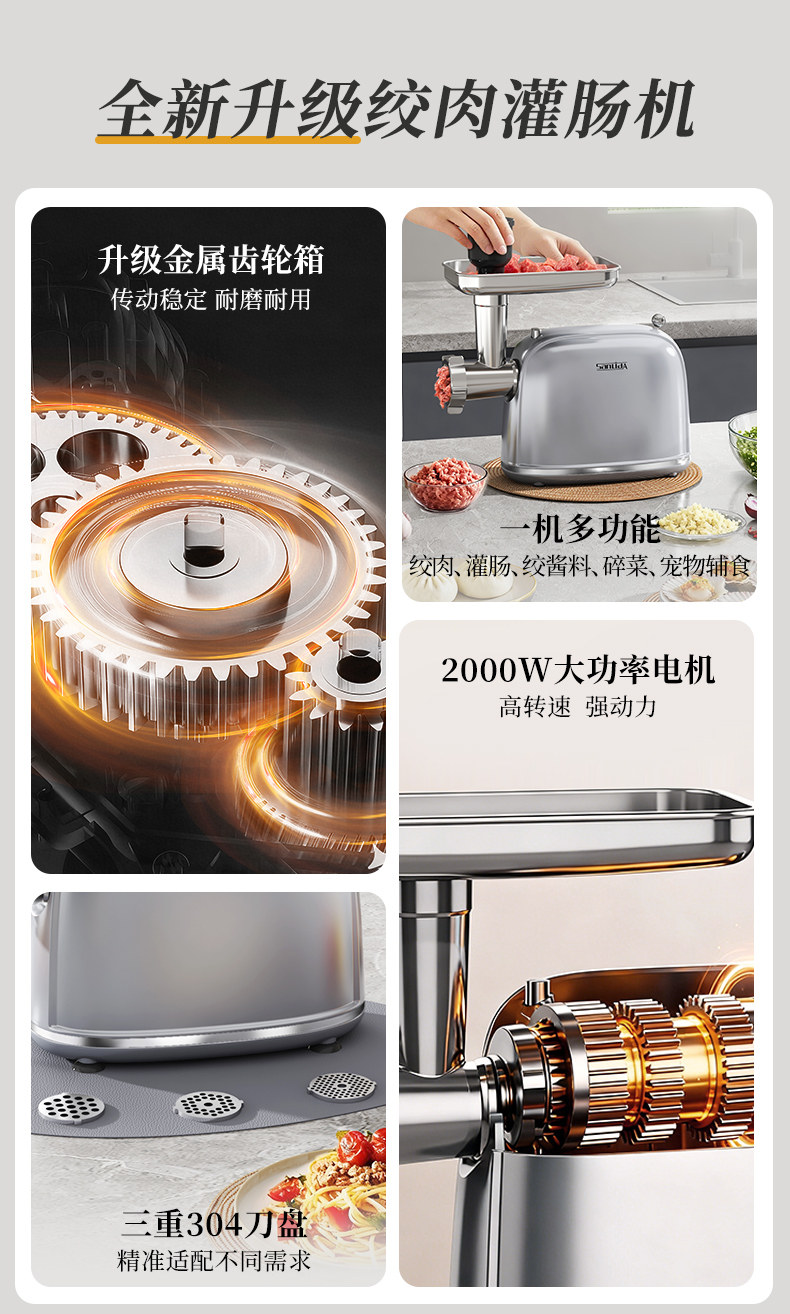 | Color Classification | 2000W High Power [Meat Grinding and Sausage Making] for Home and Commercial Use,【Dough Mixing, Meat Grinding, Vegetable Chopping, Ice Crushing】Multifunctional Food Processor |