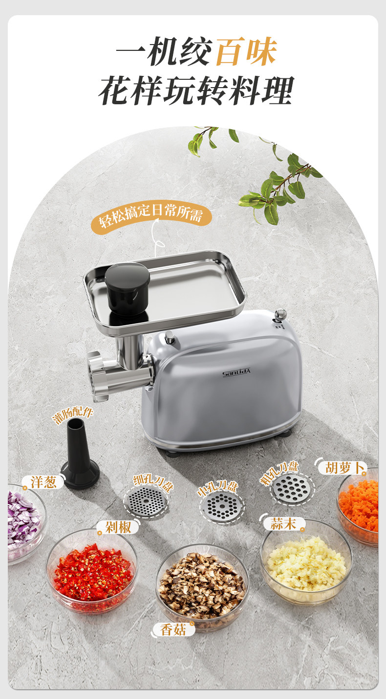 Sanlida Meat Grinder, Small Household Electric Meat Mincer, Multifunctional Commercial High-Power Meat Grinder for Stuffing Sausages