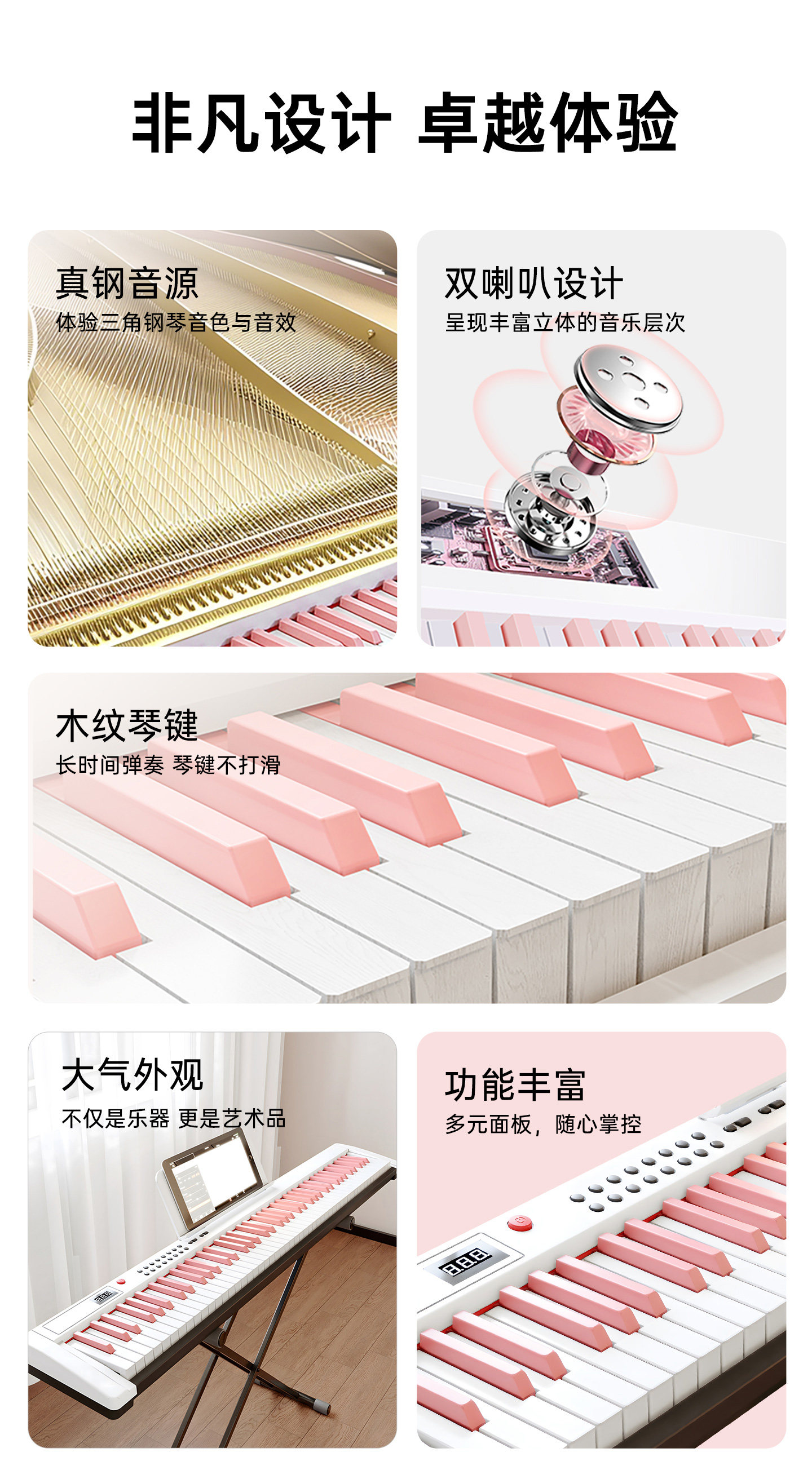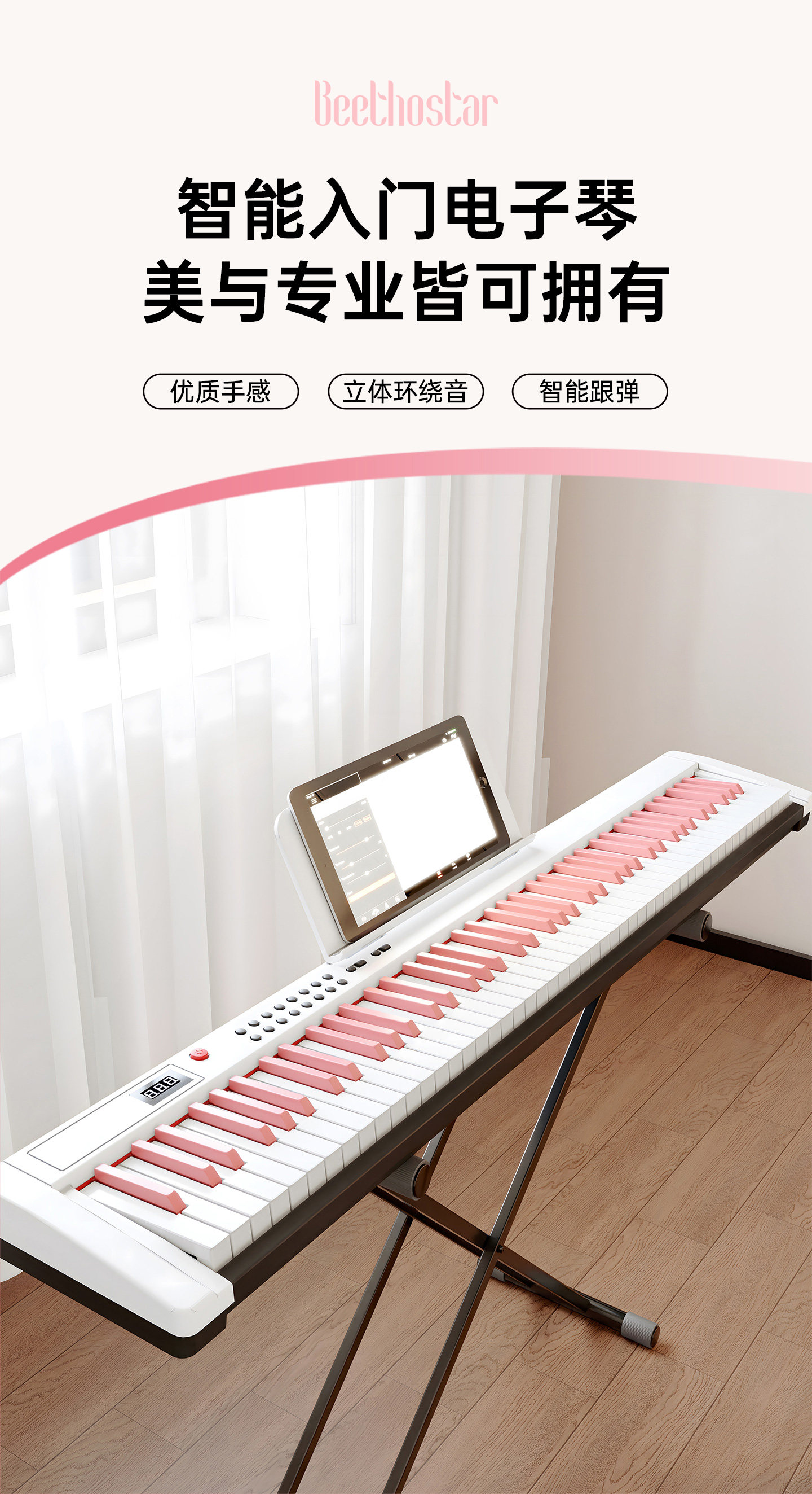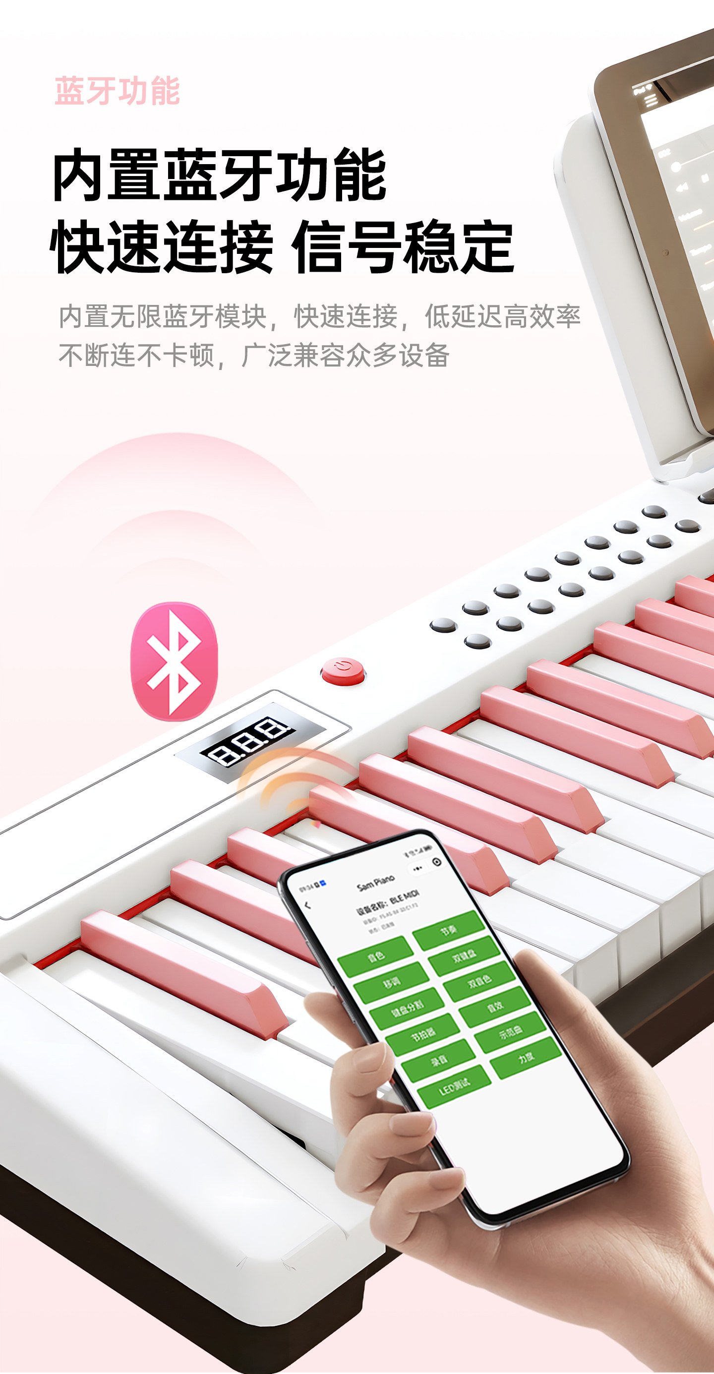 | Color Classification | [Sakura Pink] 88-Key Standard Version,【Sakura Pink】88-Key Bluetooth Electronic Keyboard with Adjustable Volume,【Sakura Pink】88-Key Bluetooth Illuminated Keyboard with Adjustable Volume,[Cool Black] 88-Key Standard Version,[Cool Black] 88-Key Bluetooth Version,【Cool Black】88-Key Bluetooth Illuminated Keyboard with Key Pressure Sensitivity,[Fashion White] 88-Key Standard Version,[Fashion White] 88-Key Bluetooth Version,【Fashion White】88-Key Bluetooth Illuminated Keyboard with Key Pressure Sensitivity,[Rose Pink] 88-Key Standard Version,[Rose Pink] 88-Key Bluetooth Version,【Rose Pink】88-Key Bluetooth Light-Up Keyboard with Adjustable Volume,[Fantasy Purple] 88-Key Standard Version,【Dream Purple】88-Key Bluetooth Electronic Keyboard with Adjustable Volume,【Dreamy Purple】88-Key Bluetooth Light-Up Keyboard with Adjustable Volume |