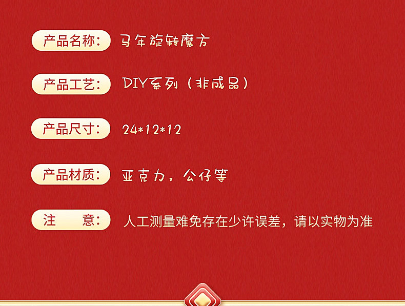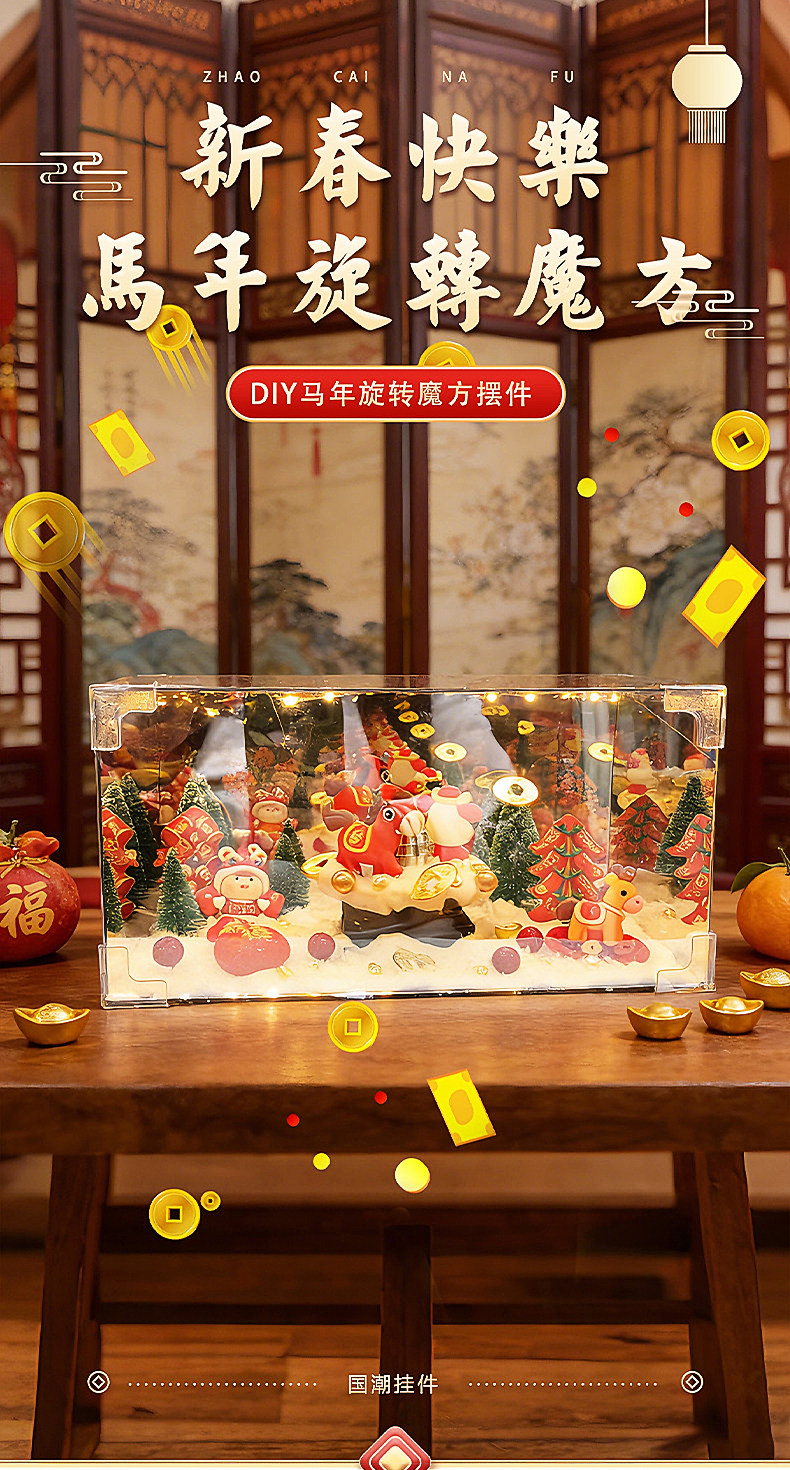 New Year of the Horse Fortune-Attracting Rotating Rubik's Cube Mirror Handmade DIY Night Light Spring Festival Ornament Gift for Girlfriend
