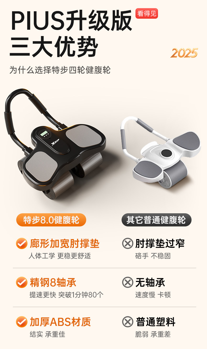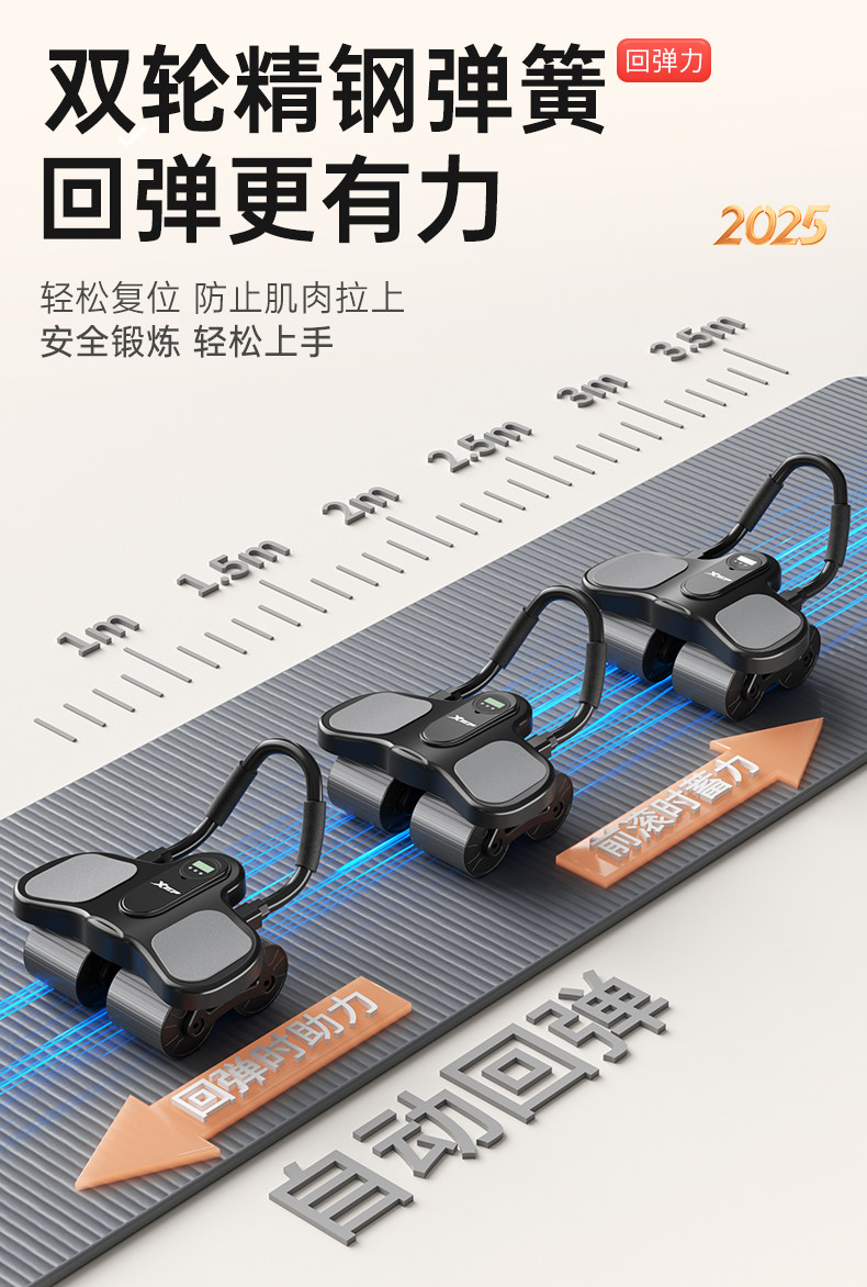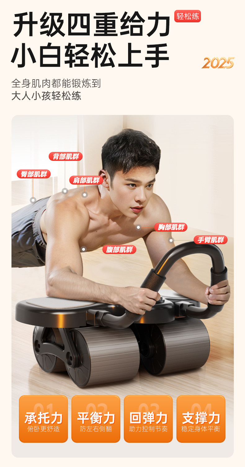 Xtep Abdominal Wheel, Four-Wheel Abdominal Muscle Wheel, Automatic Rebound, Men's Belly Slimming Tool, 2025 New Fitness Equipment for Home Use