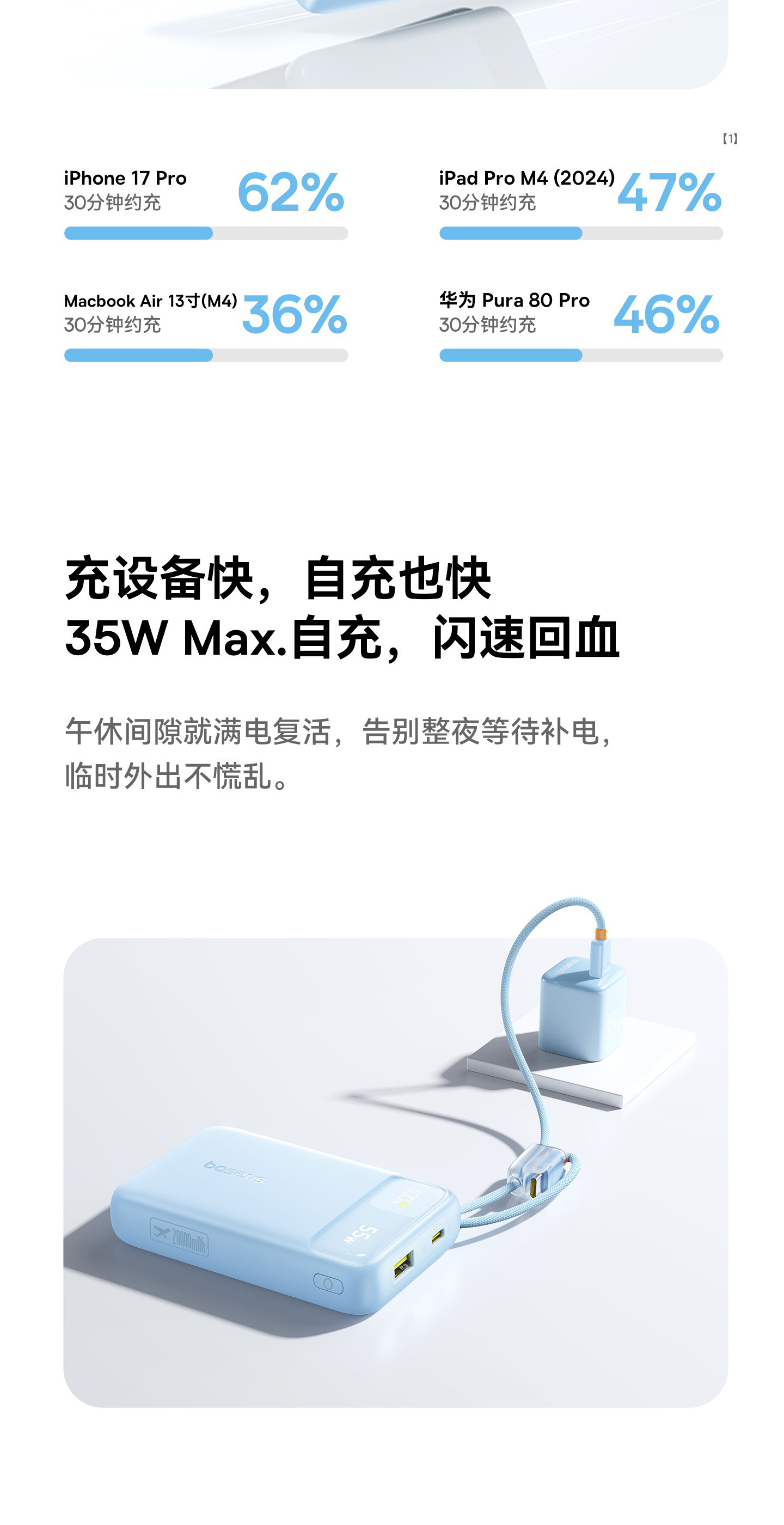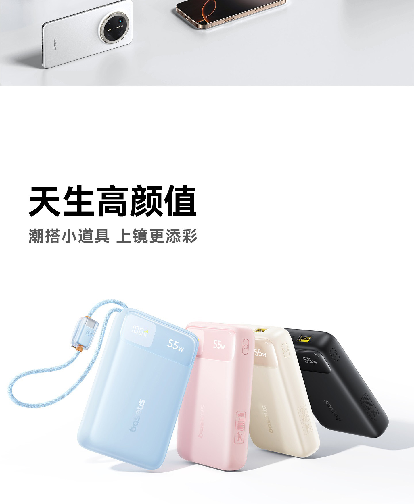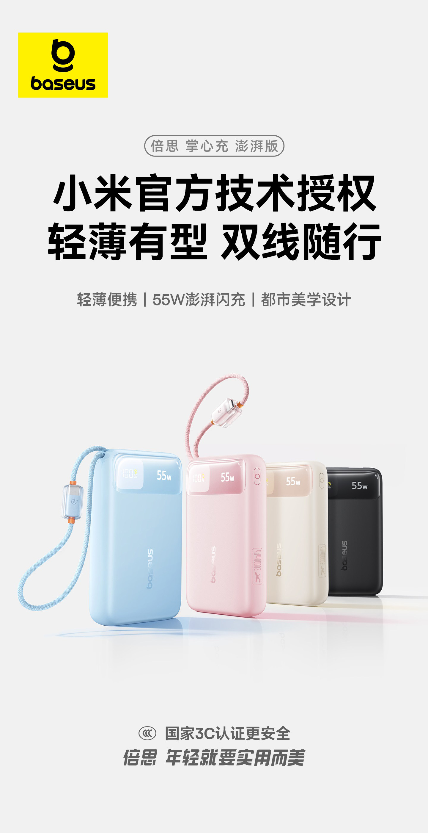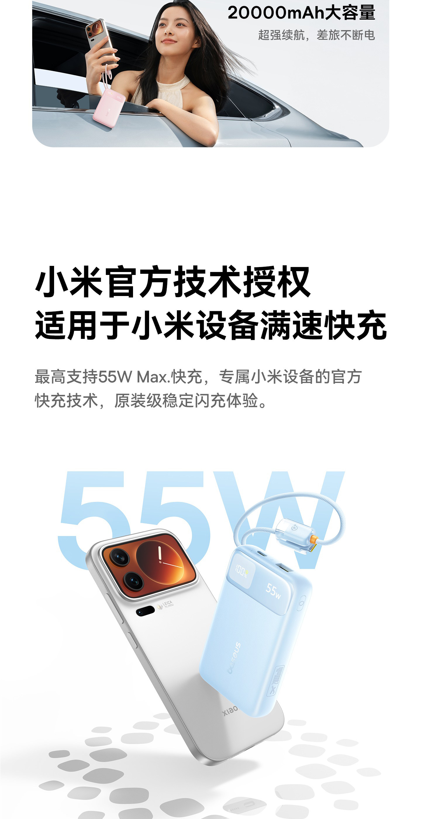 [Power Bank with 3C Certification, Suitable for Airplanes] Baseus 2025 New Model 20000Mah with Built-In Cable, Fast Charging Power Bank, Compatible with Xiaomi 55W Flash Charging, Specially Designed for Apple 17, Official Flagship Genuine Product