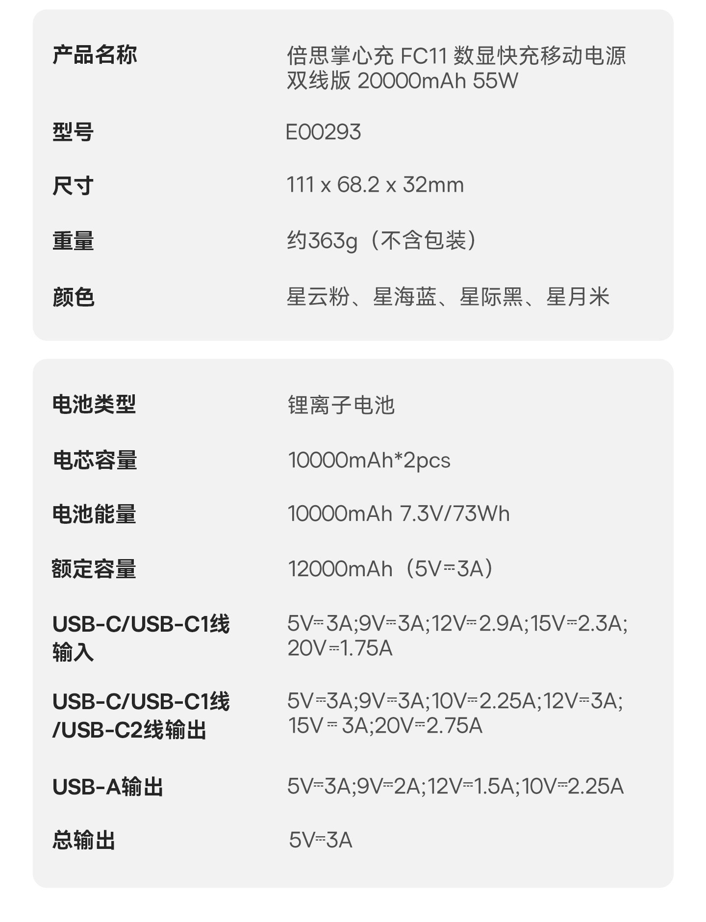 | Battery Capacity | 20000mAh |