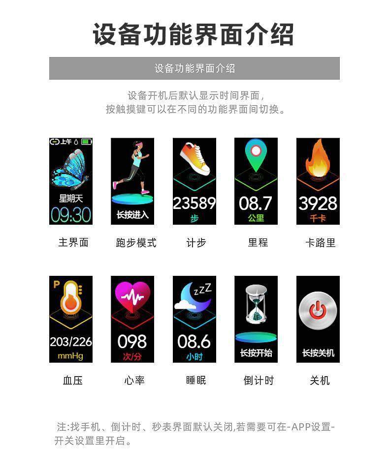 | Function | Blood Pressure Monitoring,Remote Selfie,Step Counting,Information Push,Heart Rate Monitoring,Blood Oxygen Test,Smart Reminder,Sleep Monitoring |