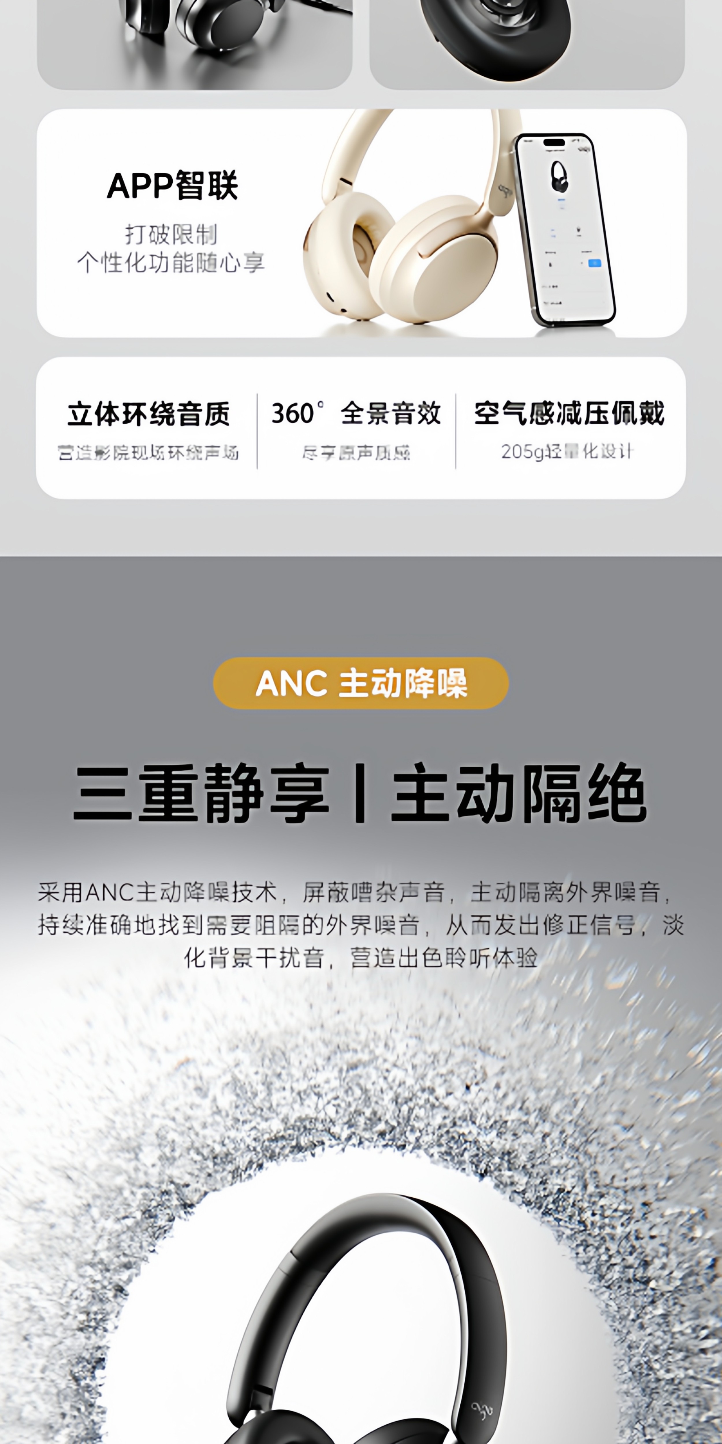 Patriot Head-Mounted Bluetooth Headset Anc Active Noise Reduction Wireless New Model for E-Sports Games with Ultra-Long Battery Life