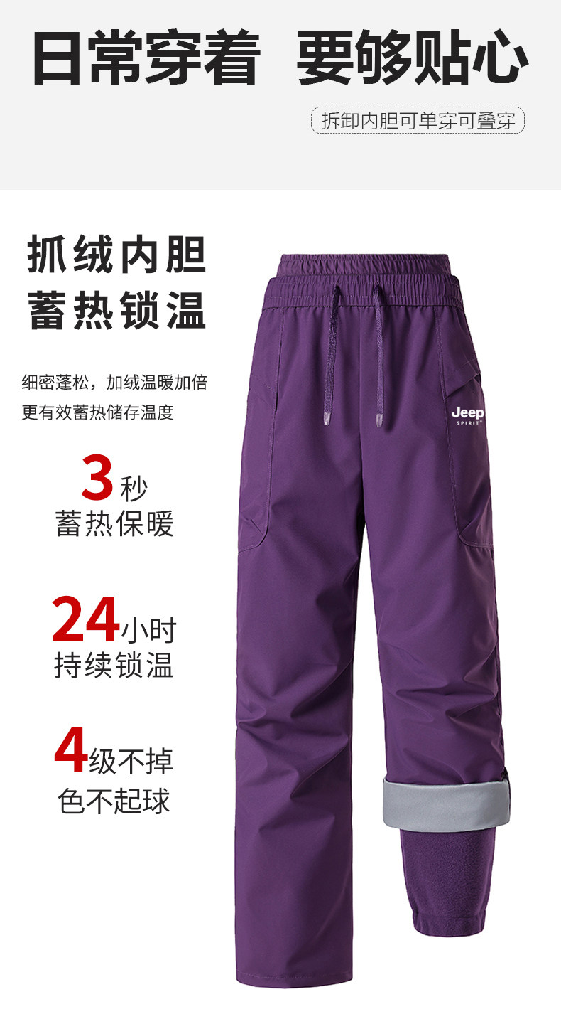 Jeep Women's Three-In-One Windproof and Waterproof Pants for Northeast Harbin, Cold-Resistant, Thickened down Ski Pants for Mountaineering
