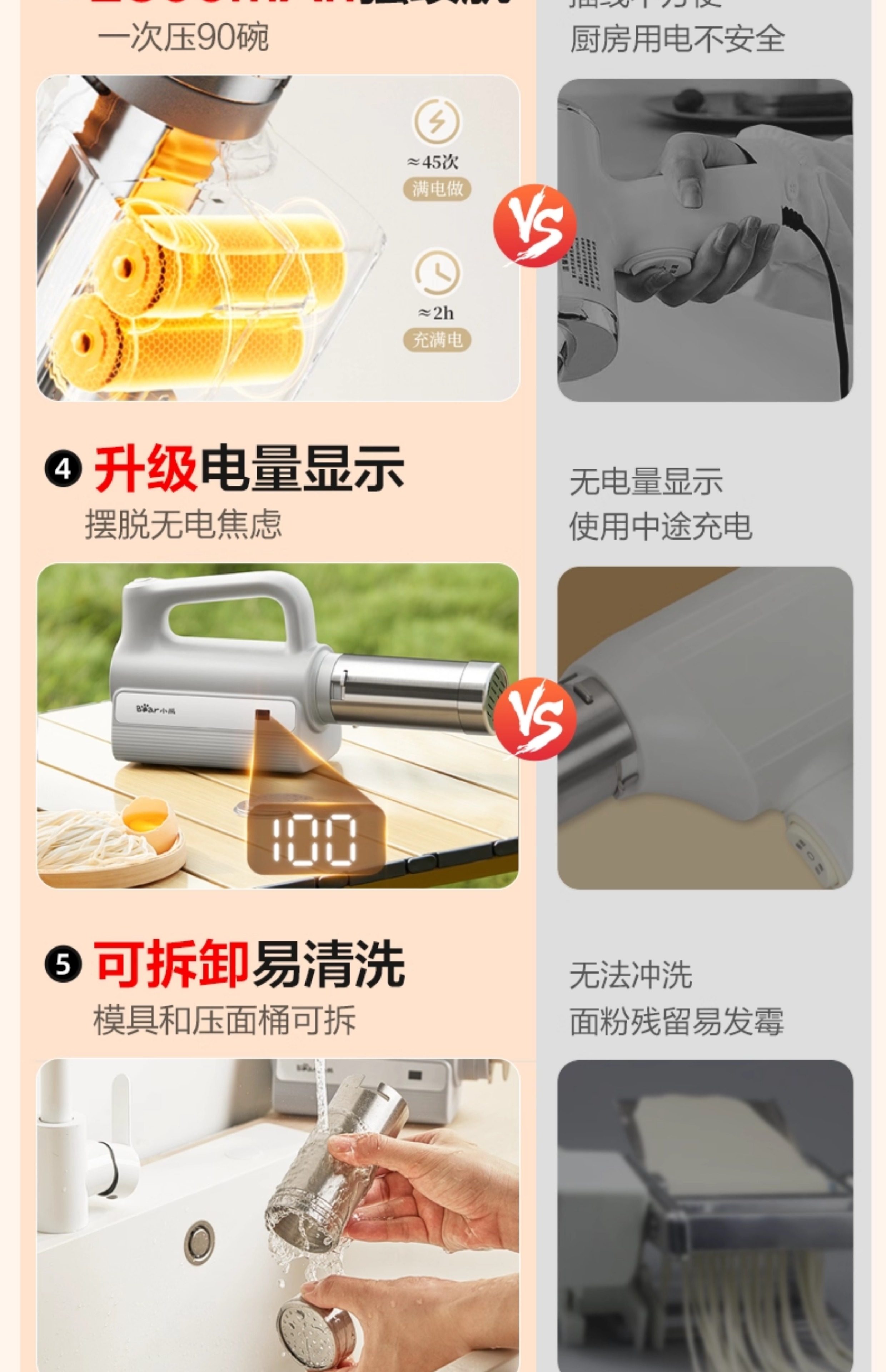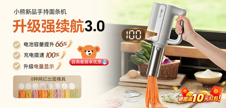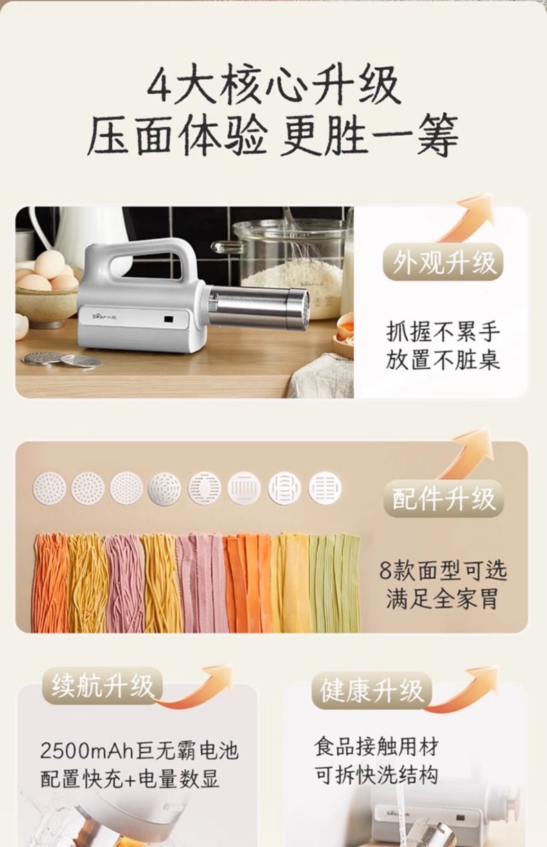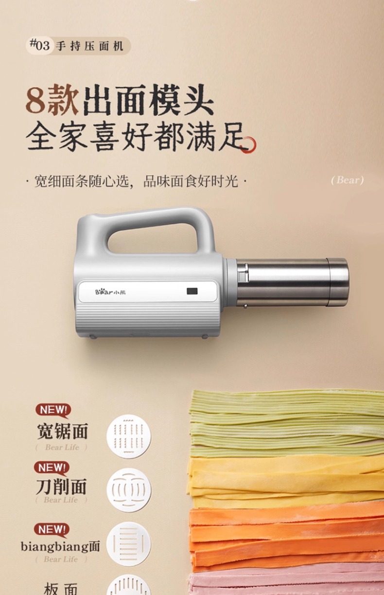 Bear Brand Noodle Maker, Household Fully Automatic Dough Press, Handheld New Model Small Electric Dough Mixer and Noodle Press Machine
