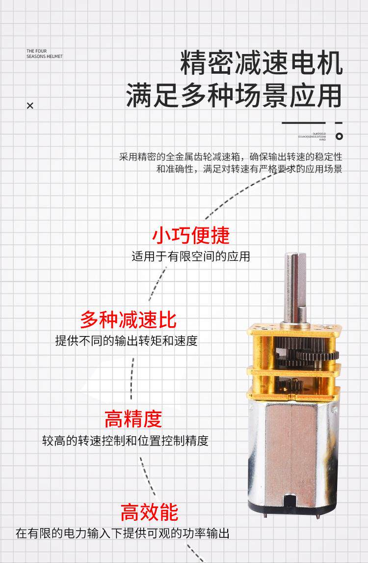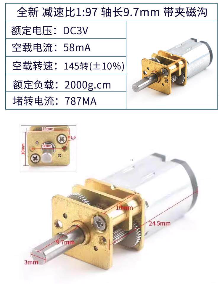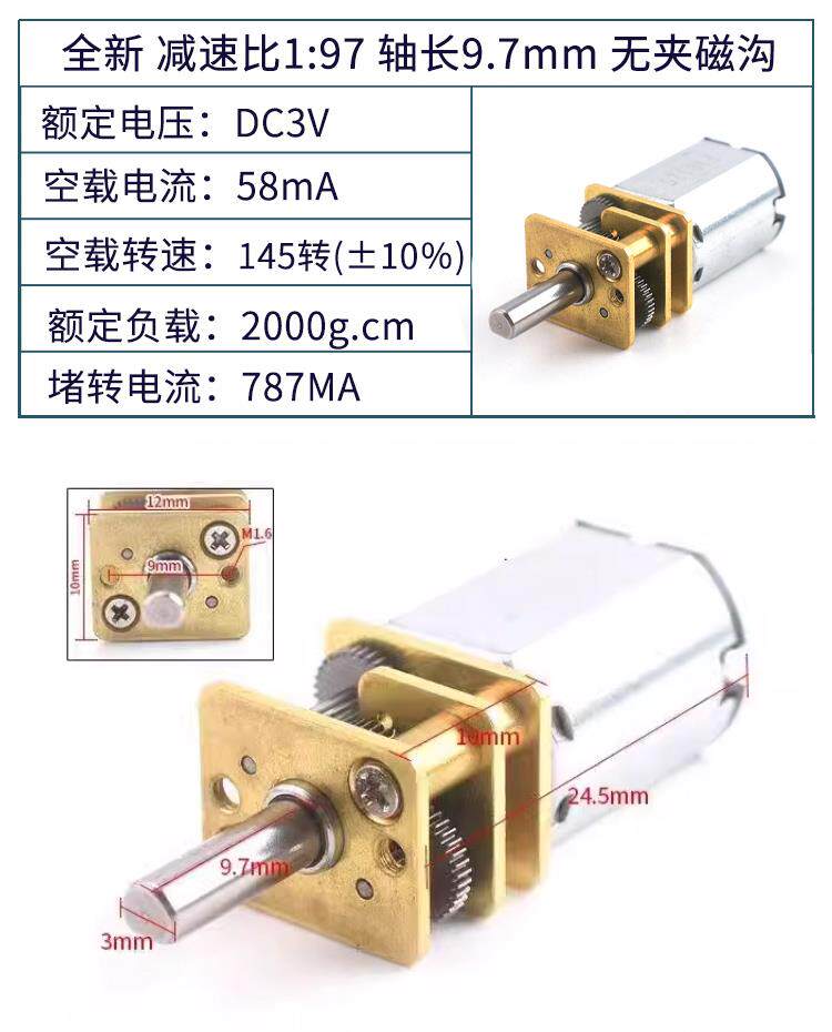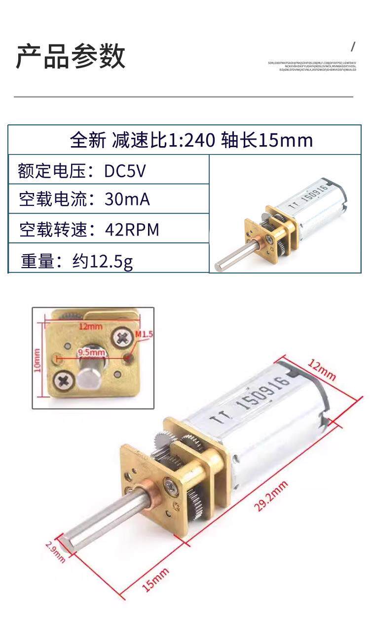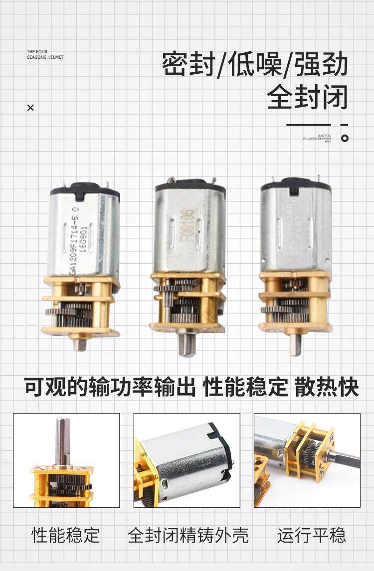 | Color Classification | One 43mm Wheel,One 34mm Wheel,N20 Reduction Motor Base (2 Pieces),Brand New, Reduction Ratio 1:240, Shaft Length 15mm,White 12V30 Turn Shaft Length 10mm,Milky White 12V15 Rotation Shaft Length 10mm,Silver 12V300 Rpm Shaft Length 10mm,Light Gray 12V100 Rpm Shaft Length 10mm,Gray 12V200 Rpm Shaft Length 10mm,Black 12V500 Rpm Shaft Length 10mm,Dark Gray 12V150 Rpm Shaft Length 10mm,Pink 12V1000 Rpm Shaft Length 10mm,Rose Red 12V800 Rpm Shaft Length 10mm,3V15 Shaft Length 10mm,3V30 Rotation Shaft Length 10mm,3V50 Rotation Shaft Length 10mm,3V60 Rotation Shaft Length 10mm,3V100 Rpm Shaft Length 10mm,3V150 Rpm Shaft Length 10mm,3V200 Rpm Shaft Length 10mm,3V300 Rpm Shaft Length 10mm,3V500 Rpm Shaft Length 10mm,3V1000 Rpm Shaft Length 10mm,6V15 Shaft Length 10mm,6V30 Rotation Shaft Length 10mm,6V50 Rpm Shaft Length 10mm,6V100 Rpm Shaft Length 10mm,6V150 Rpm Shaft Length 10mm,6V200 Rpm Shaft Length 10mm,6V300 Rpm Shaft Length 10mm,6V400 Rpm Shaft Length 10mm,6V500 Rpm Shaft Length 10mm,6V1000 Rpm Shaft Length 10mm,Off-White 12V60 Rpm Shaft Length 10mm,Orange 12V600 Rpm Shaft Length 10mm,Khaki, Brand New, 1:97 Reduction Ratio, 9.7mm Shaft Length, with Spline |
