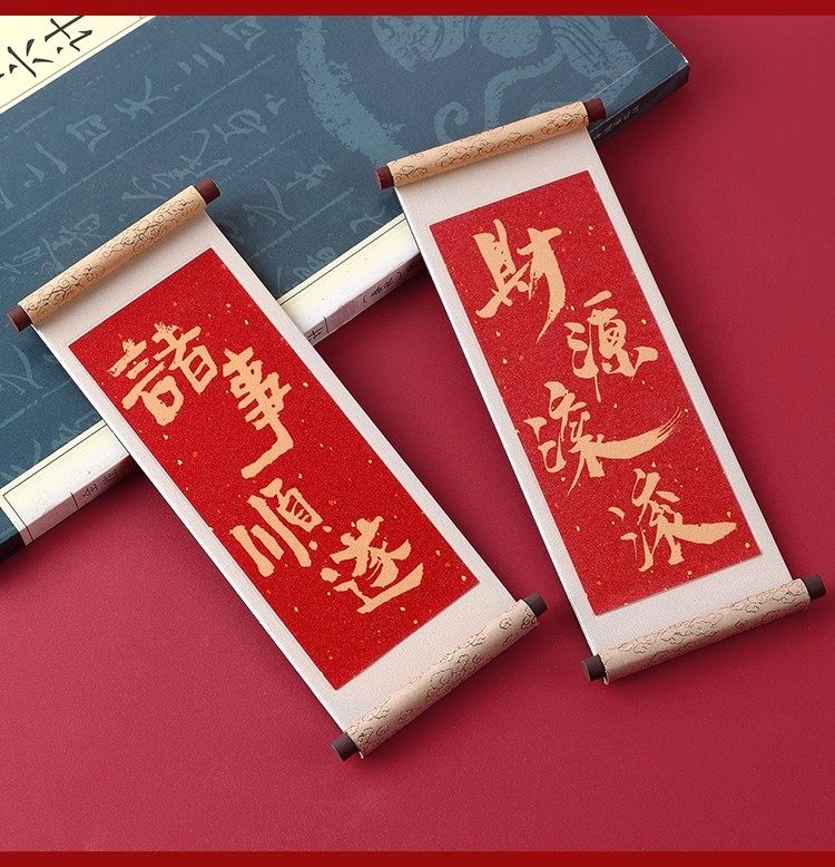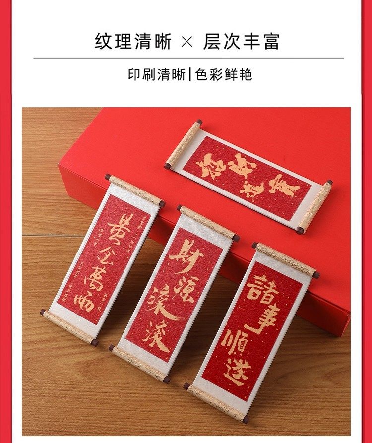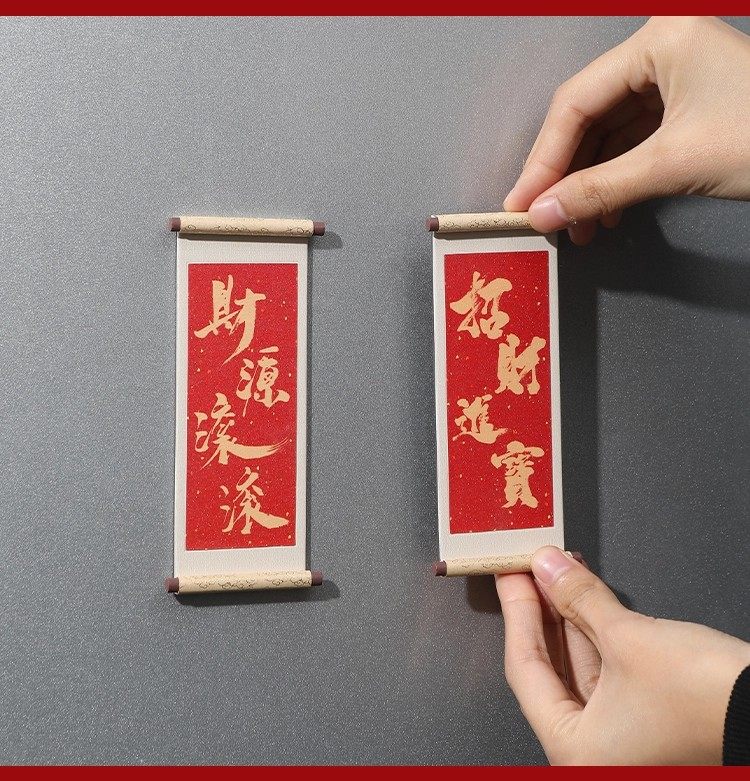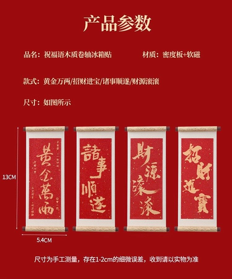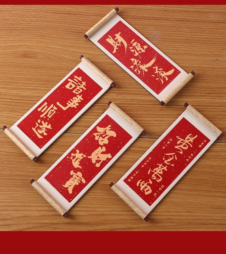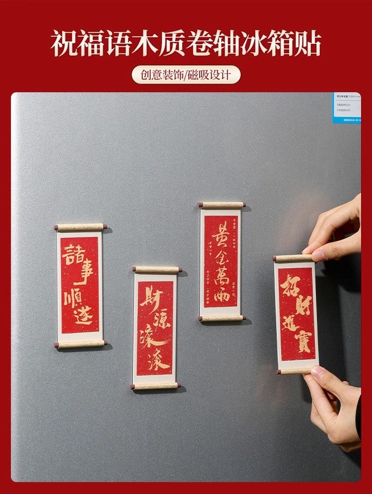 Creative Blessing Words Wooden Scroll Fridge Magnet Design Chinese Classical Decorative Sticker Personalized Creative Chinese Style