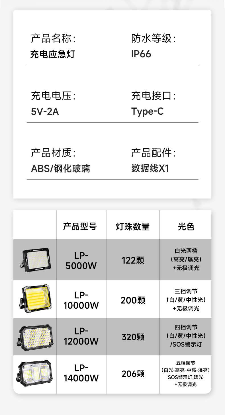 Outdoor Night Market Stall Lighting Lamp, Household Emergency Camping Strong Light, Ultra-Long Battery Life, Large Capacity Rechargeable Lamp