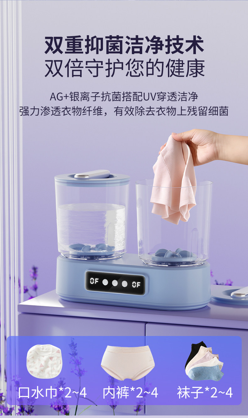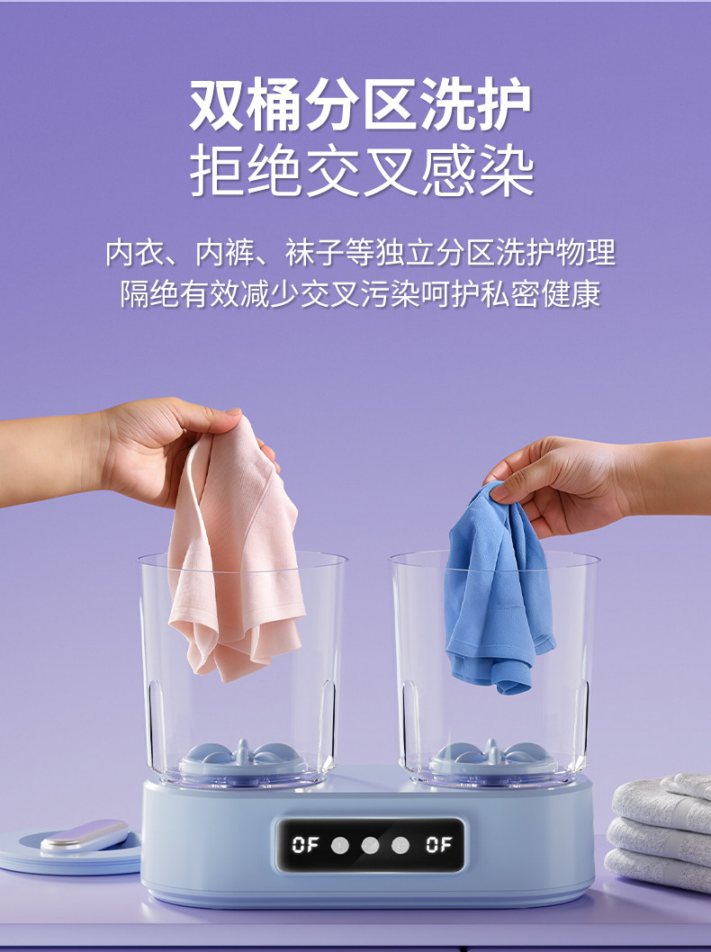 Double-Cup Mini Washing Machine for Washing Underwear, Small Wireless Portable Washing Machine, Lazy Person's Sock Washing Tool